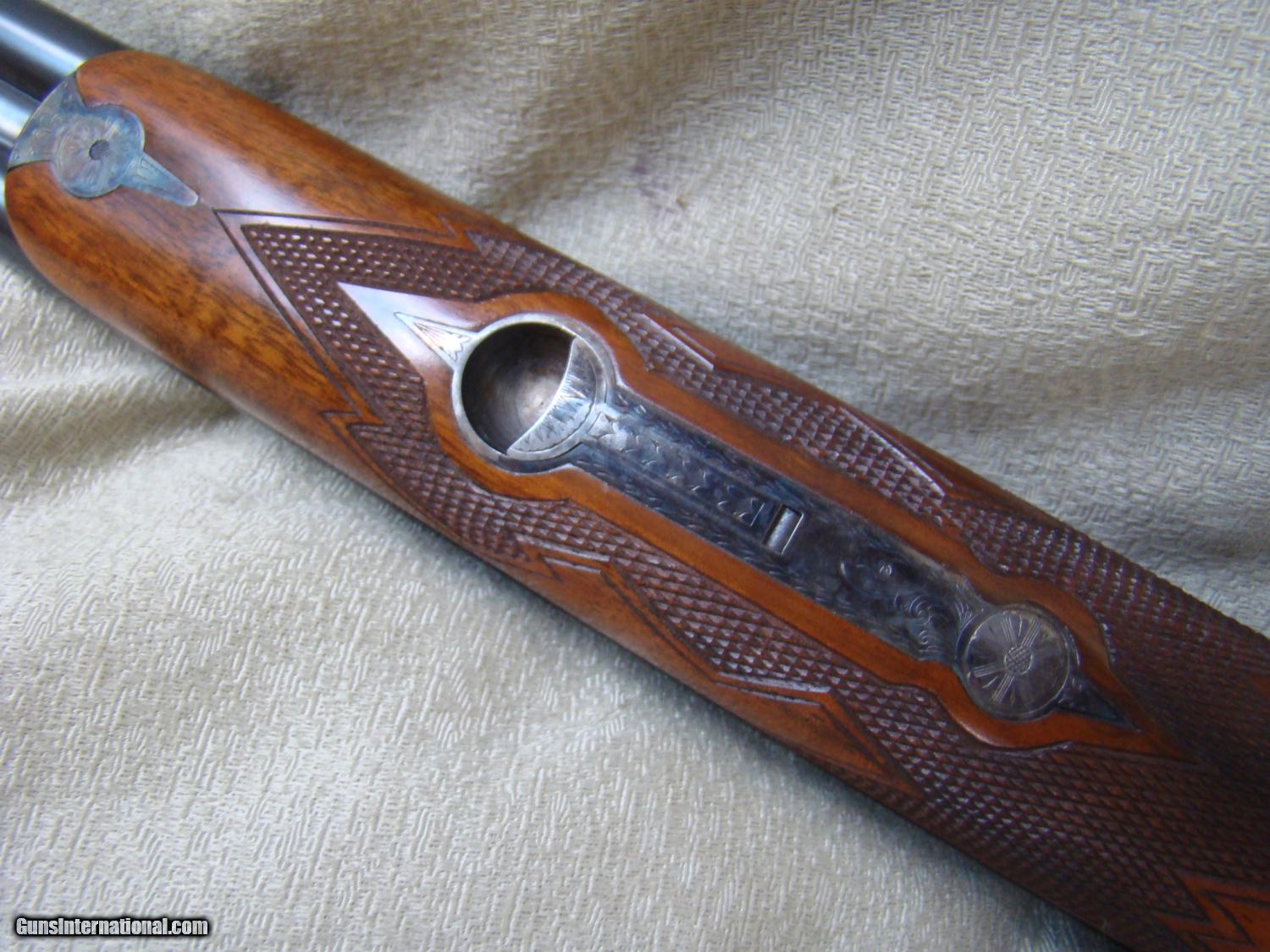 Description: Parker Reproduction DHE, 28 ga. Desirable 28" barrels, choked mod/full. Single trigger, straight hand English stock with pleasing figure and contrasting fiddleback. Splinter forend. Weighs just 5 lbs, 12 oz. New unfired. A few of the most minor handling marks. SOLD |