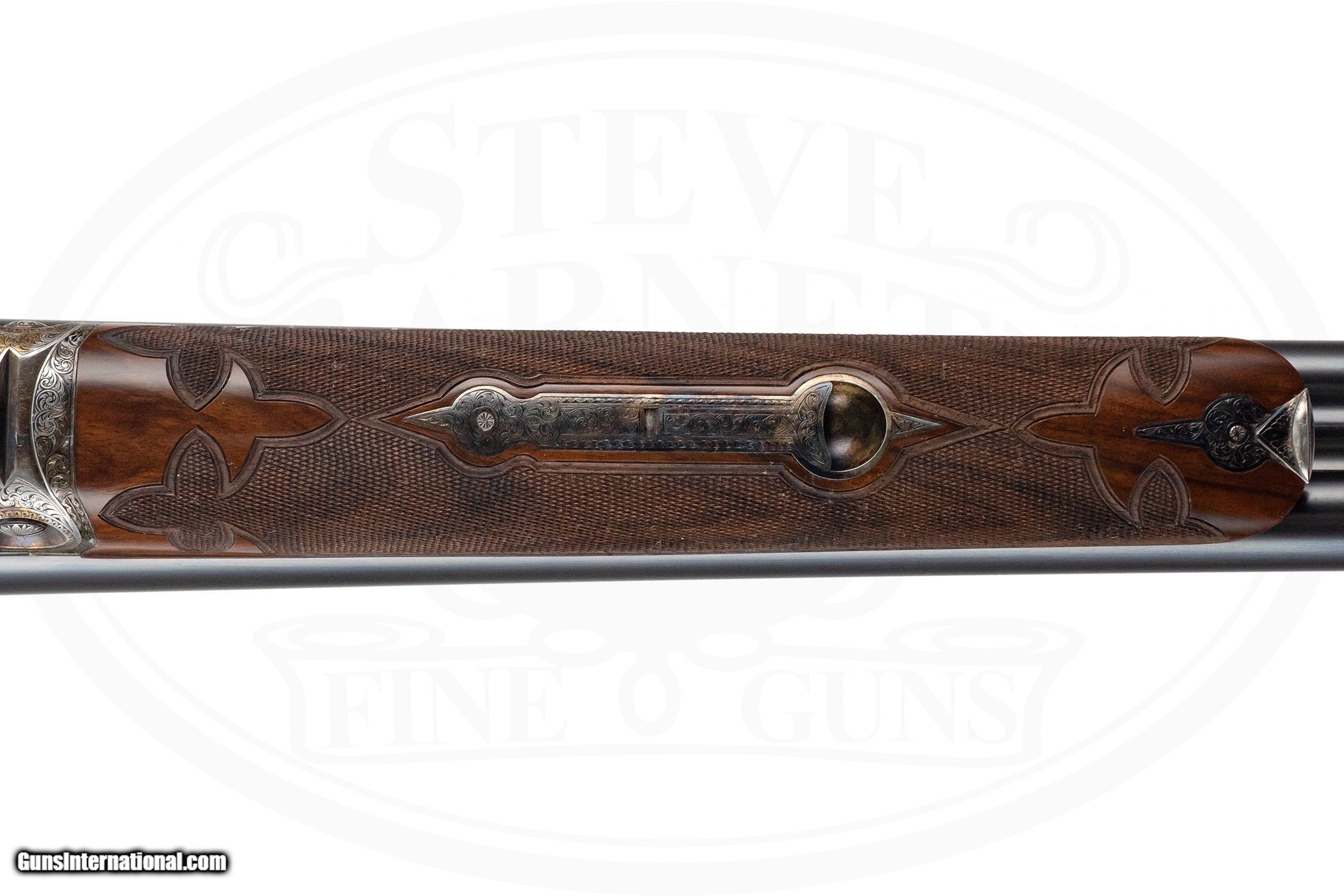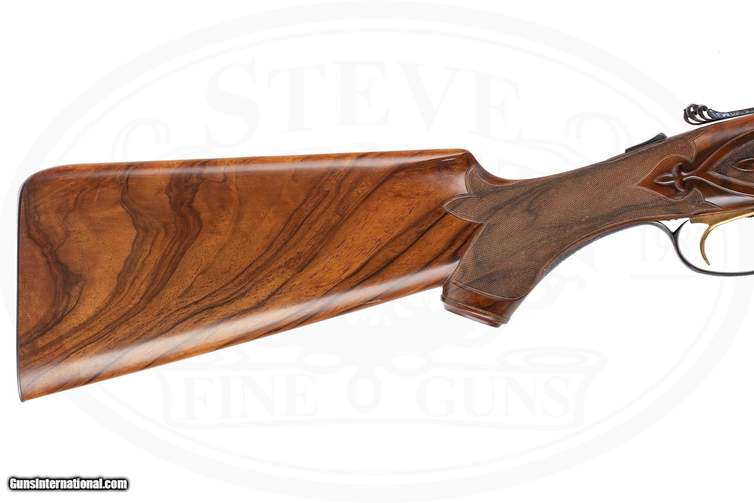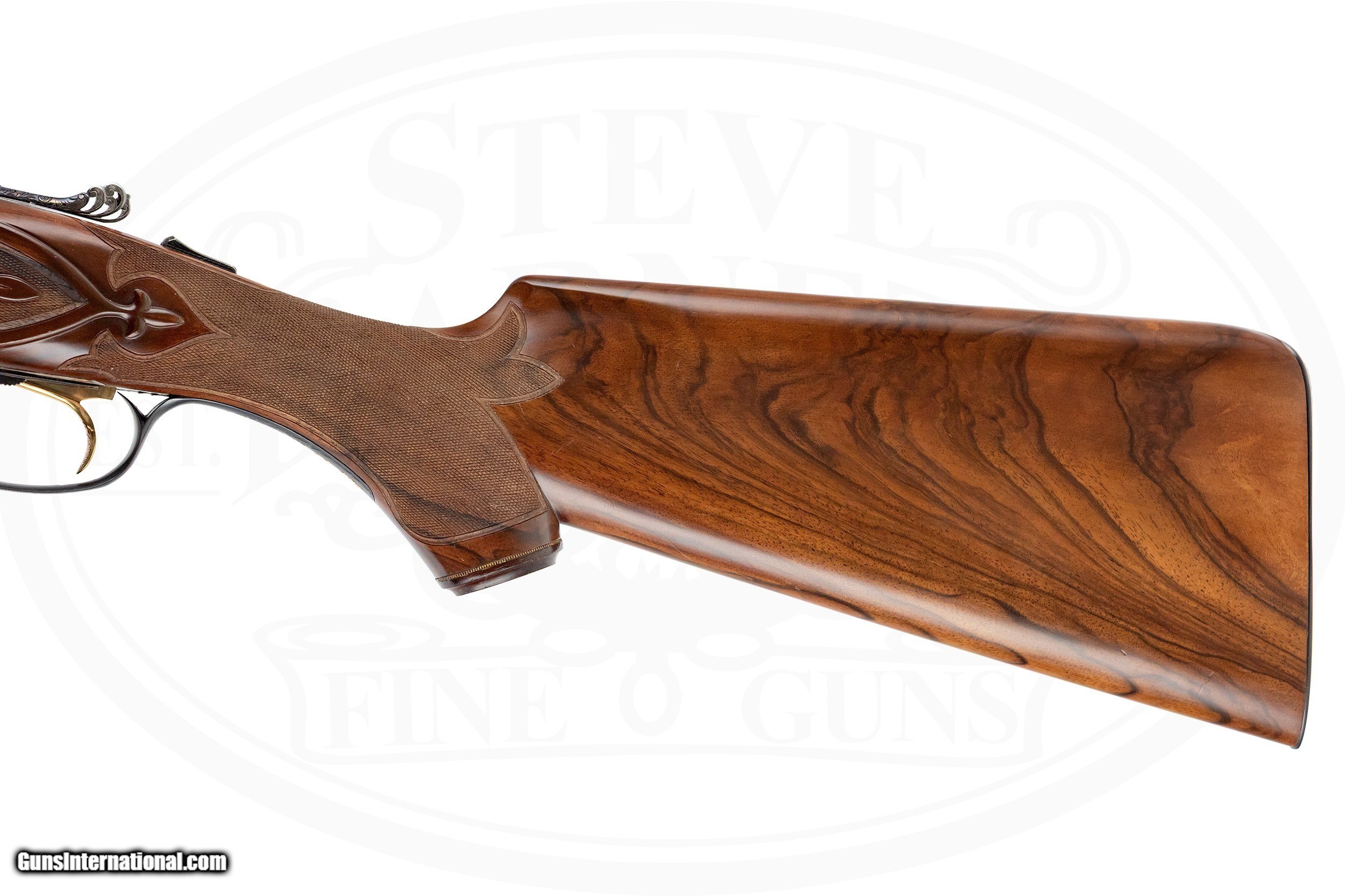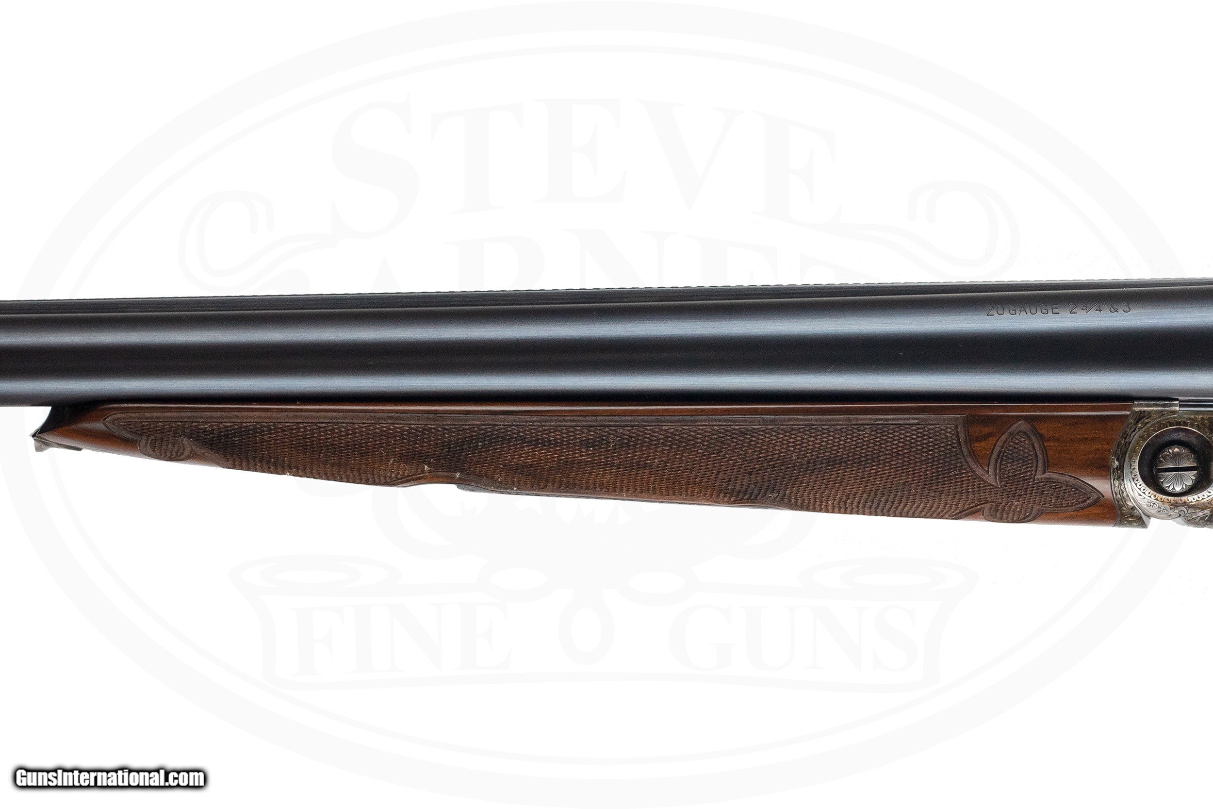Description: SN# 20-0X7 26" SOLID RIB BARRELS IC AND MOD CHOKE (.011 AND .018 CONSTRICTIONS) 2 3/4" & 3" CHAMBERS 28" SOLID RIB BARRELS MOD AND FULL CHOKE (.011 AND .037 CONSTRICTIONS) 2 3/4" & 3" CHAMBERS SINGLE SELECTIVE TRIGGER EJECTORS (1) SPLINTER FOREARM CAPPED PISTOL GRIP - NOT PERSONALIZED SKELETON BUTT GUN IS EXCELLENT CONDTION WITH SOME HANDLING TO WOOD AND METAL FINISHES ESPEICALLY ALONG EDGES FROM CAREFUL USE AND STORAGE 6LBS 9 OZ W/ 26" BBLS 6LBS 11 OZ W/ 28" BBLS 2 1/8" DAH 1 5/16" DAC 14 3/16" LOP CASED WITH DUST COVER AND SNAP CAPS Price: $12,500.00 Buy Now Contact Seller |