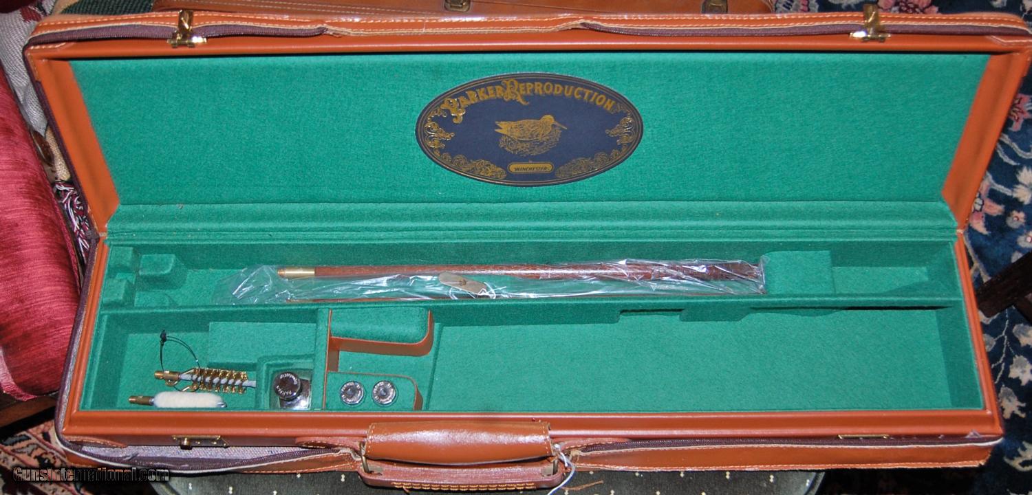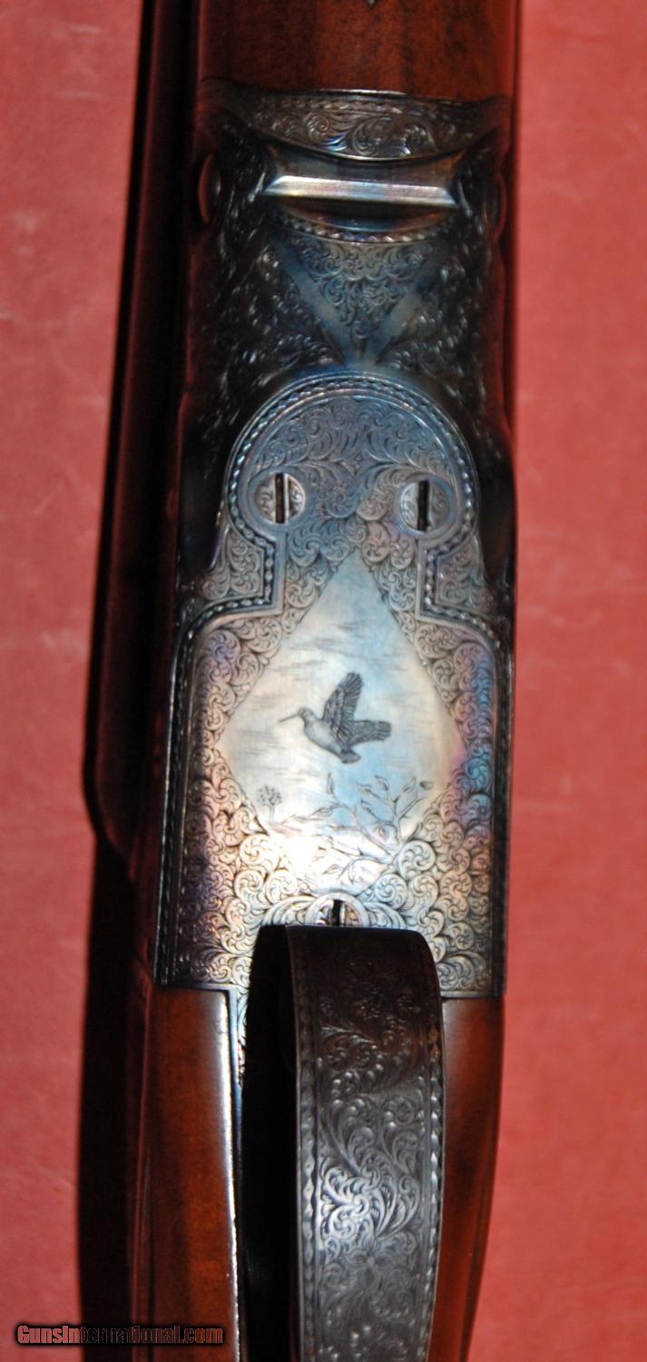 Description: Parker Reproduction BHE grade 20ga.Number 84 of only 100 20ga.BHEs built.This gun has 28" barrels choked modified and full.It has a pistol grip stock,single selective trigger,ejectors,and a splinter forend.The engraving is outstanding,showing much more detail than other BHE grade guns I have seen.It is new and unfired in the makers case with canvass cover.The wood is very highly figured and is free from any damage.A classic that is sure to go up in value. SOLD Manufacturer: Parker Reproductions Model: BHE Serial Number: B20-0084 Condition: New Metal Condition: new Barrels: 28 Triggers: single Gauge Info: 20ga Stock: pistol grip Stock Comb: 13/8 Stock Heel: 23/8 Butt Pad: skeleton butt LOP: 143/8 Choke Left: full Choke Right: modified |