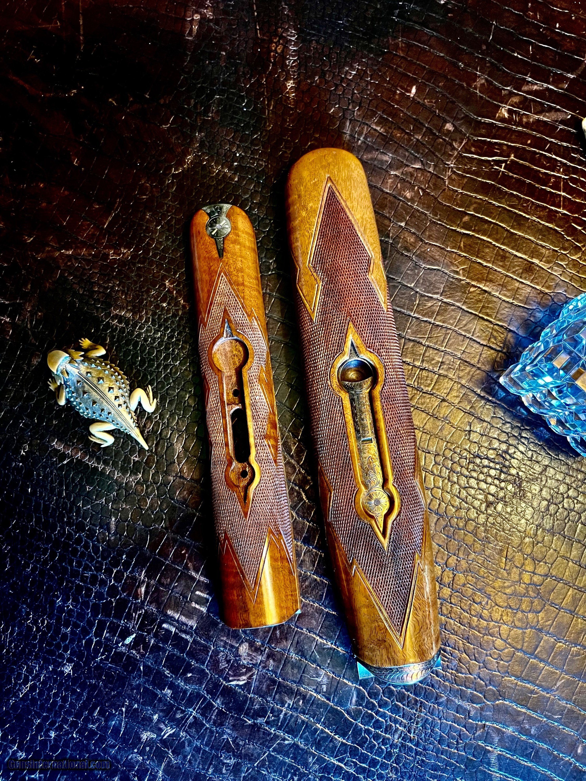 SOLD Shotgun Gauge: 28 Gauge Manufacturer: Parker Reproduction by Winchester Model: DHE Serial Number: 28-1262 Barrel Length: 26” both Condition: High Condition Stock Comb: 1 3/8” Stock Heel: 2 1/4” Fore End: Was Splinter - Beavertail Custom Made Butt Pad: Skeleton Plate LOP: 14 1/4” Weight: 5 lbs 10 ozs Chokes: IC/M — M/F |