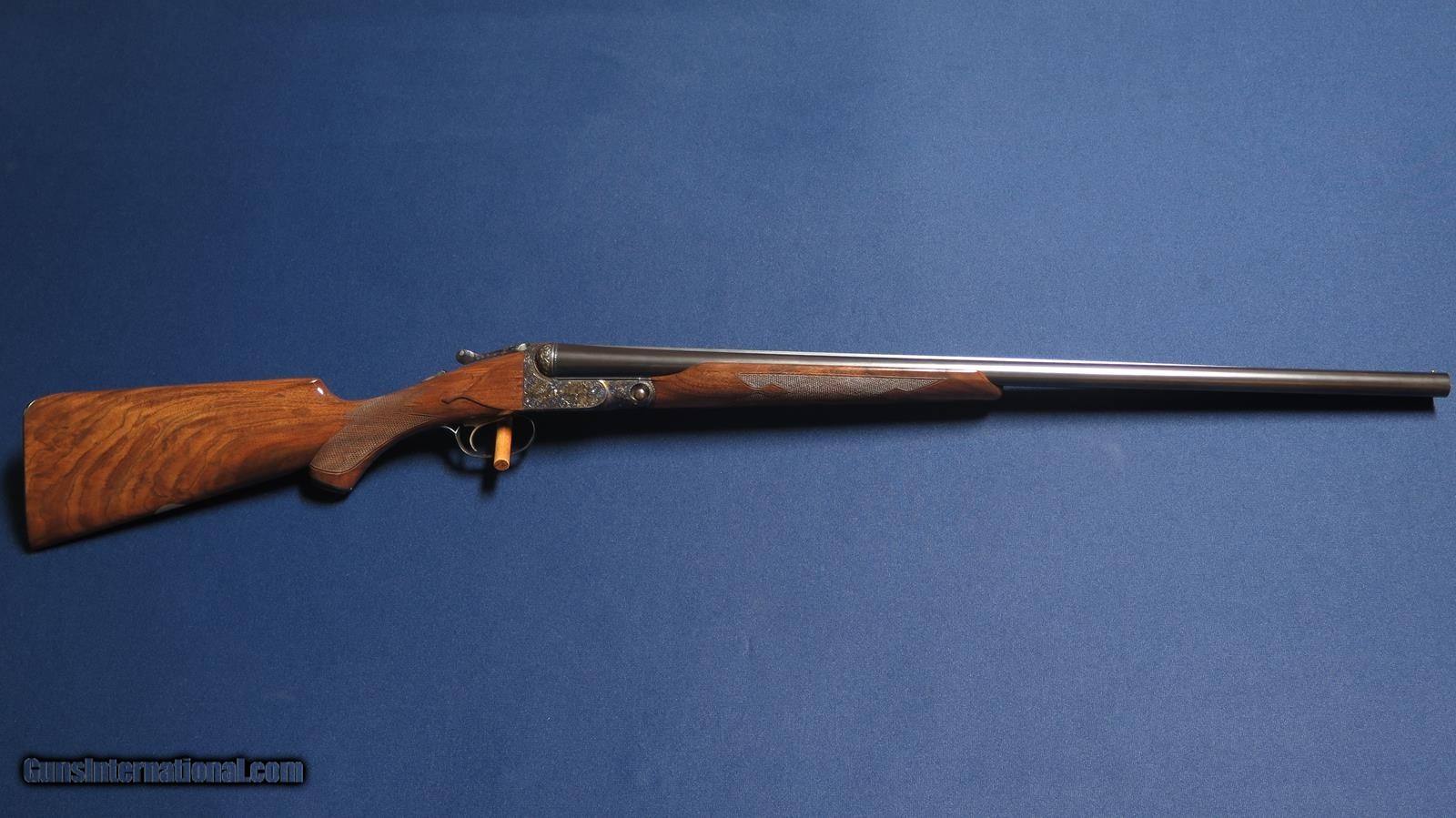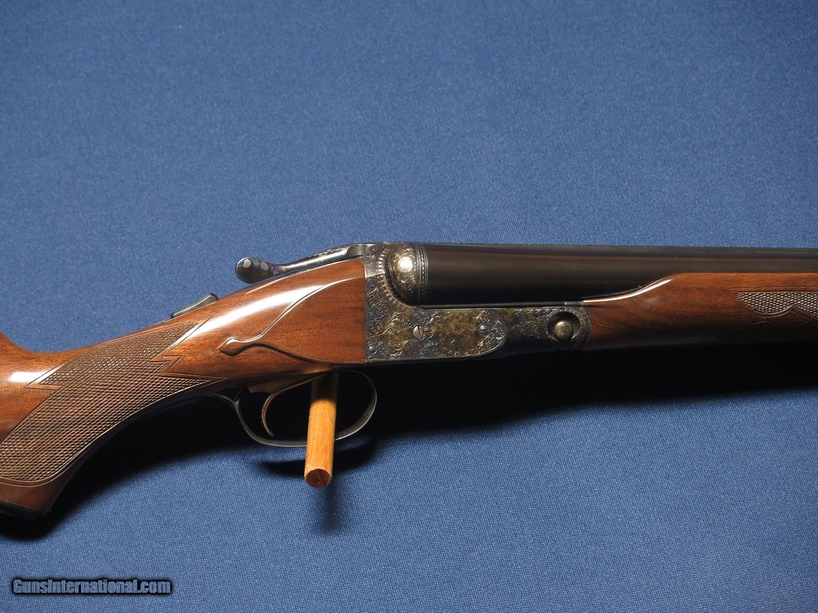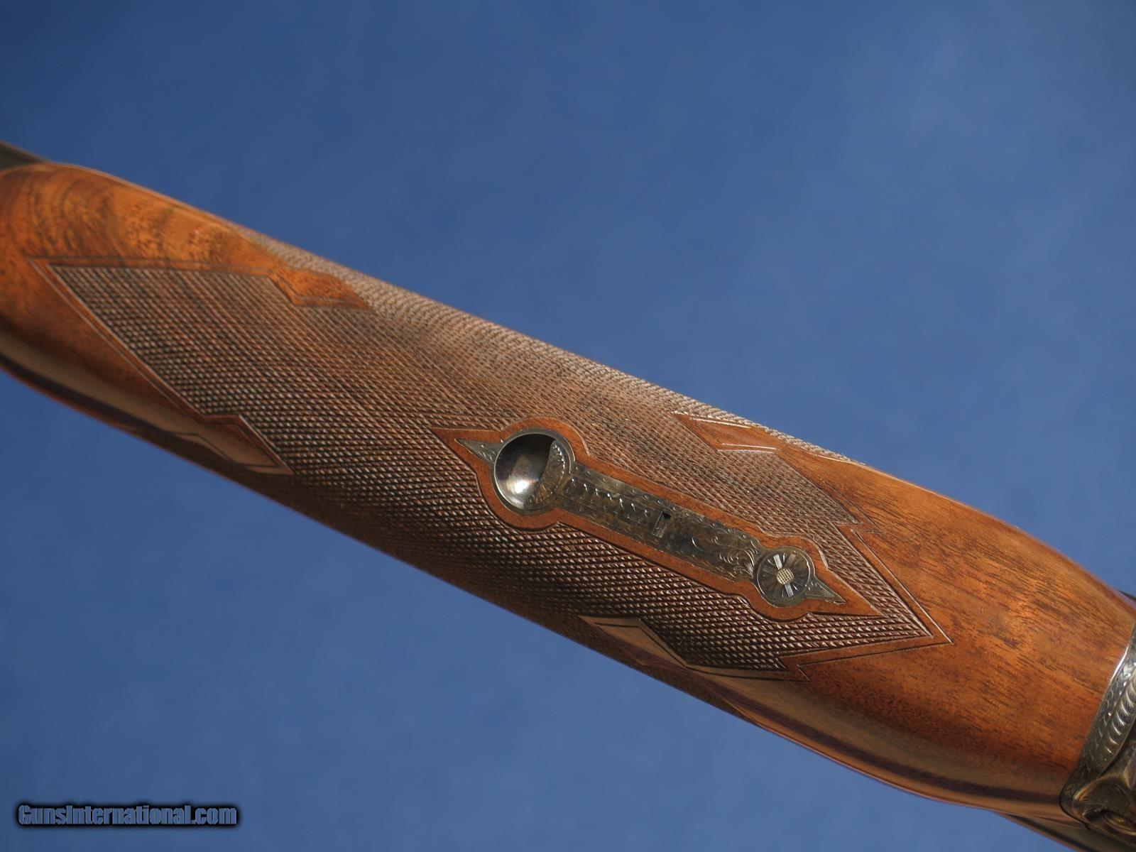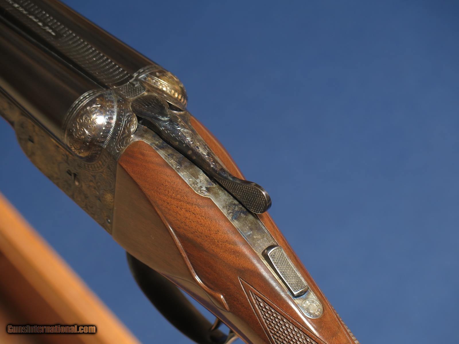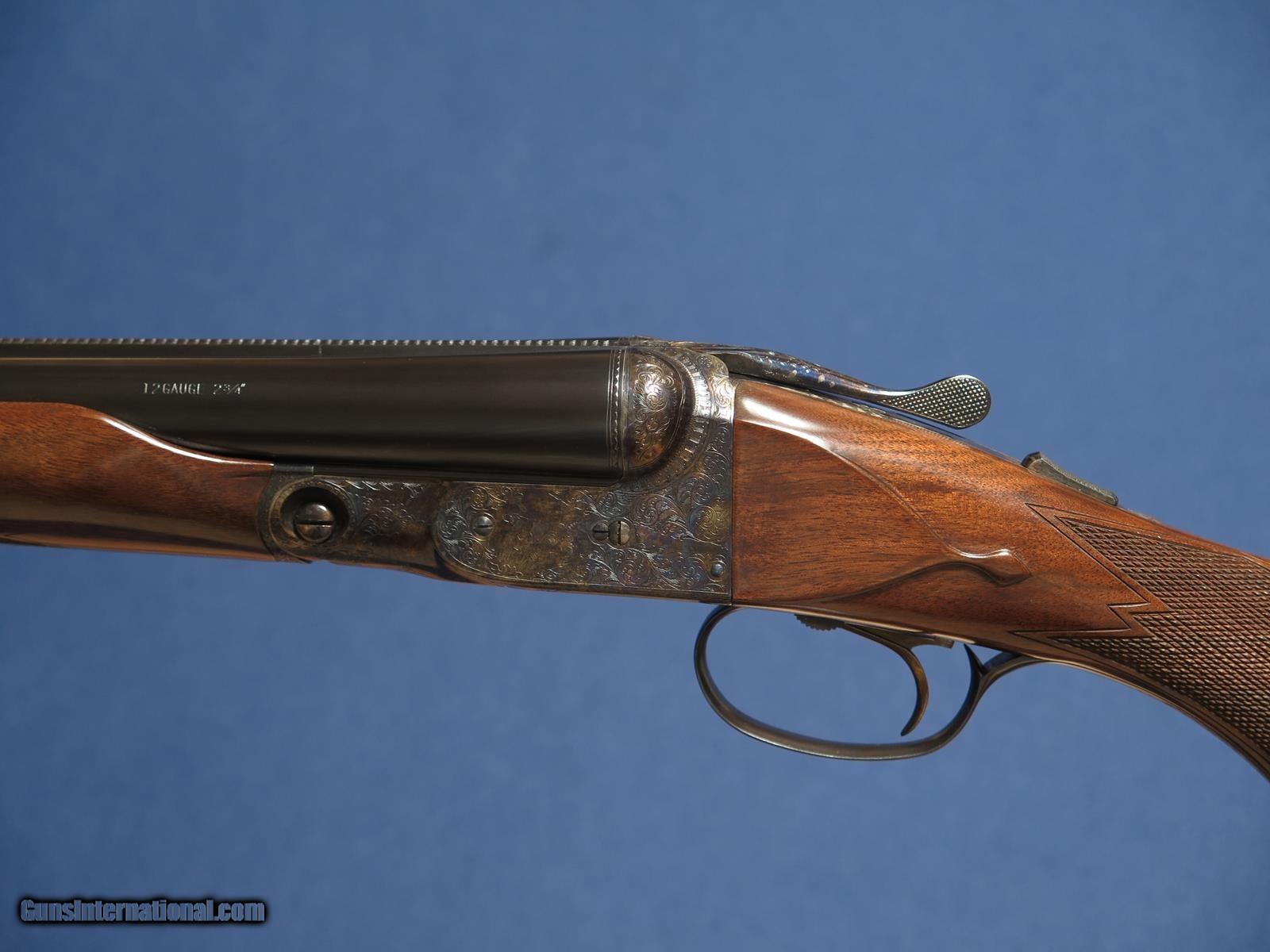 Description: Parker reproduction DHE 2 barrel 12ga set. 28 inch Mod and Full + 26 inch IC and Mod. 2 3/4 chambers. Beavertail forearm. S.S.T. 14 1/4 LOP skeleton butt. 1 3/8 comb 2 1/8 heel. Looks like new condition with case, cover, and keys. SOLD Shotgun Gauge: 12 Gauge |