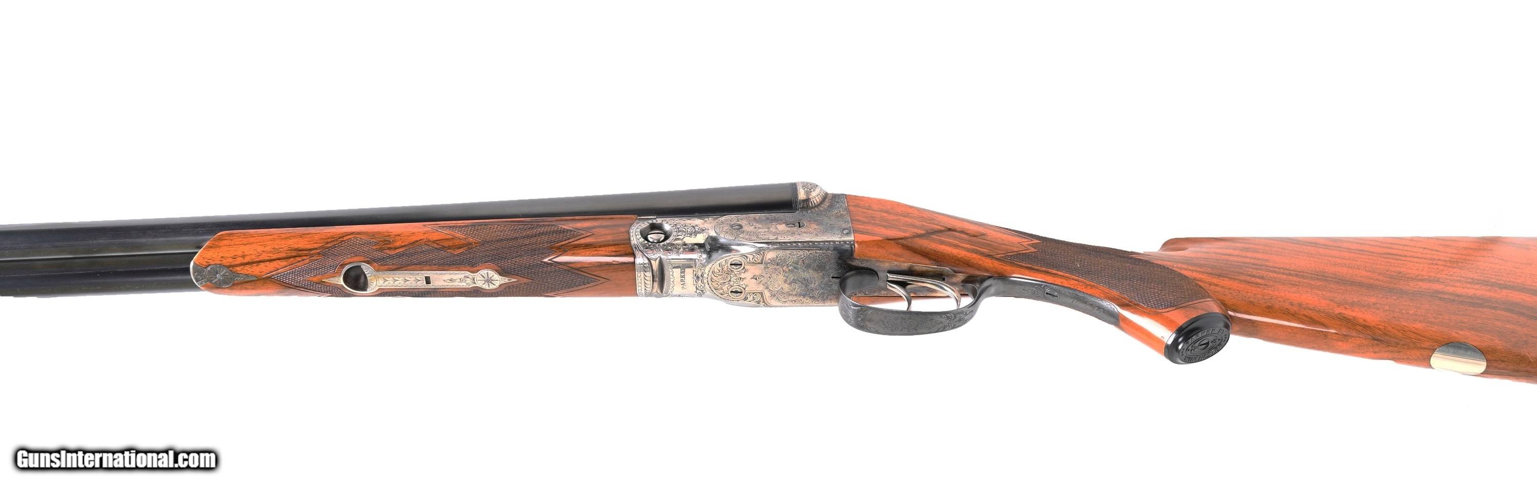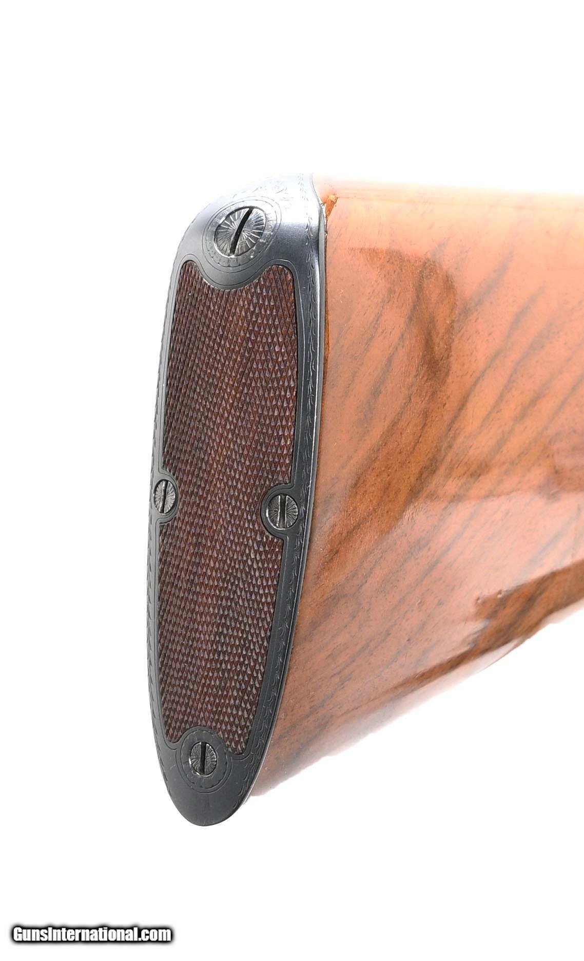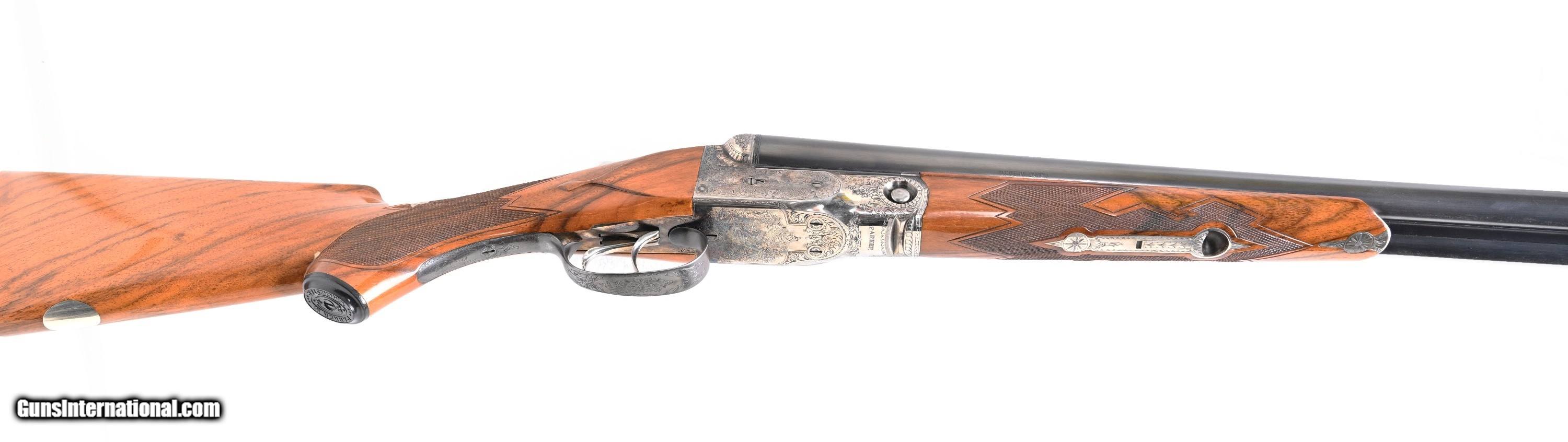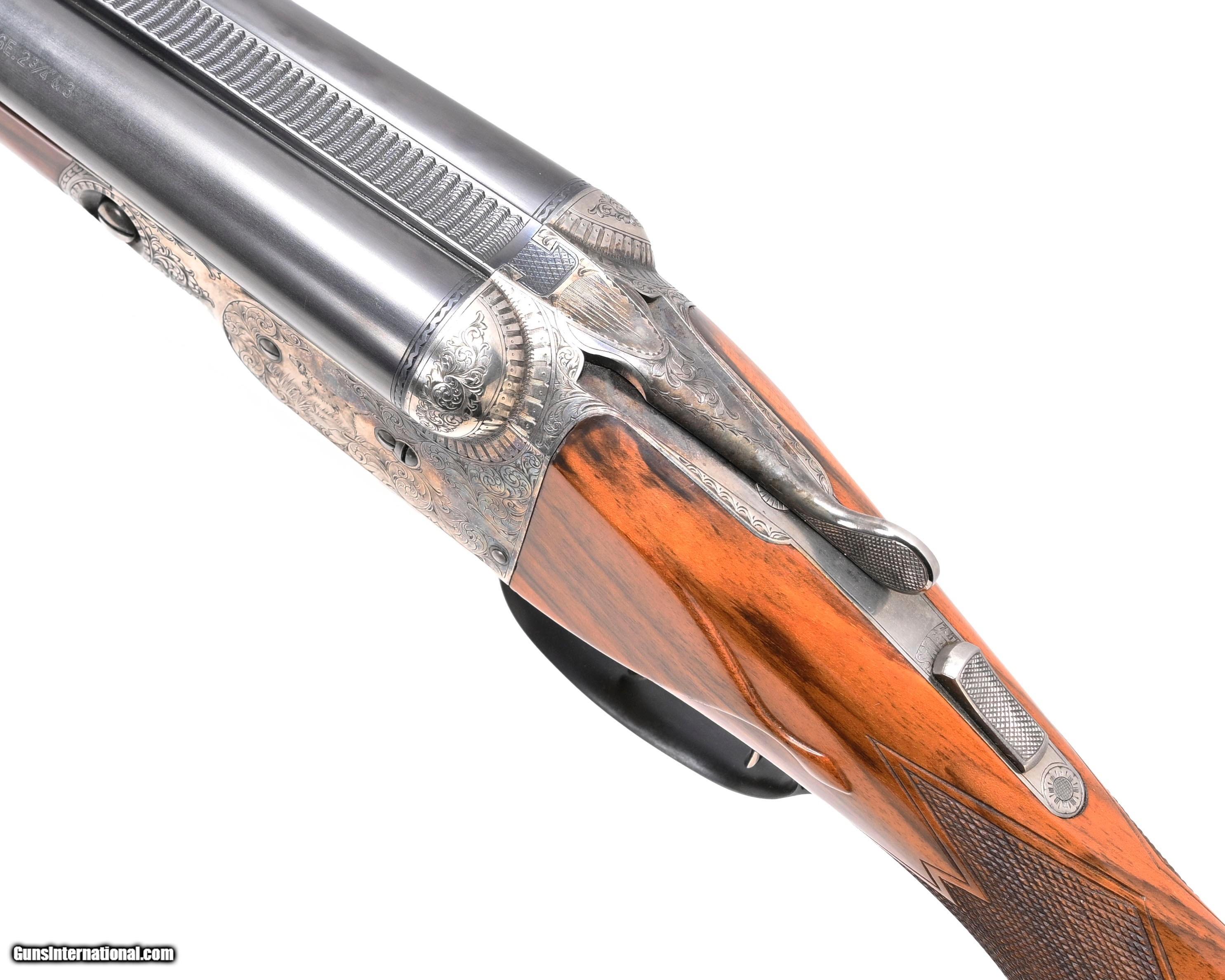 Description: "Early" Parker Reproduction DHE 20 gauge SxS shotgun. "P" series serial number that often indicated a Prototype gun. This gun is configured with 28" barrels choked Modified & Full. Chambered for both 2 3/4" & 3" cartridges. Double triggers. The Prince of Wales grip butt stock has a skeleton butt plate with a 14 1/4" length of pull. 1 1/2" drop at the comb and 2 1/2" drop at the heel with slight cast for a right hand shooter. Matching splinter forearm with Deeley style release latch. This gun has seen gentle use. No marks, scratches or damage. The blued metal pieces are excellent. The wood is excellent. The case colors have faded on the receiver to the point that the receiver almost looks polished! Mechanically excellent. Price: $4,500.00 Contact Seller |