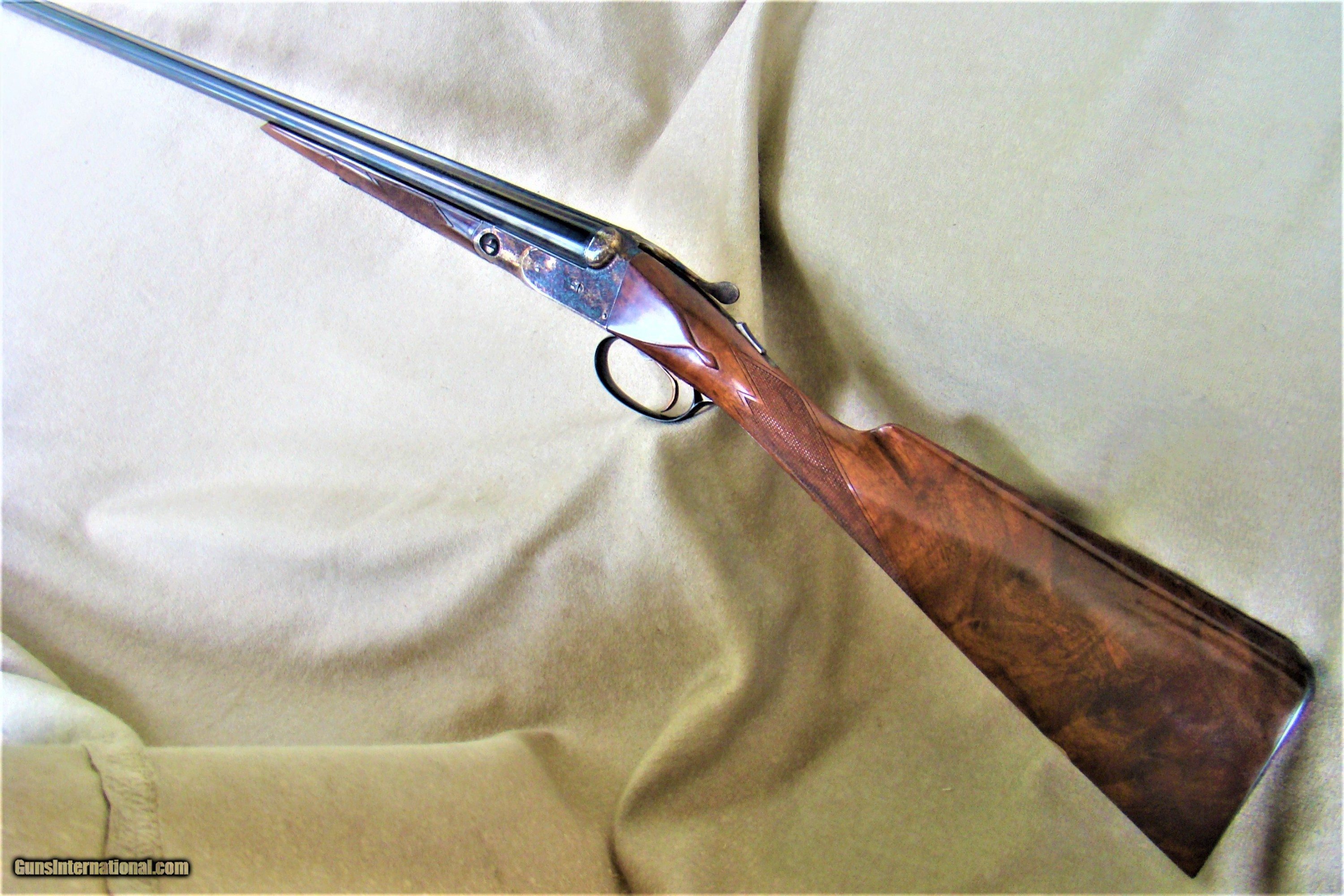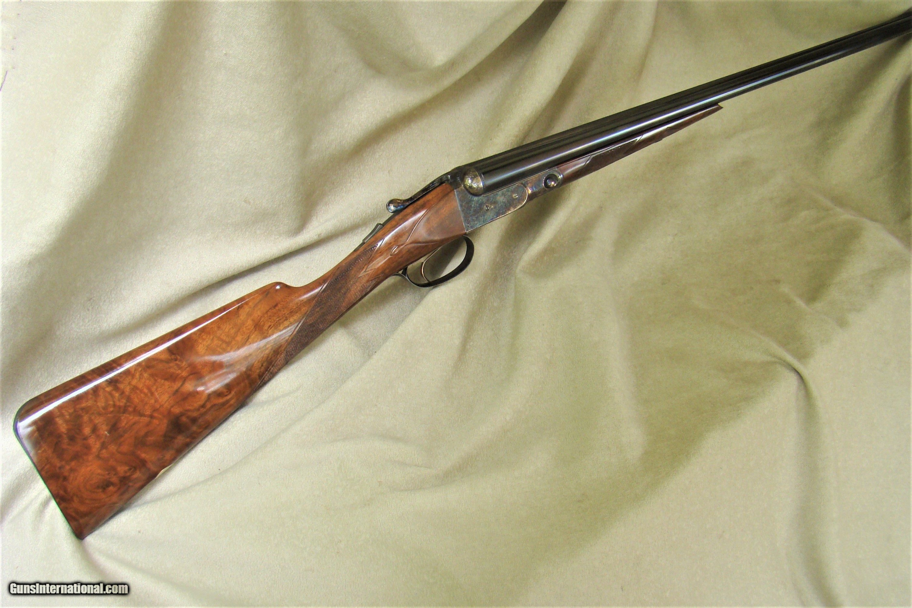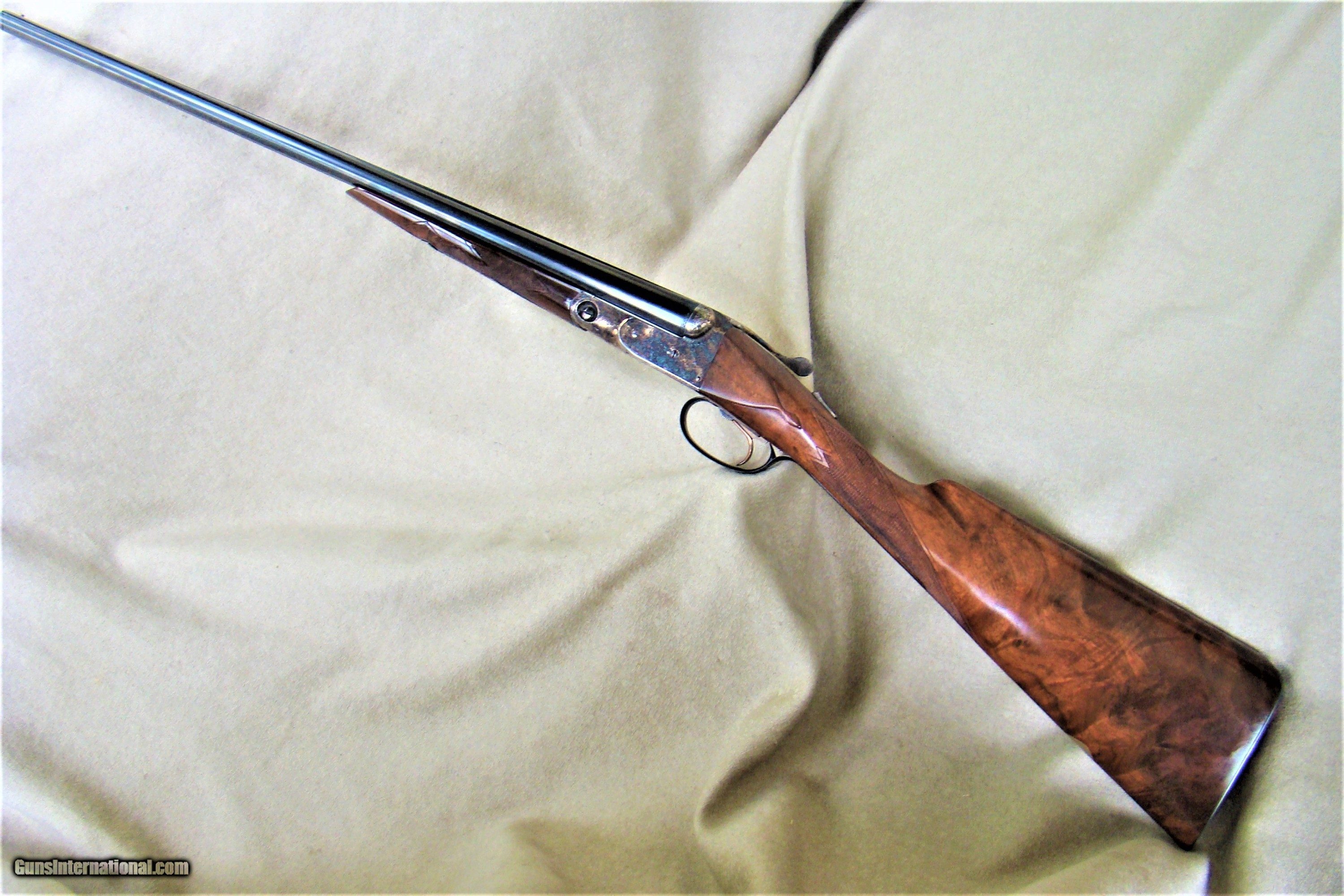Description: Parker Reproduction DHE 20 gauge, 26" barrels choked improved cylinder and modified. Single selective trigger, straight hand stock splinter for end . Highly figured stock measures 1-3/8", comb 2-1/4" heel, 14-1/4" over the skeleton butt plate. 99 % case color and blue, some small handling marks. Weighs just 6lbs, 5-1/2 oz. SOLD |