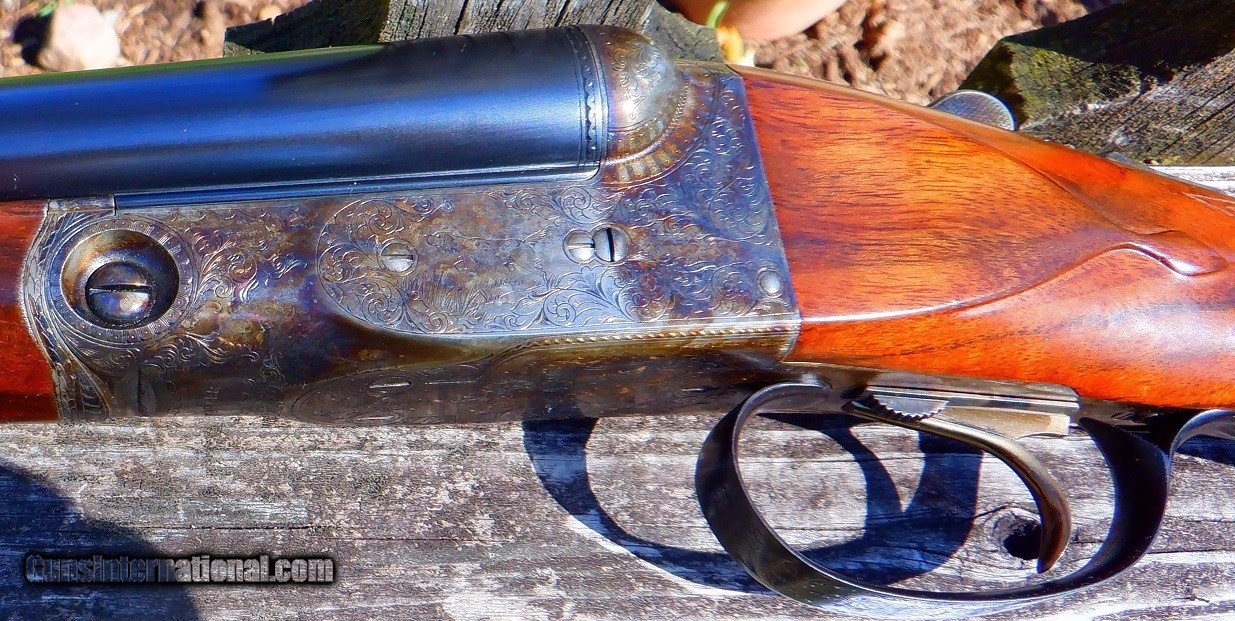 Description: PARKER REPRODUCTION - DHE 20 GAUGE - 26" BARRELS CHOKED IC/MOD. - CASE COLORED RECEIVER WITH 80% COLORS REMAING - STRAIGHT STOCK WITH SKELETON BUTTPLATE - 14" X 1 3/8" X 2 3/16" - WIEGHT 6 lbs, 10 ozs. - EJECTORS - SINGLE SELEECTIVE TRIGGERS - FACTORY CANVAS COVERED HARD CASE - GUN WOULD BE CONSIDERED IN NEW CONDIITON IF NOT FOR THE AREA OF CASE COLORING MISSING ON RECEIVER CAUSED BY RUBBING ON CASE INTERIOR. SOLD |