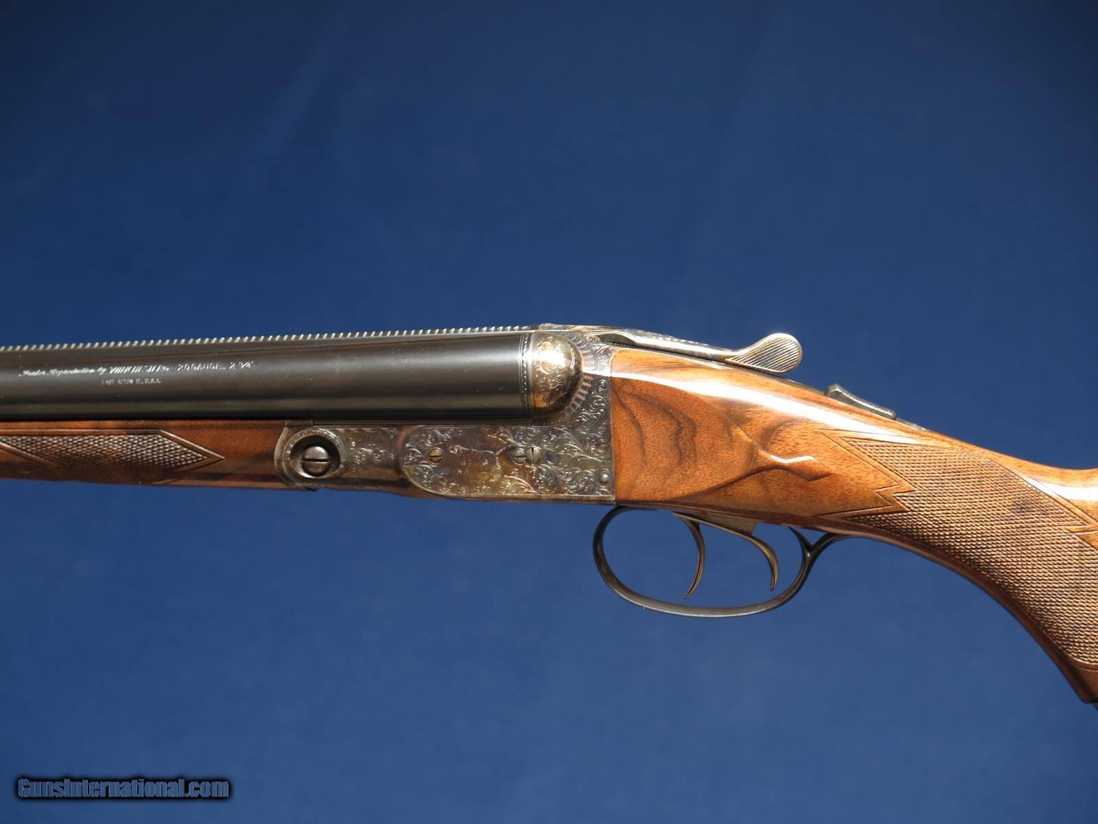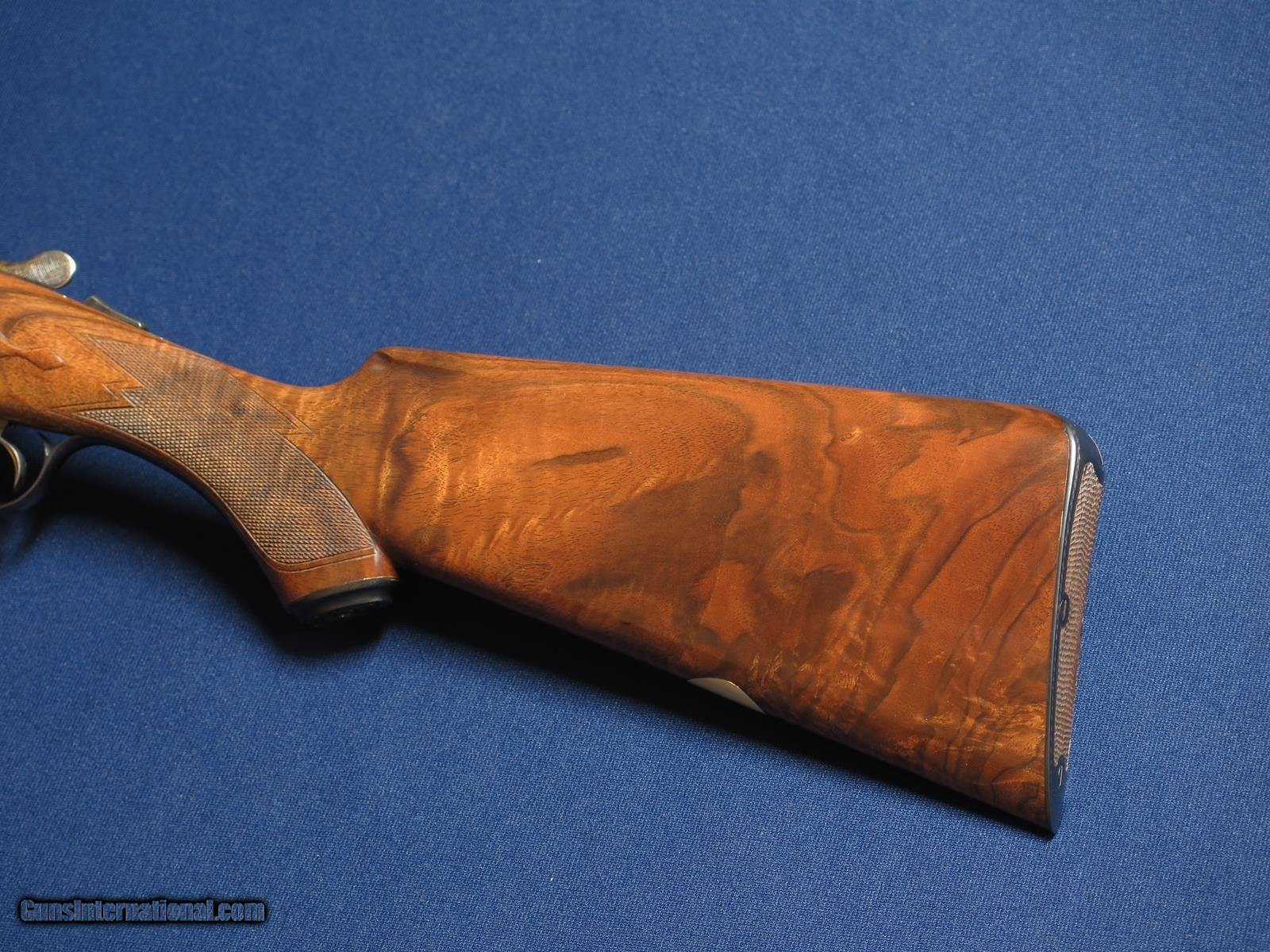 Description: Parker Reproduction DHE 20ga. 26 inch IC & Mod. Double triggers. Automatic ejectors. 14 1/4 LOP skeleton butt. Beautiful grain in wood. 99% in case, cover, and booklet. 6 lbs 8 oz. SOLD |