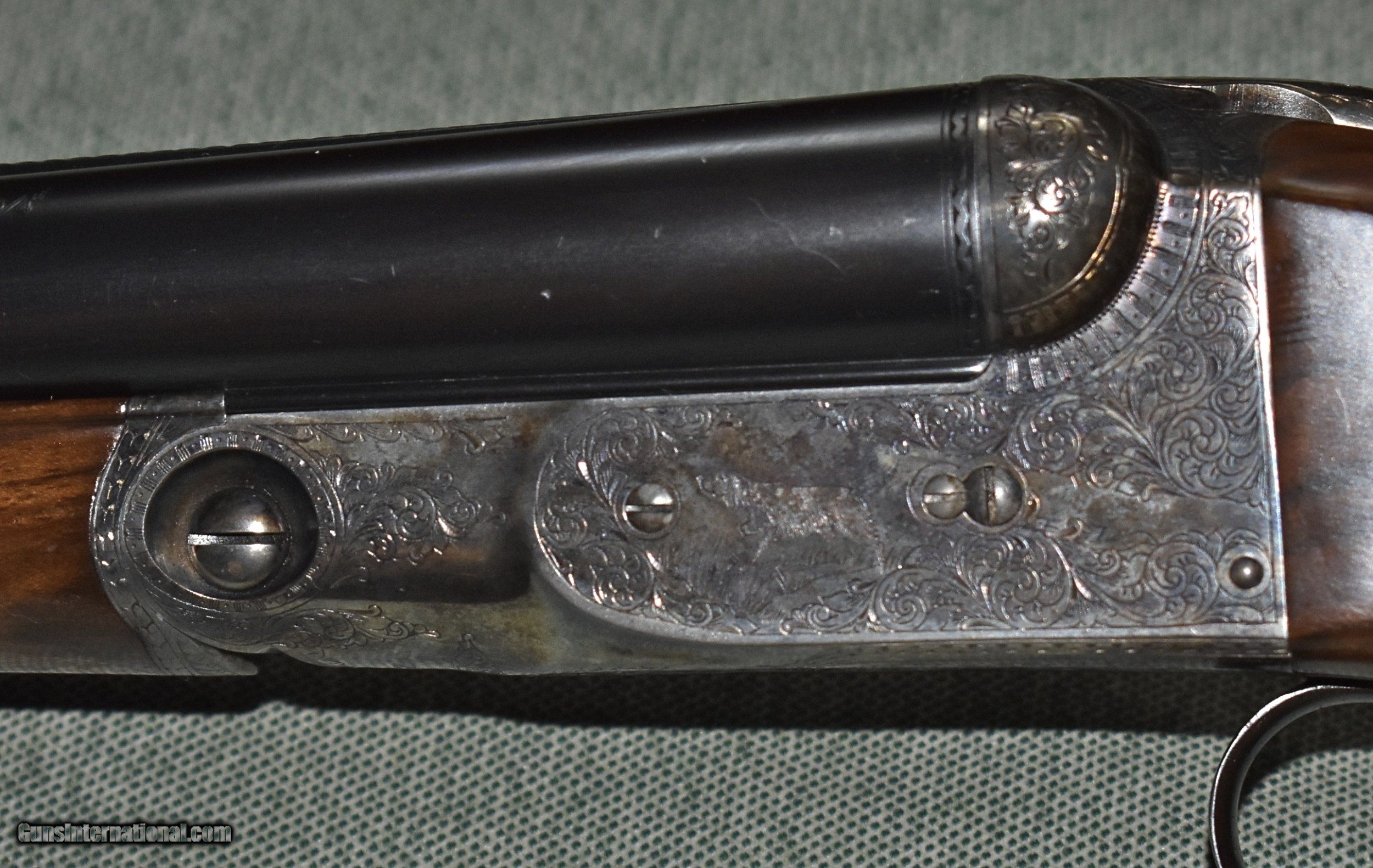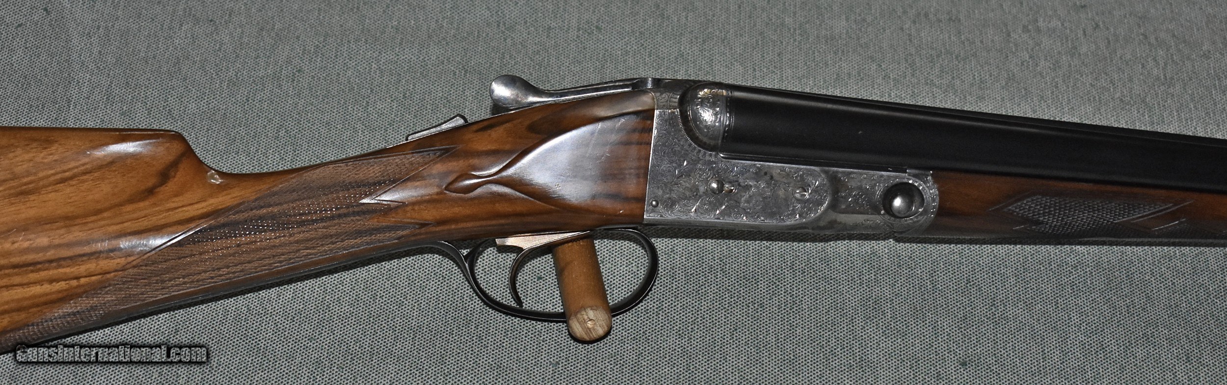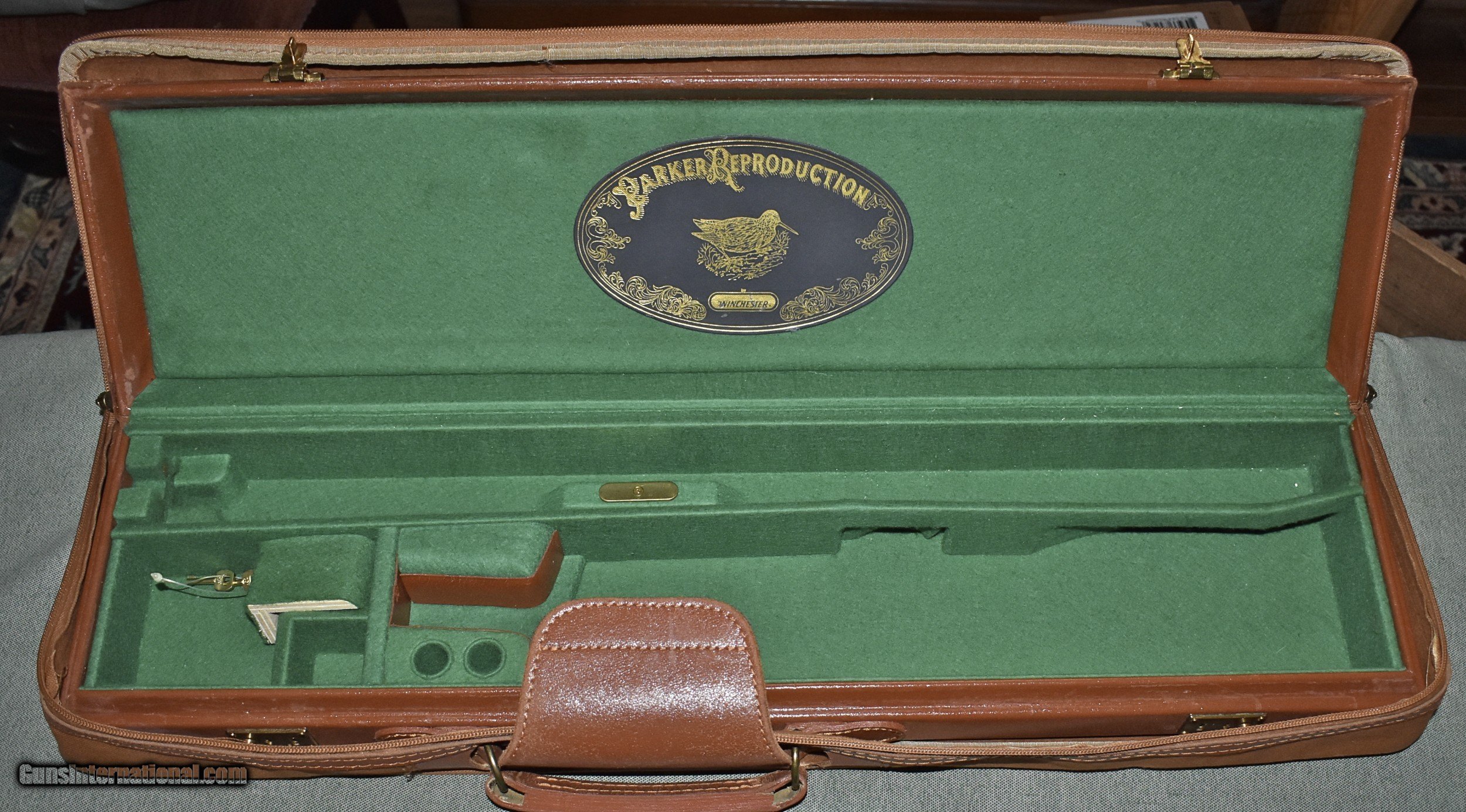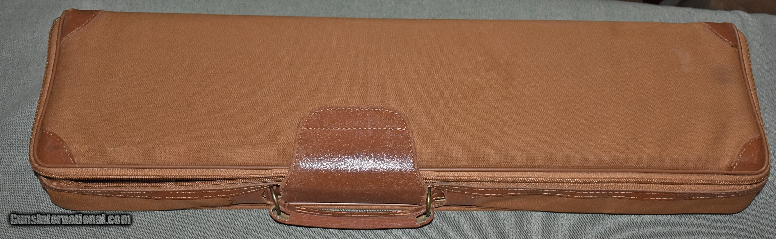 Description: Parker Reproduction DHE 20 gauge in the factory luggage case. This gun is in excellent original condition retaining 90% + of the case colors and 100% of the barrel blue and wood finish. The gun has 26" barrel choked improved cylinder (.008") and modified (.018"). The gun has a straight grip stock, single selective trigger, ejectors, and skeleton butt. It is chambered for 23/4" shells. The gun weighs 6-8. This gun has been fired very little and shows no wear except some slight loss of case color on the receiver. The Parker Repros are great values. Where else can you get a fully engraved boxlock ejector with great wood and a factory case for under $9K? SOLD Shotgun Gauge: 20 Gauge Manufacturer: Parker Reproduction Model: DHE Serial Number: 20-5472 Barrel Length: 26 Chambers: 23/4 Ejectors: yes Condition: excellent Metal Condition: excellent Wood Condition: mint Bore Condition: mint Stock Dimensions: 143/8"x11/2x23/8 Fore End: splinter Butt Pad: factory Skeleton Butt Weight: 6-8 Choke Left: Modified (.018") Choke Right: IC (.008") Case: factory case |