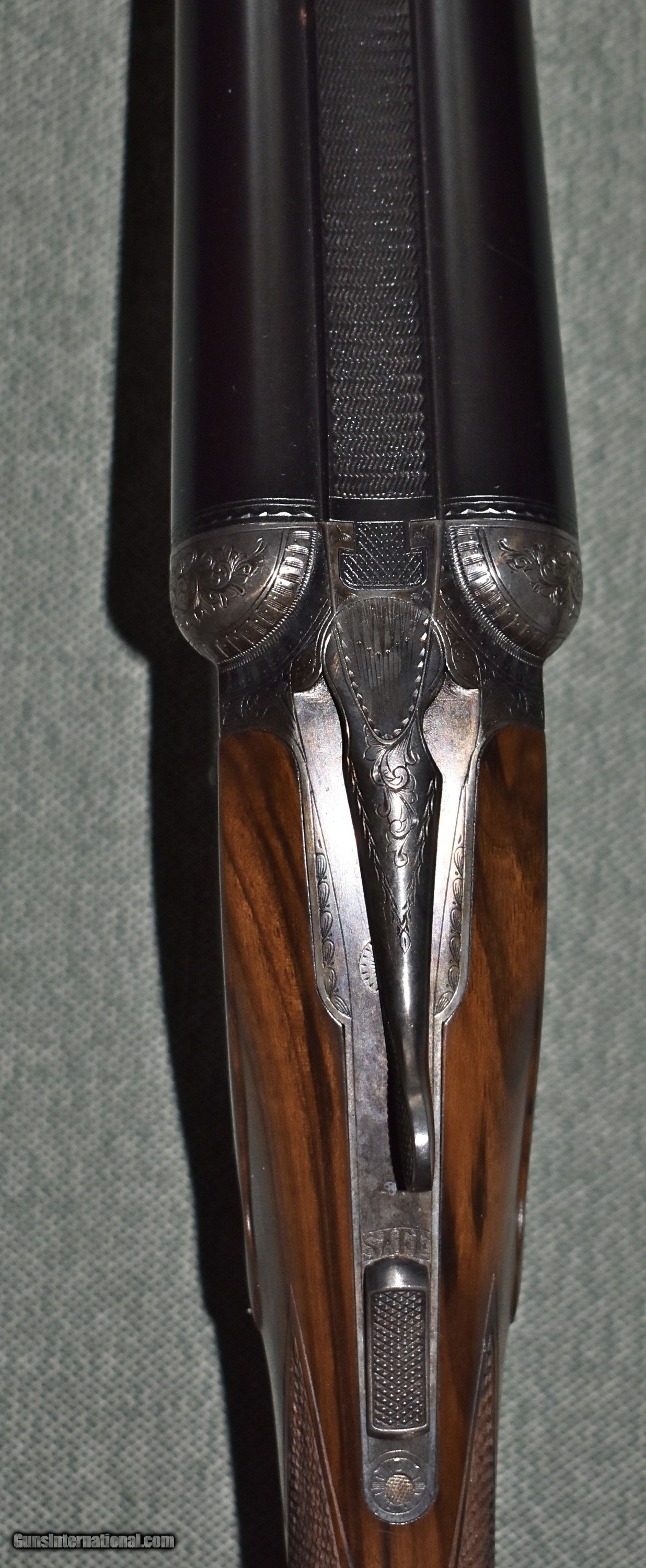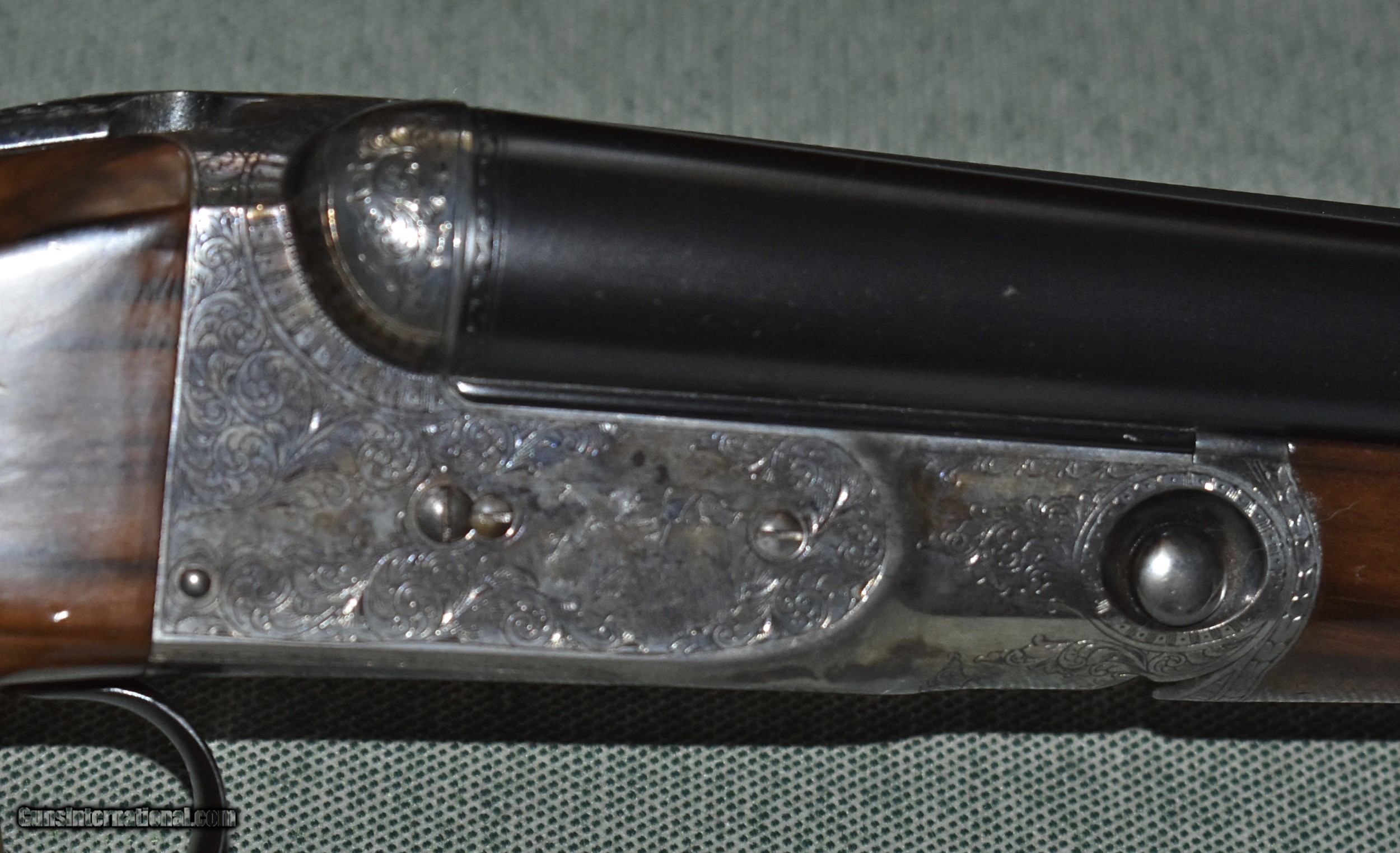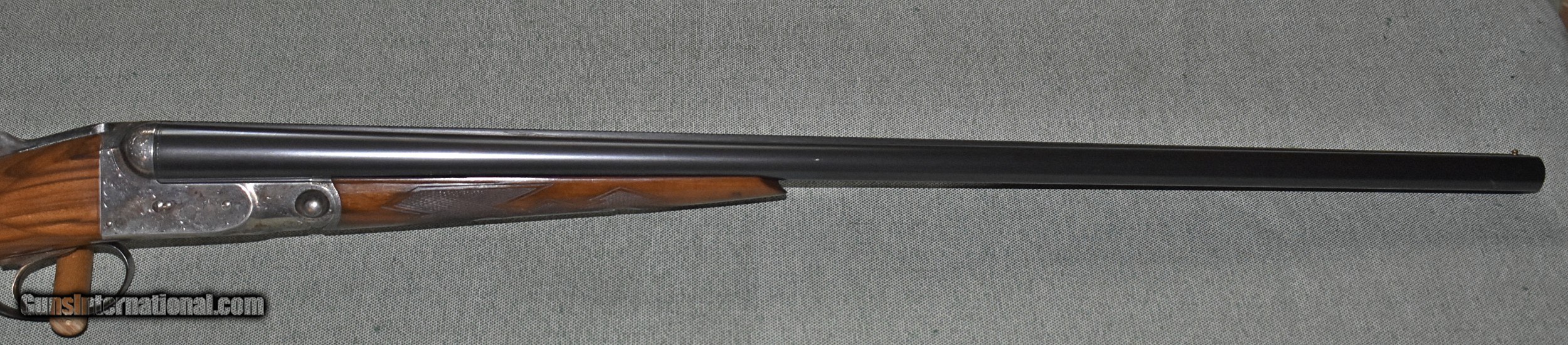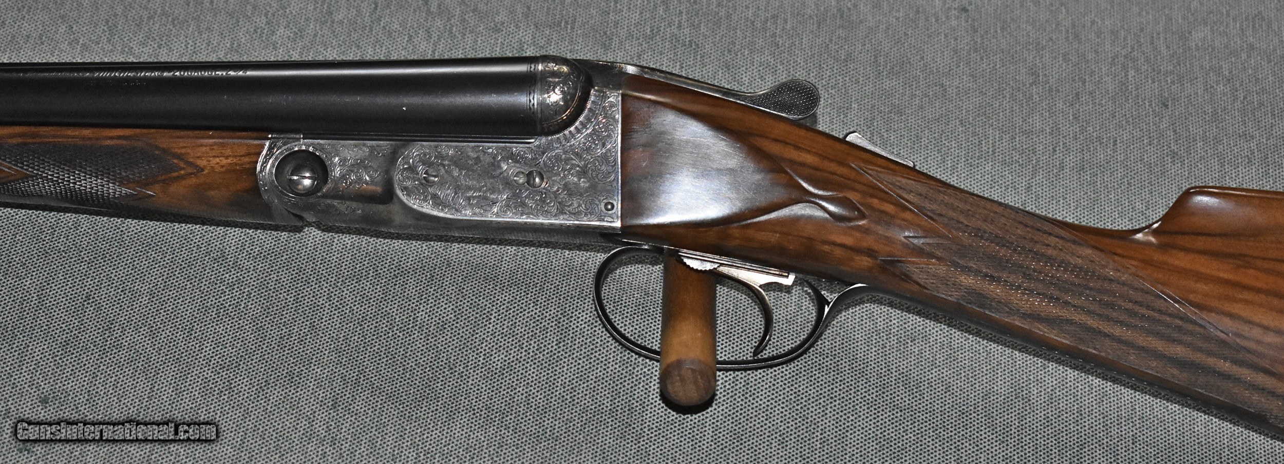 Description: Parker Reproduction DHE 20 gauge in the factory luggage case. This gun is in excellent original condition retaining 90% + of the case colors and 100% of the barrel blue and wood finish. The gun has 26" barrel choked improved cylinder (.008") and modified (.018"). The gun has a straight grip stock, single selective trigger, ejectors, and skeleton butt. It is chambered for 23/4" shells. The gun weighs 6-8. This gun has been fired very little and shows no wear except some slight loss of case color on the receiver. The Parker Repros are great values. Where else can you get a fully engraved boxlock ejector with great wood and a factory case for under $9K? SOLD Shotgun Gauge: 20 Gauge Manufacturer: Parker Reproduction Model: DHE Serial Number: 20-5472 Barrel Length: 26 Chambers: 23/4 Ejectors: yes Condition: excellent Metal Condition: excellent Wood Condition: mint Bore Condition: mint Stock Dimensions: 143/8"x11/2x23/8 Fore End: splinter Butt Pad: factory Skeleton Butt Weight: 6-8 Choke Left: Modified (.018") Choke Right: IC (.008") Case: factory case |