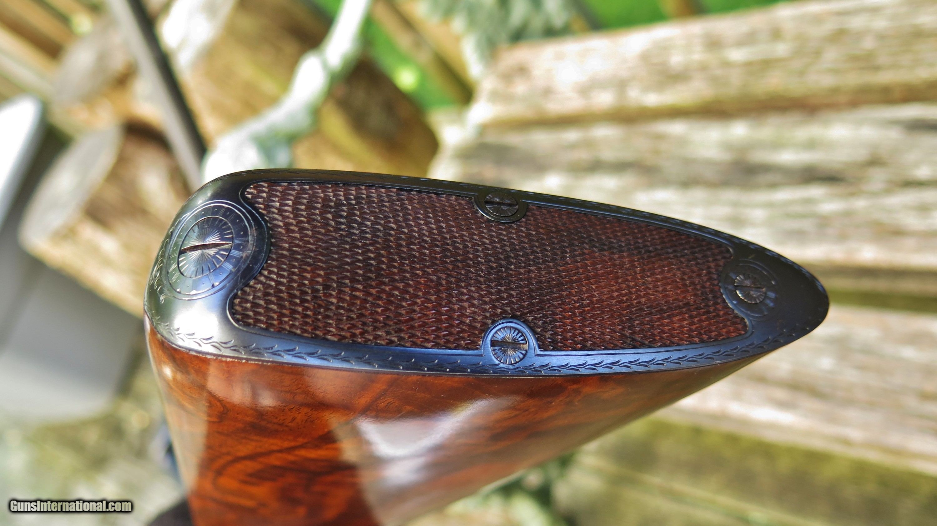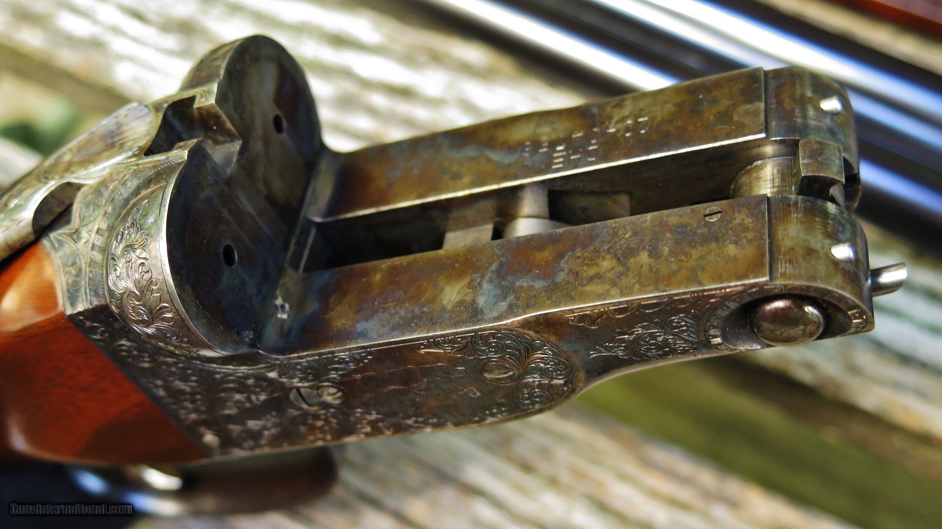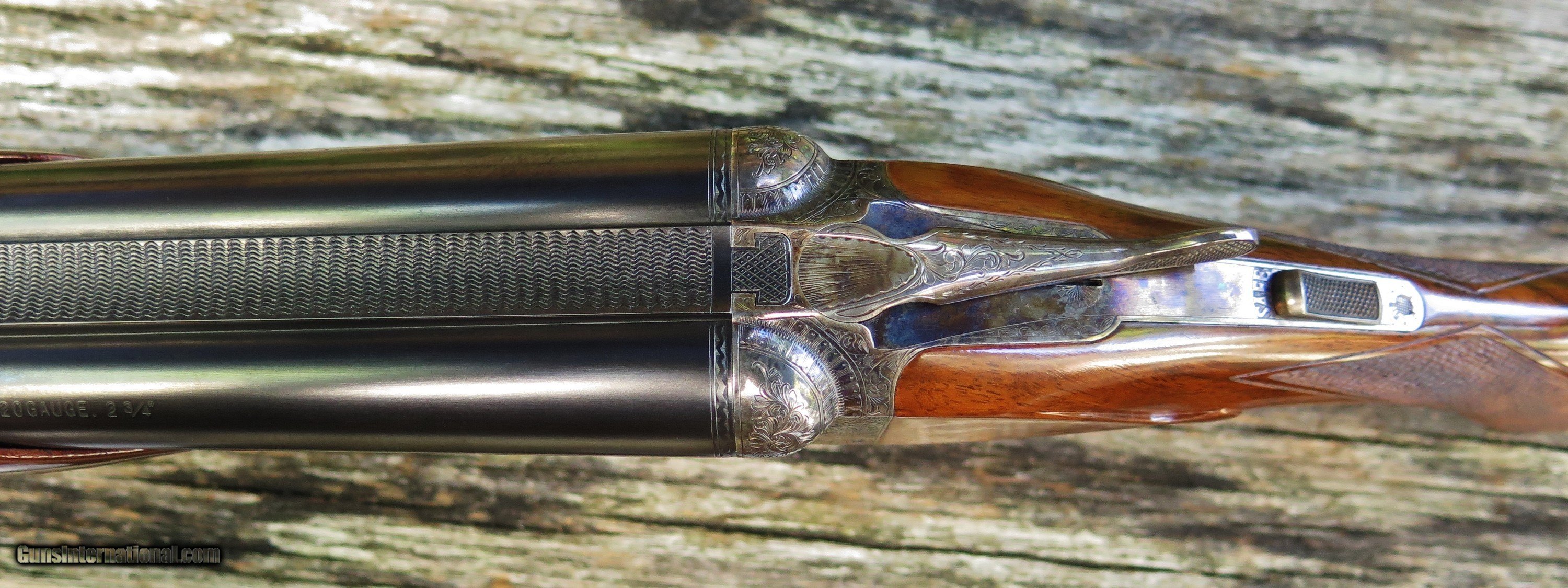 Description: Parker Reproduction DHE 20GA for 2 3/4" shells. Looks very little fired. 26" barrels choked Q1 & Q2 for Skeet and Skeet, that is just the way they marked skeet chokes. Single select trigger and ejectors. 14 1/4" L.O.P. 2 1/4" D.A.H. 1 3/8" D.A.C. All the case color on receiver. Bores are perfect. Lever is right proud of center. Nicely figured walnut in buttstock and beavertail forearm. Pistol grip is scarce on this model. No leather case comes with it. I am Oregon Lumberjack here and on the other big site with 1000's of positive feedbacks. I am a FFL dealer in Connecticut for over 35 years. Shipping is $75 to your dealer. Guaranteed to make you very happy. SOLD |