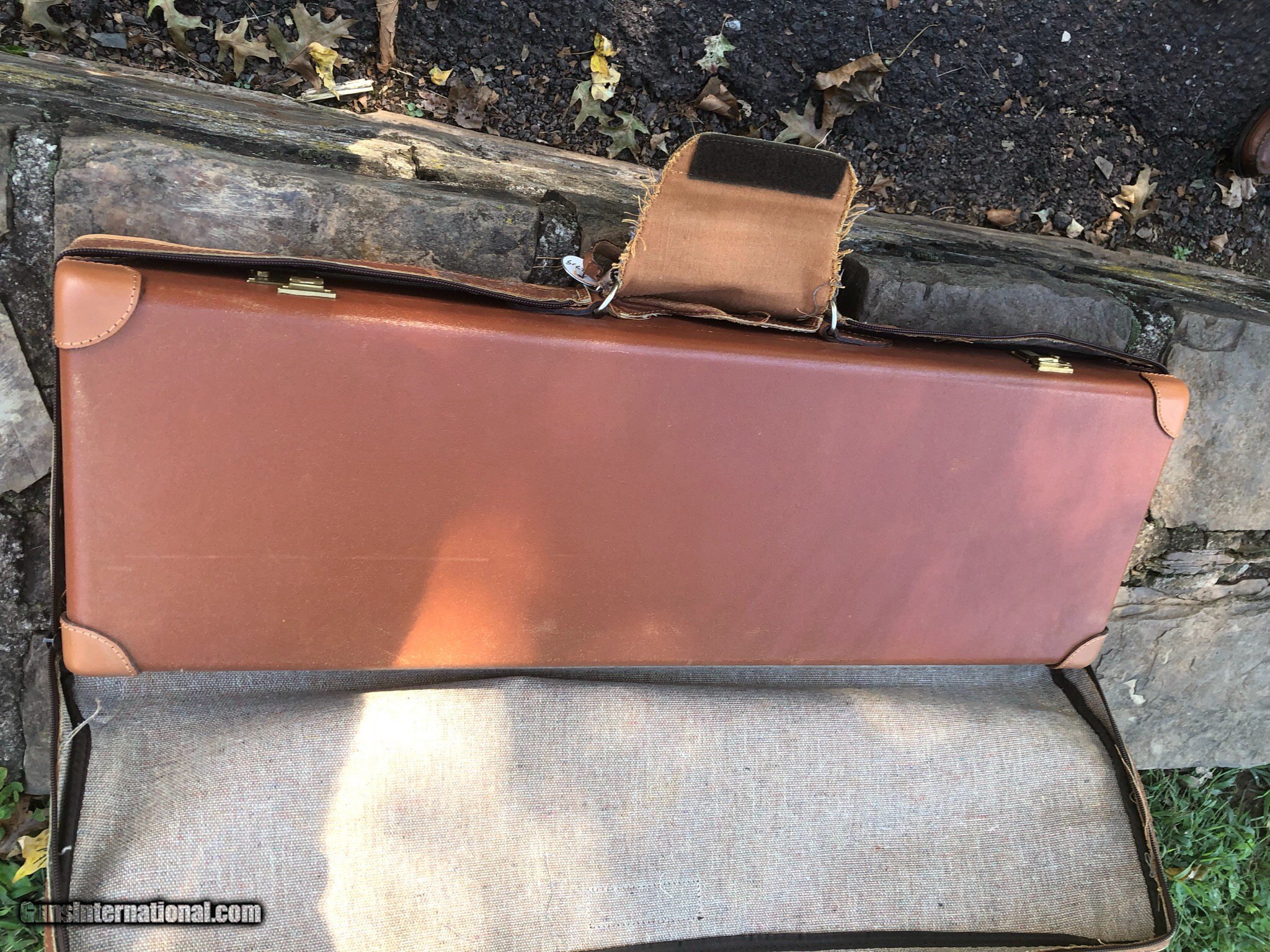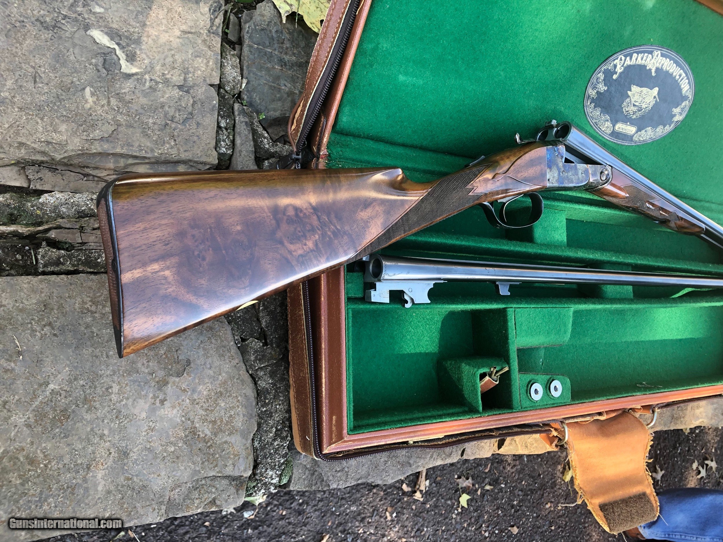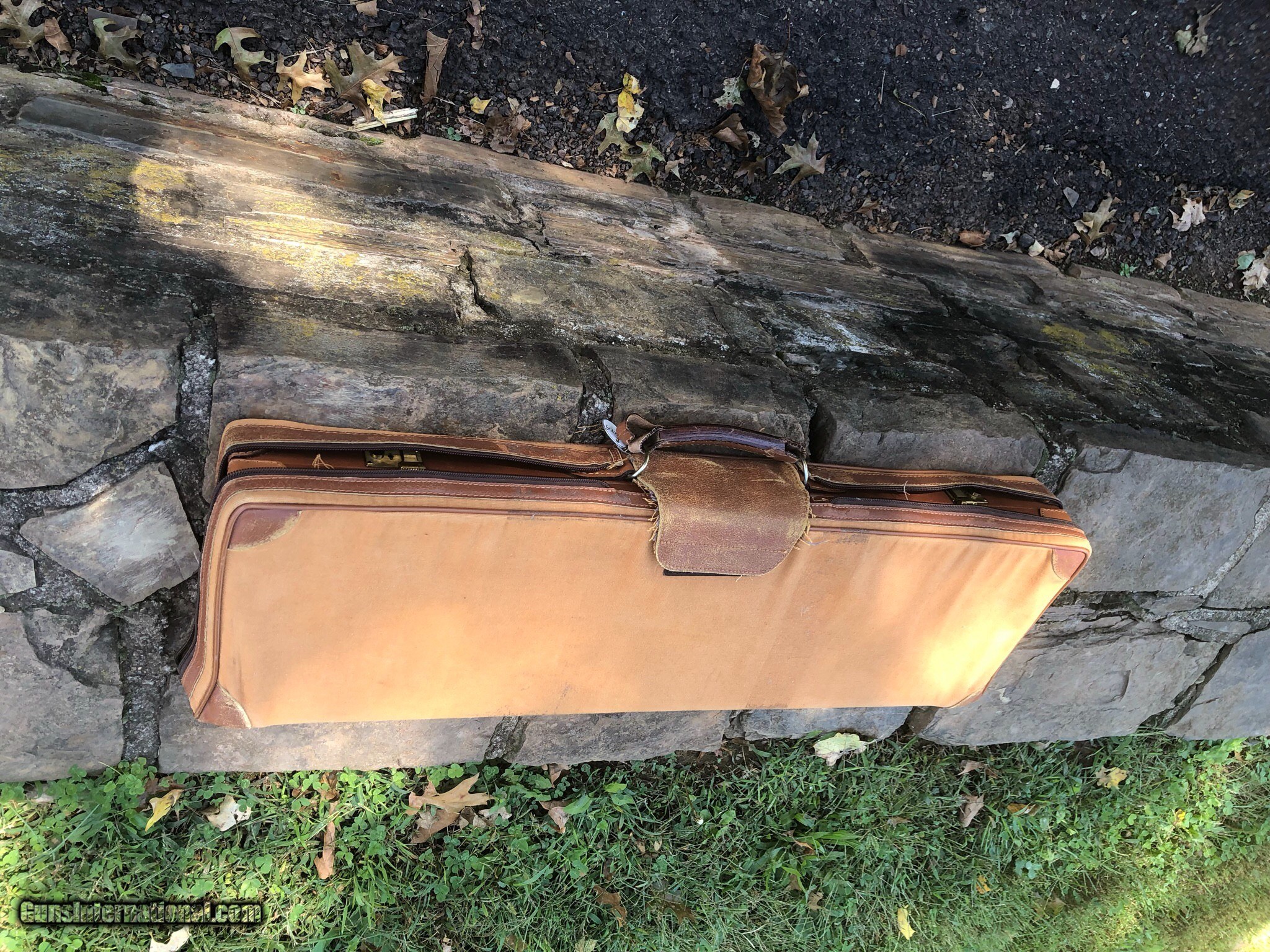 Description: Sold. I'm selling a really nice Parker Reproduction 28ga. 2 barrel set. The gun shows little, if any use. The case is in decent condition but the canvas cover is just fair. I'm of the opinion that this is not the original case. So I'm pricing this aggressively to sell based on that. There's no 2 barrel 28 ga. Set that can compare price wise. I've posted all the specs in one of the pictures on this straight stocked, single trigger, splinter forend gun that should answer all your questions. The OO frame 28 ga. guns are becoming more costly every month. Don't miss this opportunity. SOLD |