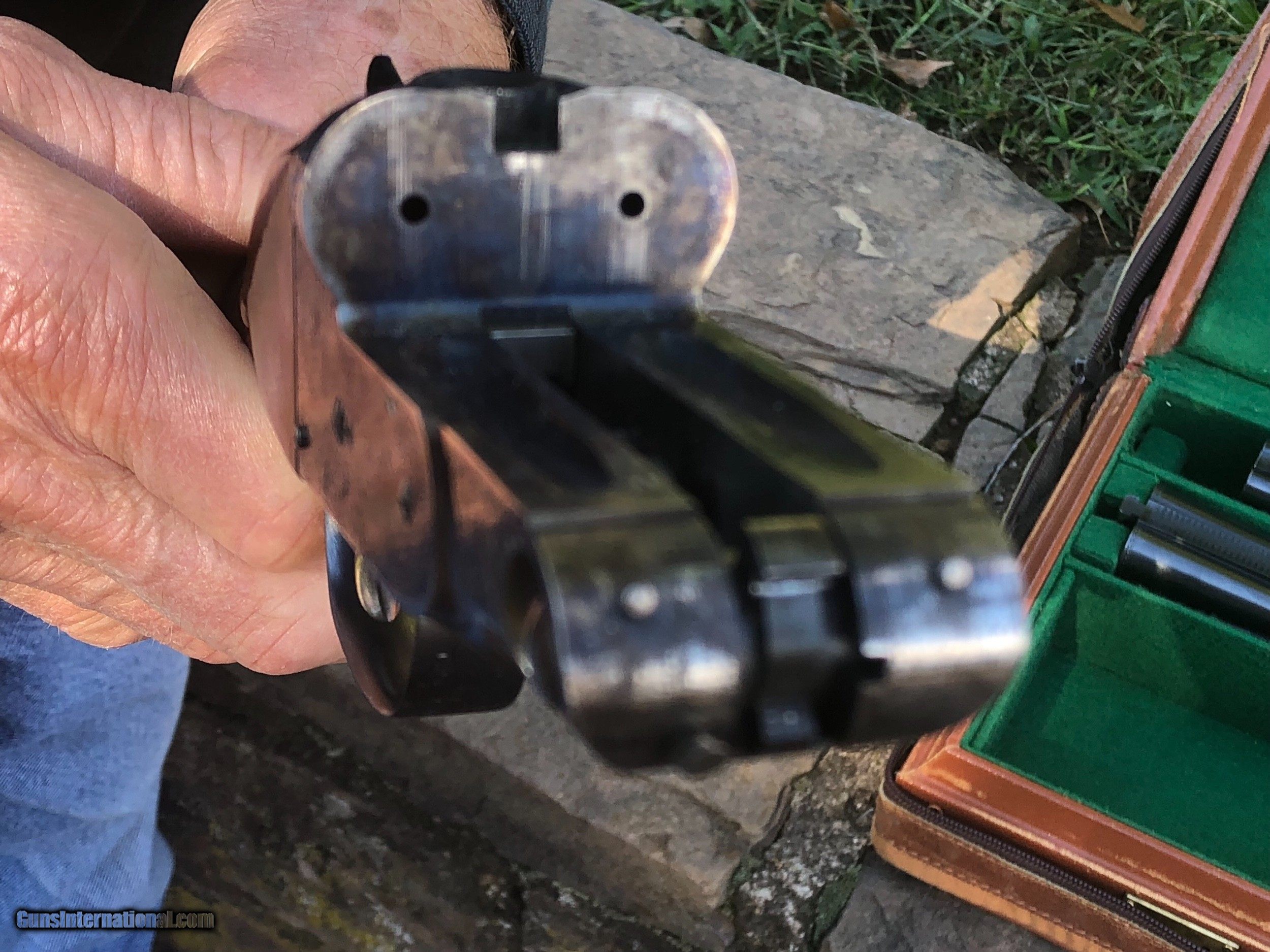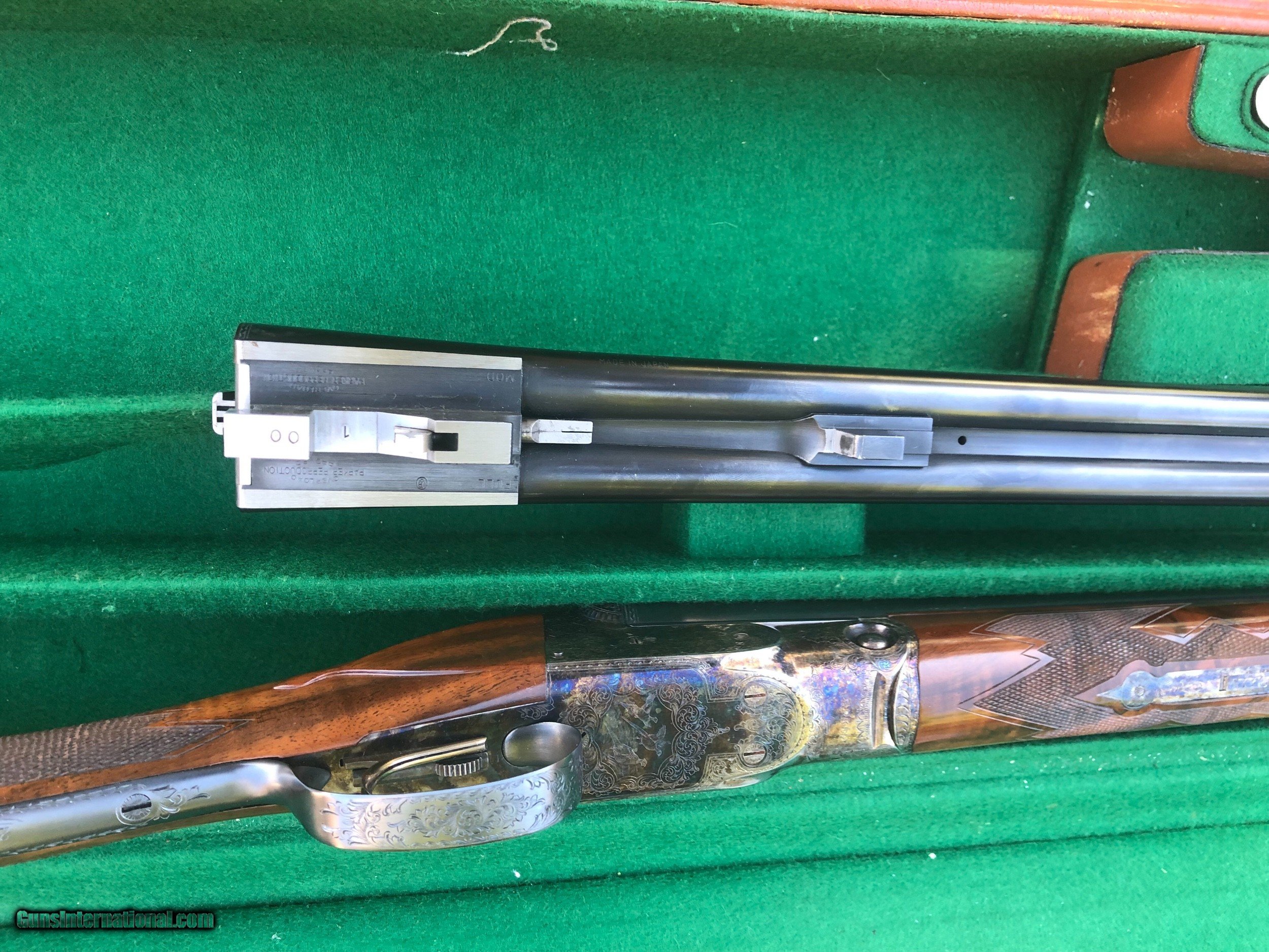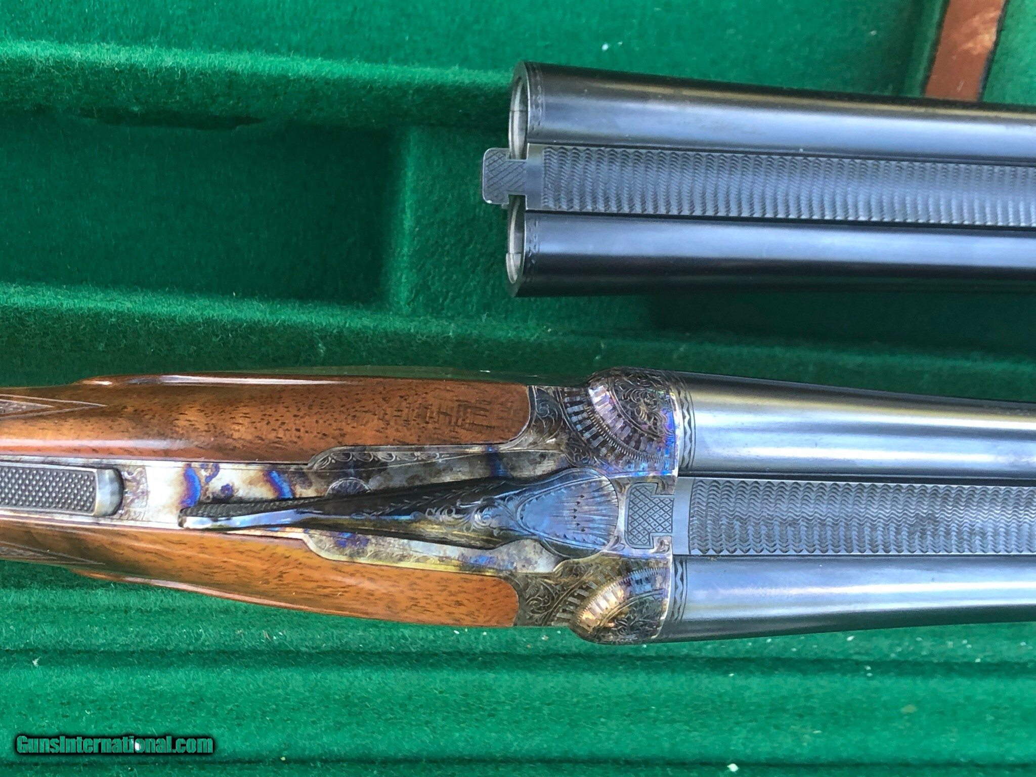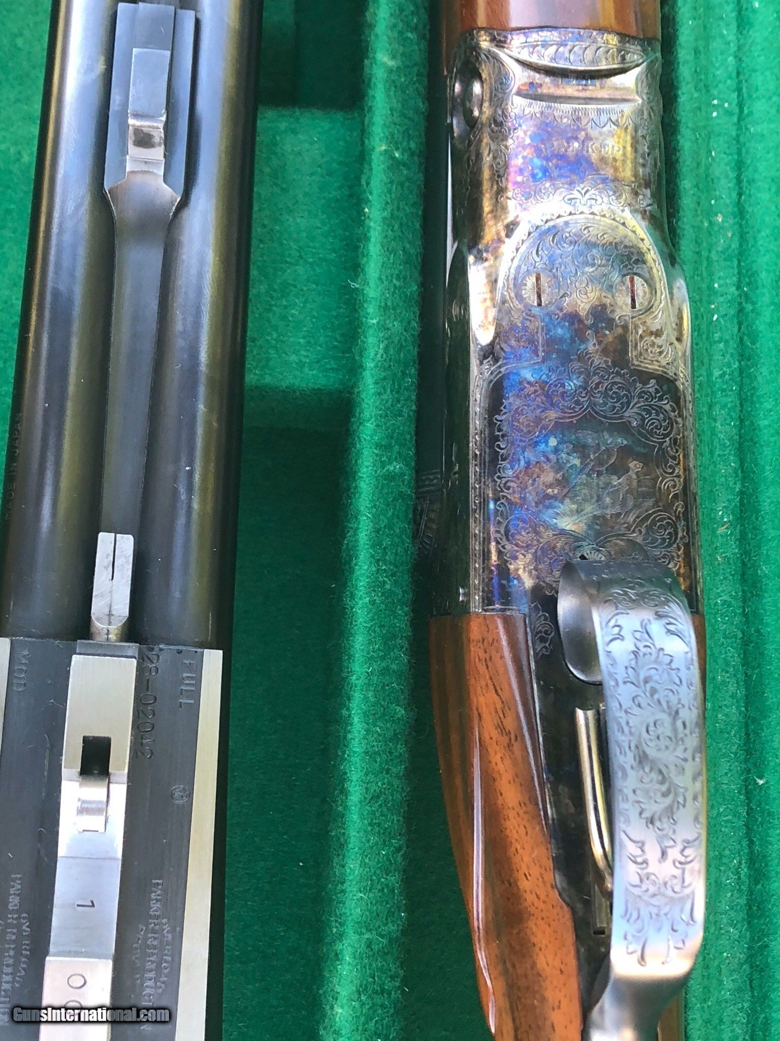 Description: Sold. I'm selling a really nice Parker Reproduction 28ga. 2 barrel set. The gun shows little, if any use. The case is in decent condition but the canvas cover is just fair. I'm of the opinion that this is not the original case. So I'm pricing this aggressively to sell based on that. There's no 2 barrel 28 ga. Set that can compare price wise. I've posted all the specs in one of the pictures on this straight stocked, single trigger, splinter forend gun that should answer all your questions. The OO frame 28 ga. guns are becoming more costly every month. Don't miss this opportunity. SOLD |