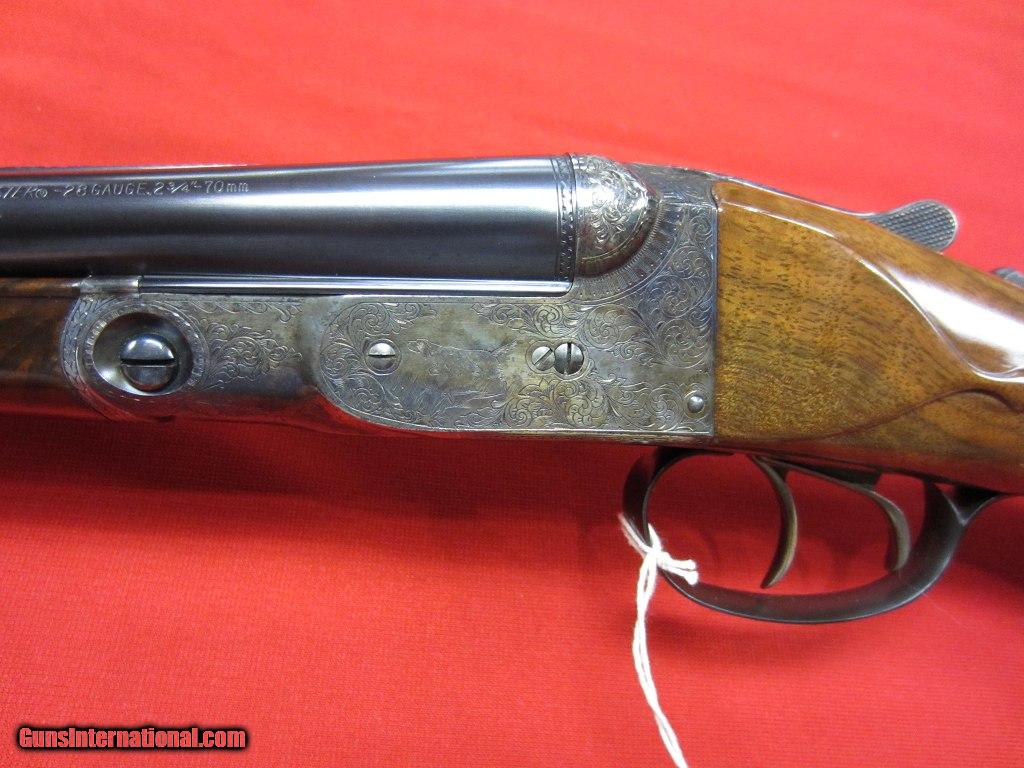 Description: Parker Reproduction DHE 28ga/26" IC/M -- Parker reproduction with double triggers, pistol grip stock with skeleton butt, splinter forend, and auto-ejectors. This gun is factory original and in very good condition overall with factory hardcase. This particular gun has a very well-figured stock with excellent figure. SOLD |