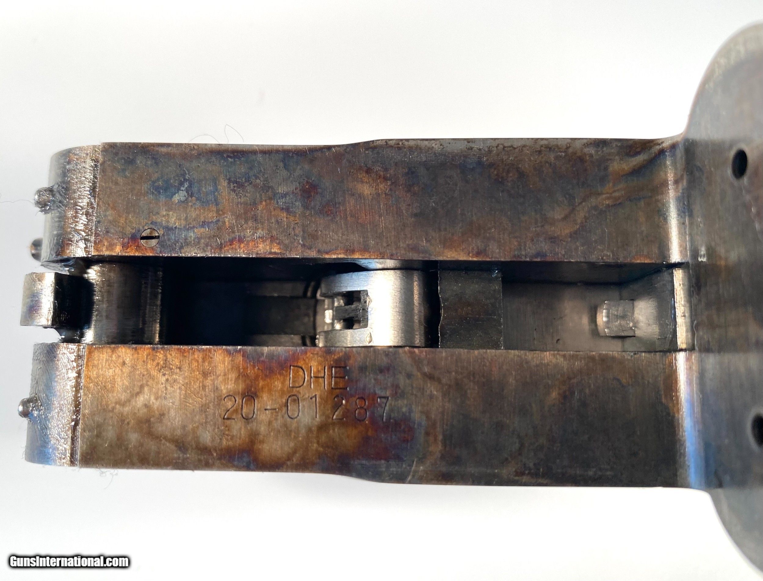 Description: For your consideration we have a beautiful example of a Parker Reproduction DHE grade in 20 gauge in a two barrel set. Barrels are 26" and 28". The 26" barrel has IC and MOD chokes with 2 3/4" chambers. The 28" barrel has MOD and FULL chokes with 3" chambers. The stock has an English straight grip, beautiful wood with a skeleton butt plate with checkered butt. Forearm is beautiful wood as well. 99% color on action and all case colored items. Typical DHE grade engraving. Barrels have 99% bluing with mirror bores. This gun has not been shot much. For more pictures or to purchase, go to our site wickhamandbest dot com SOLD Shotgun Gauge: 20 Gauge Manufacturer: Parker Model: Repeoduction DHE Serial Number: 20-1287 Barrel Length: 26" and 28 Chambers: 26" = 2 3/4", 28" = 3 Ejectors: Yes Condition: Excellent Metal Condition: Excellent Wood Condition: Excellent Bore Condition: Mirror Bright Barrel Type: SxS Action: Box Lock Triggers: Single Selective Stock: English Straight Fore End: Splinter Butt Pad: Skeleton with checkered butt LOP: 14 1/4 Choke Left: 26" = Mod, 28" = Full Choke Right: 26" = IC, 28" = Mod Engraving: Standard DHE Extras: Snap Caps, Case key Case: Leather |