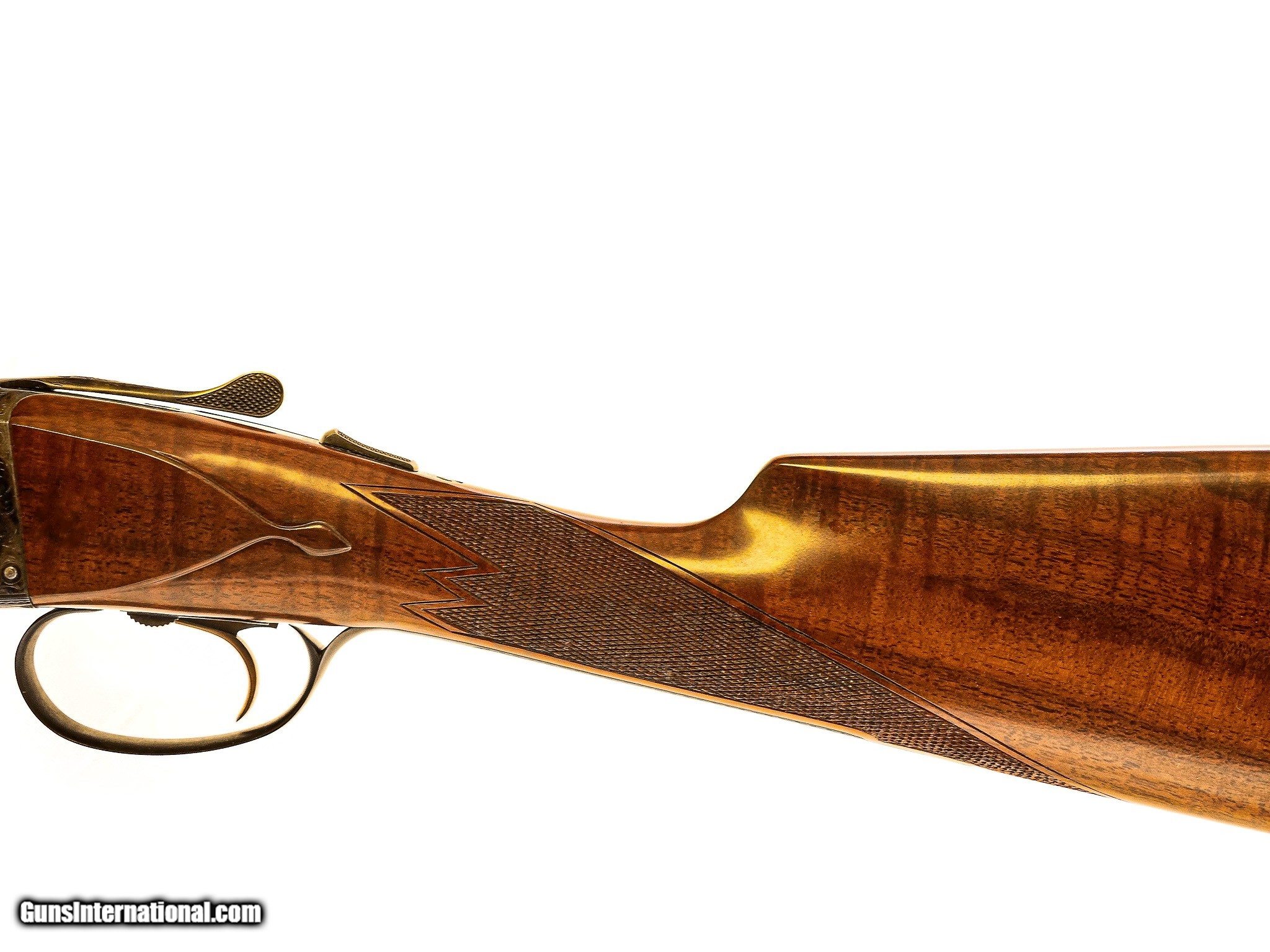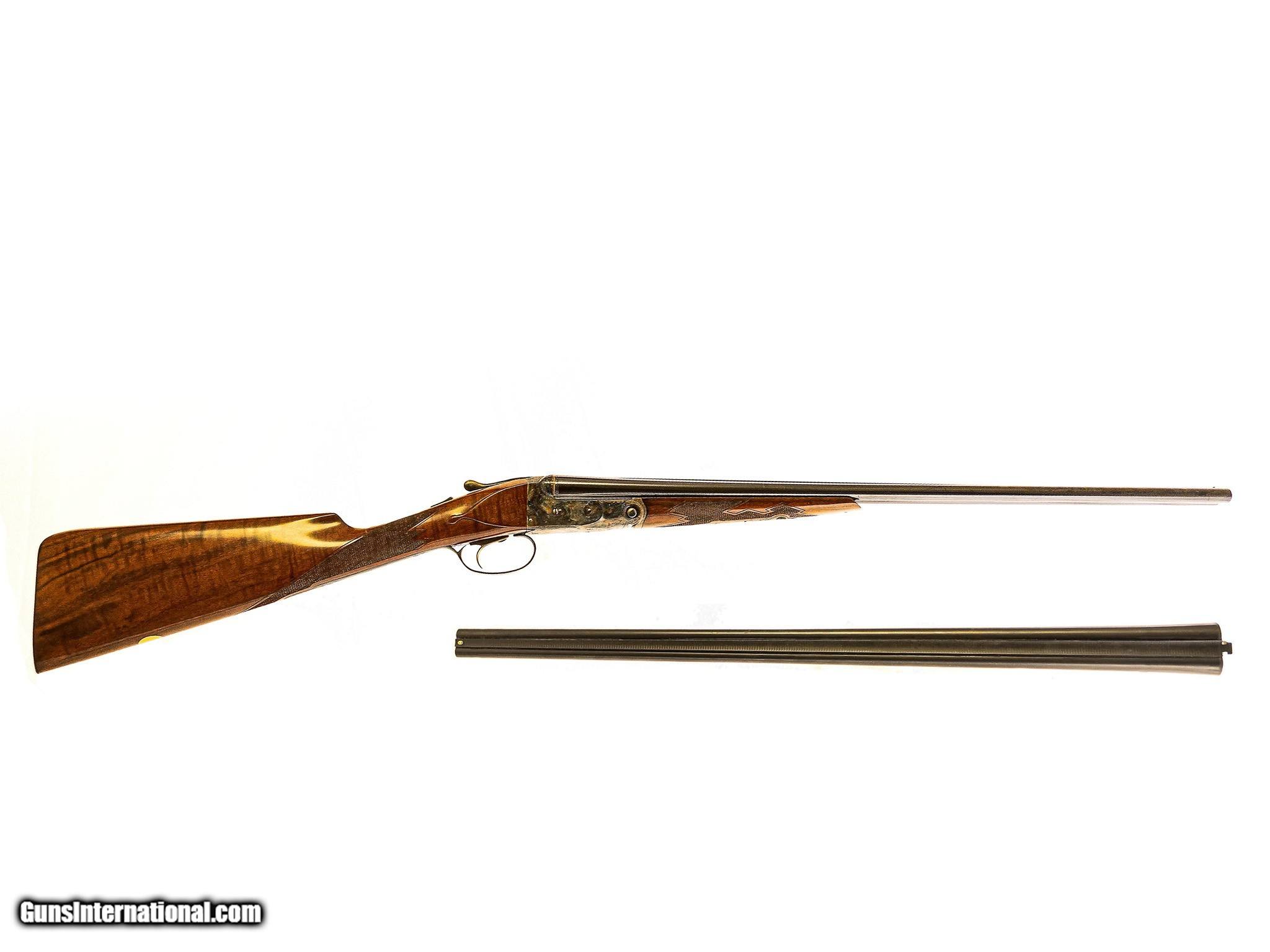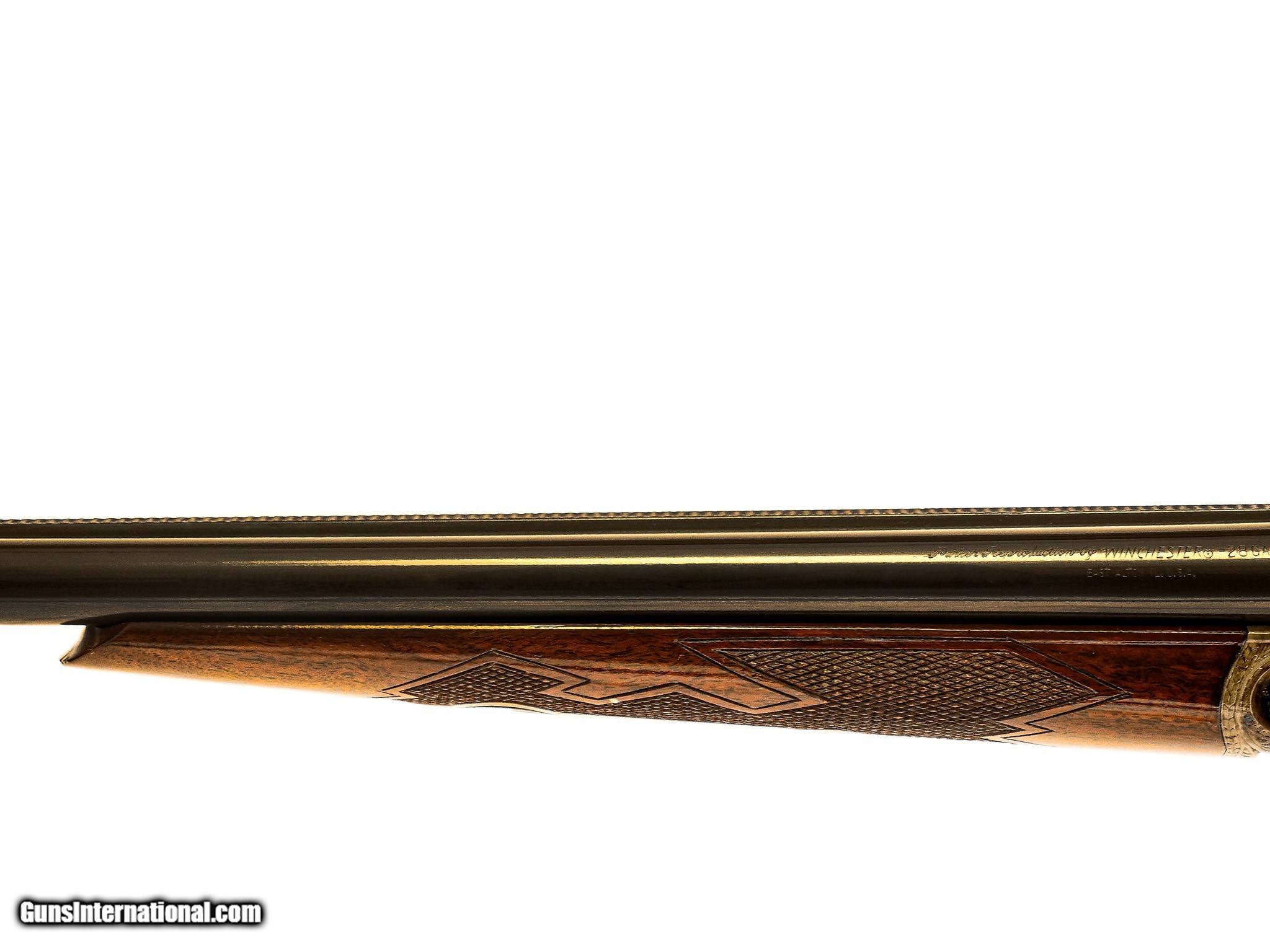 Description: Parker Reproduction - DHE Grade, SxS, Two Barrel Set, .410/28ga. 28" M/IC & 26" M/IC. .410 has 28" Barrels Choked M/IC and 28ga has 26" Barrels Choked M/IC, straight grip, single selective trigger, skeleton butt, one splinter forend fits both barrels, 100% case color, 100% barrel blue, 100% wood finish. Brand new gun, we believe it to be unfired. Inv: 65610 $13,995.00 SOLD |