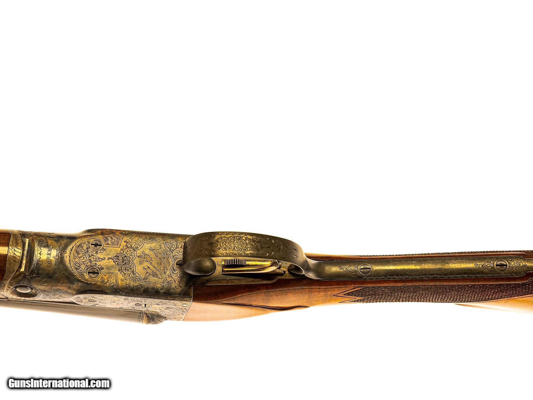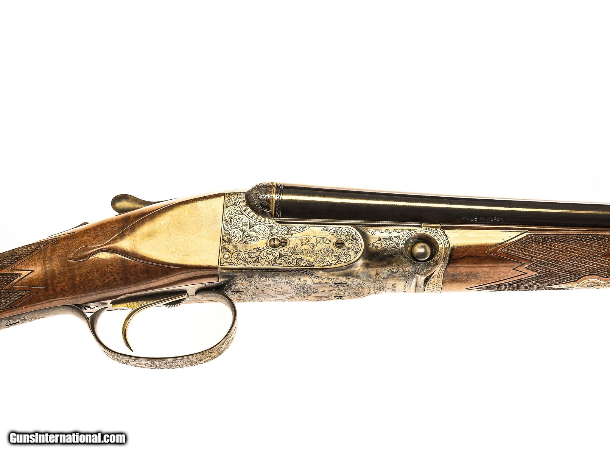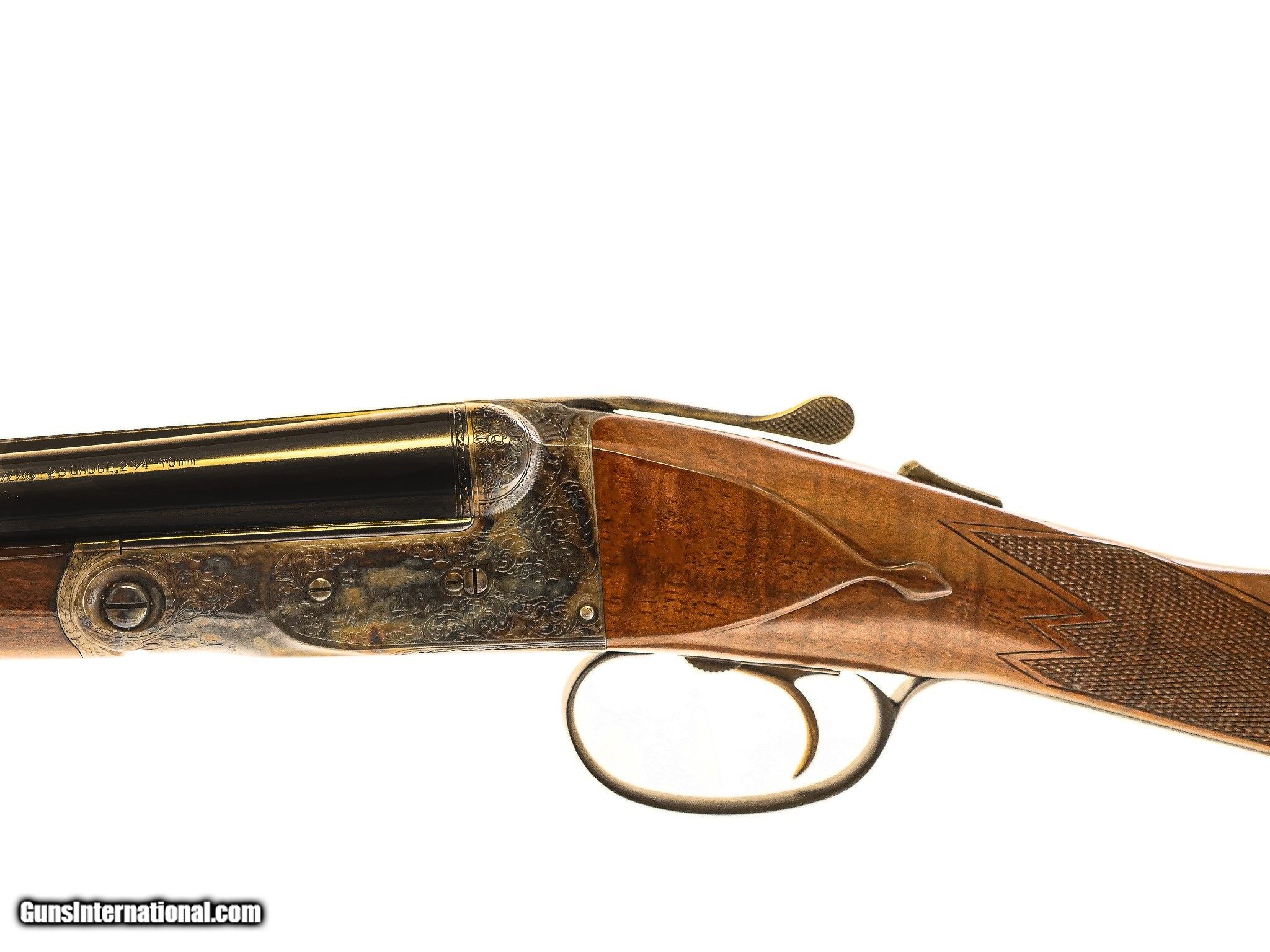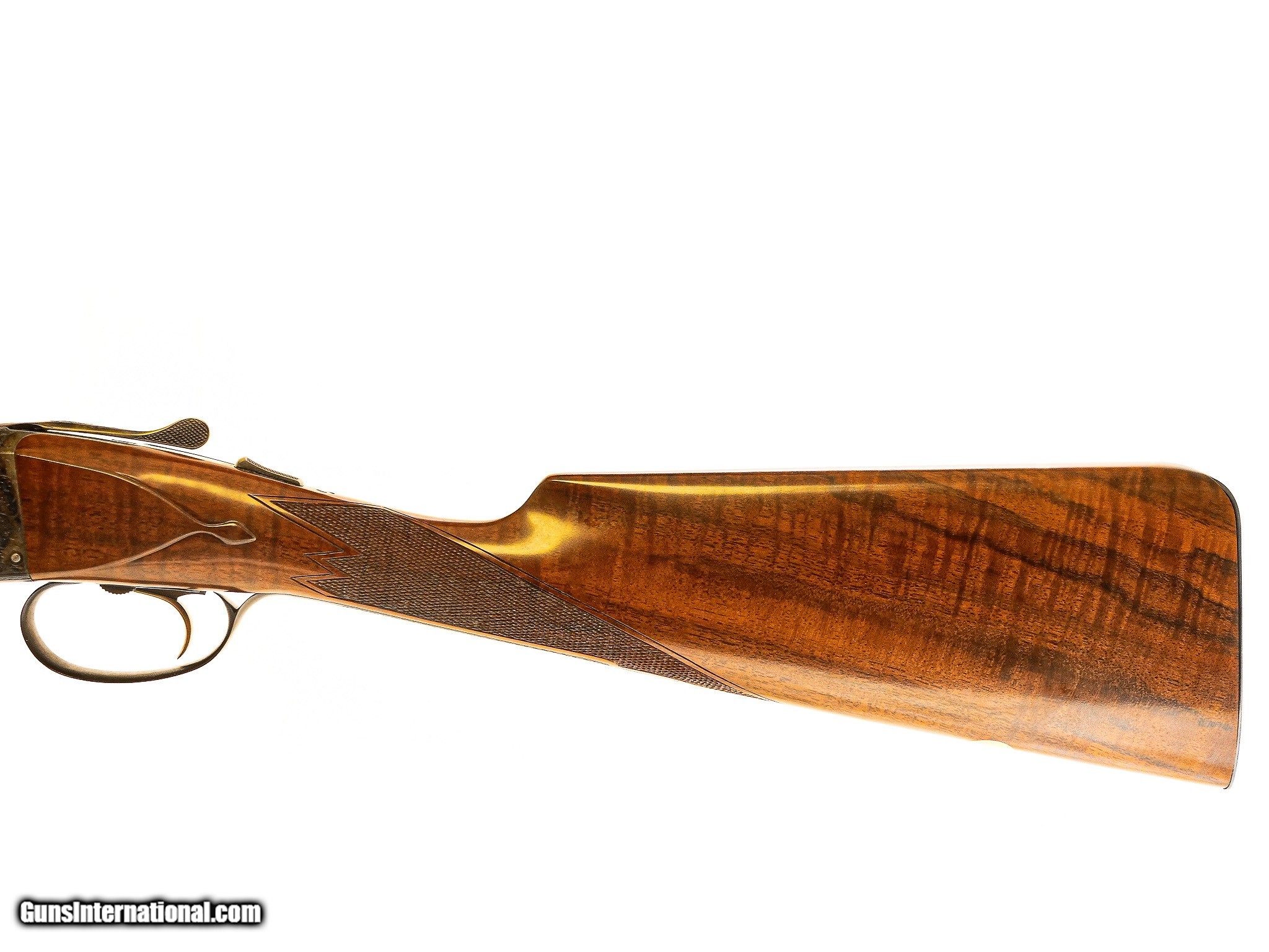 Description: Parker Reproduction - DHE Grade, SxS, Two Barrel Set, .410/28ga. 28" M/IC & 26" M/IC. .410 has 28" Barrels Choked M/IC and 28ga has 26" Barrels Choked M/IC, straight grip, single selective trigger, skeleton butt, one splinter forend fits both barrels, 100% case color, 100% barrel blue, 100% wood finish. Brand new gun, we believe it to be unfired. Inv: 65610 $13,995.00 SOLD |