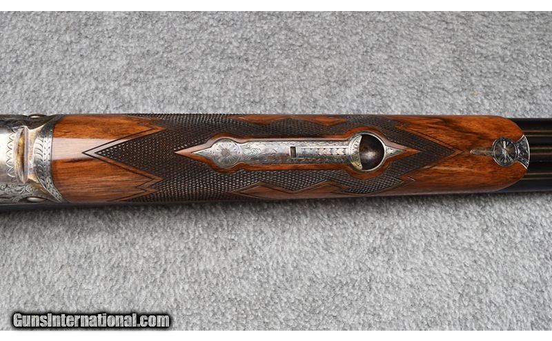Description: Manufactured by Winchester, this beautiful little Parker reproduction is in excellent condition. Beautifully figured wood is excellent throughout. Receiver and lower tang show wonderful case color. This shotgun has ejectors, fixed chokes and a splinter forend. Complete with leather case in canvas outer case! 28 Gauge SOLD Chambers: 2 3/4 Metal Condition: Excellent Wood Condition: Excellent Bore Condition: Excellent Barrels: 28" Solid Rib Triggers: Two Factory Triggers Stock Dimensions: 14 3/4" LOP Fore End: Checkered Walnut Forend ~ Checkered Walnut Straight Grip Butt Pad: Checkered Skeleton Butt Plate Weight: 5 1/2 lbs Sights: Single Front Bead Chokes: Full - Modified - Fixed Item Location: Wheeling |