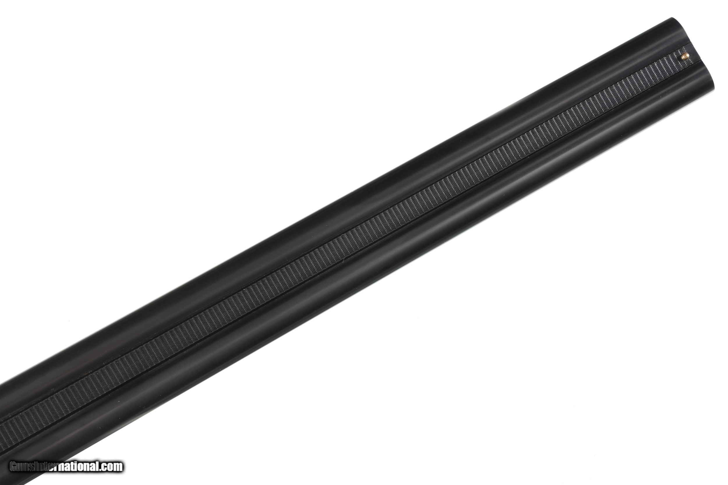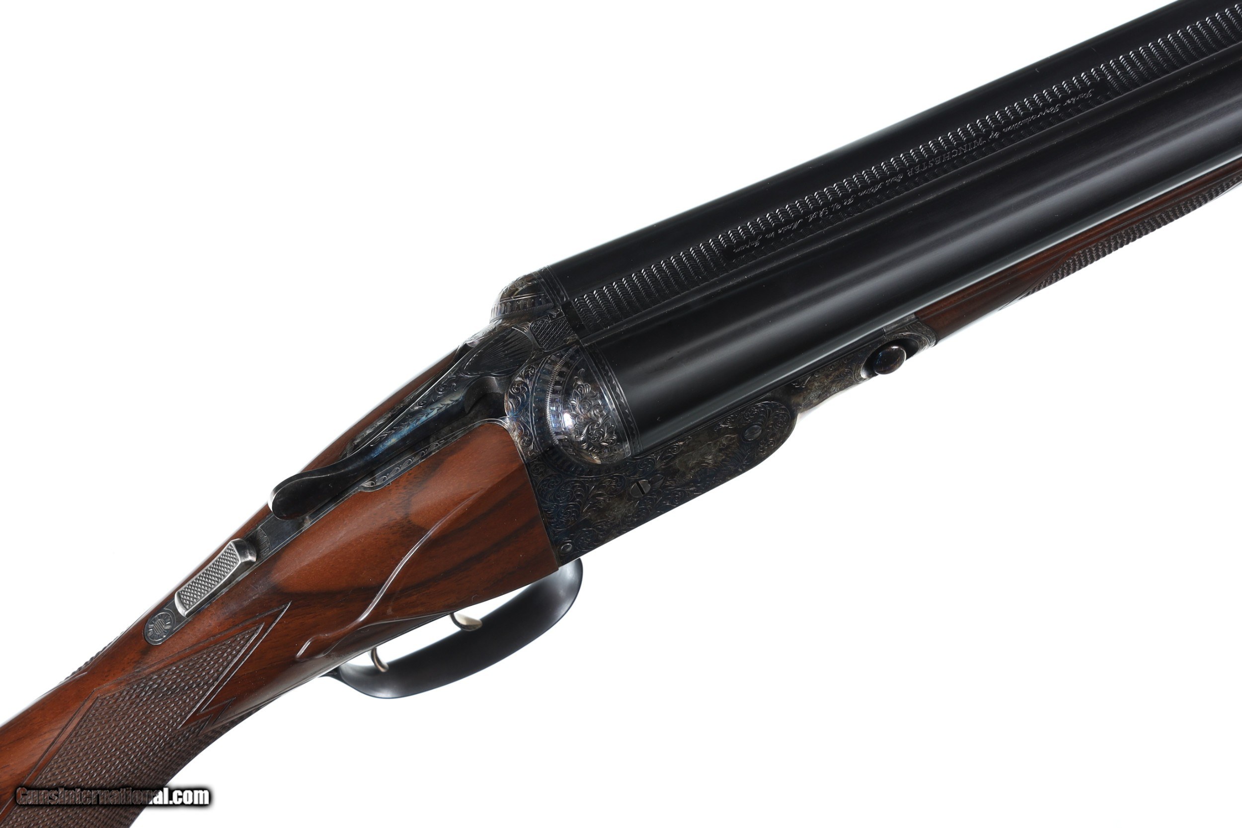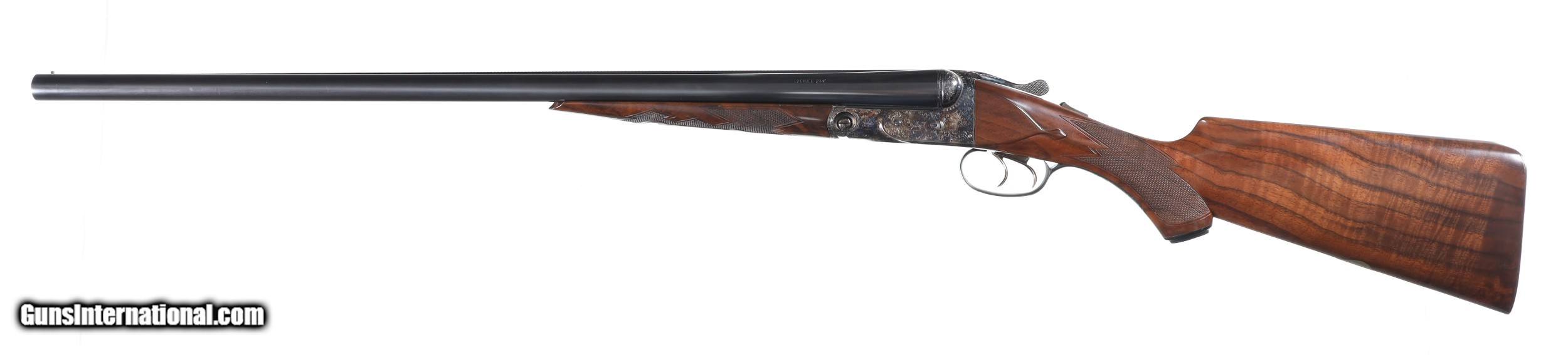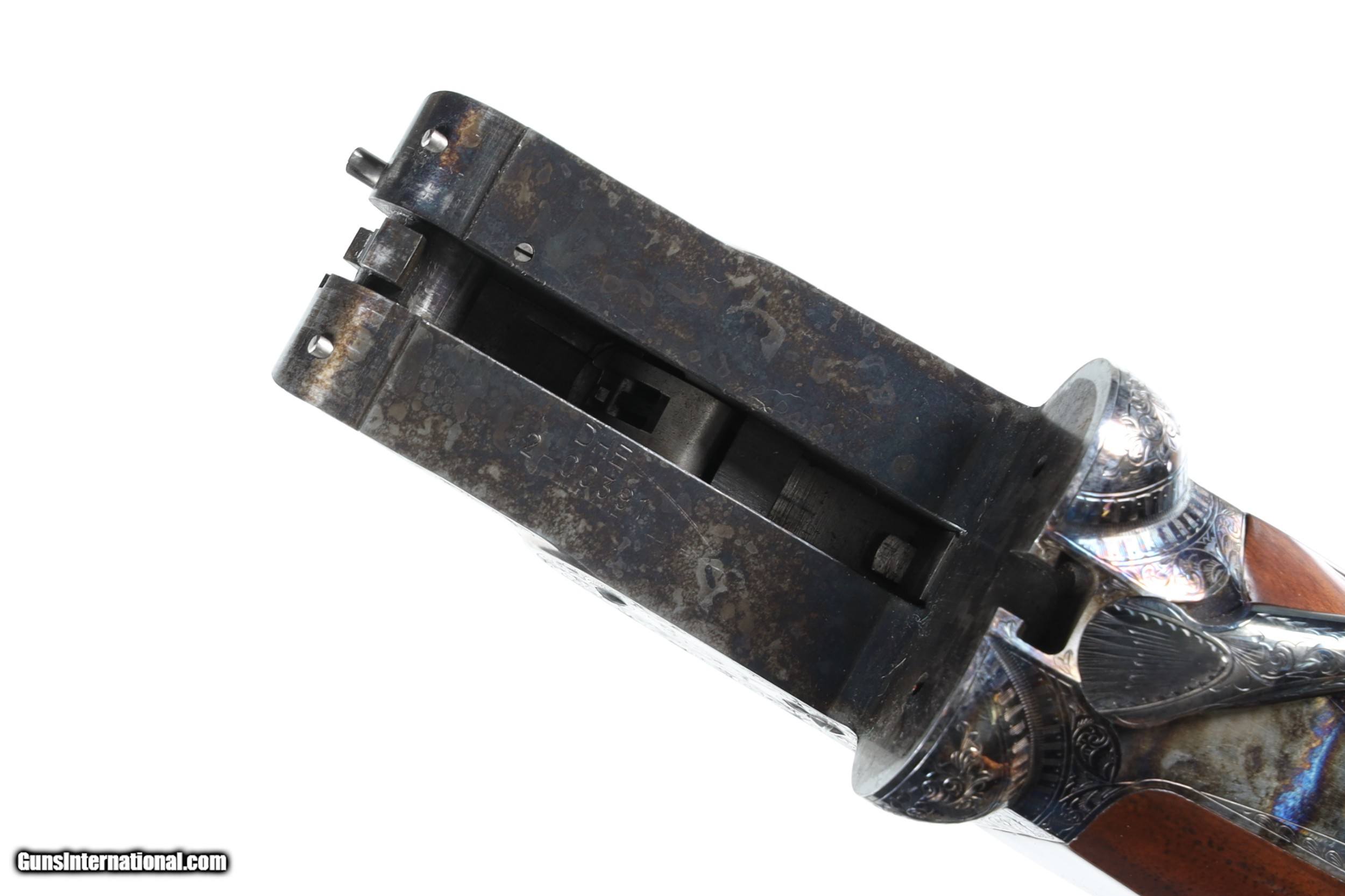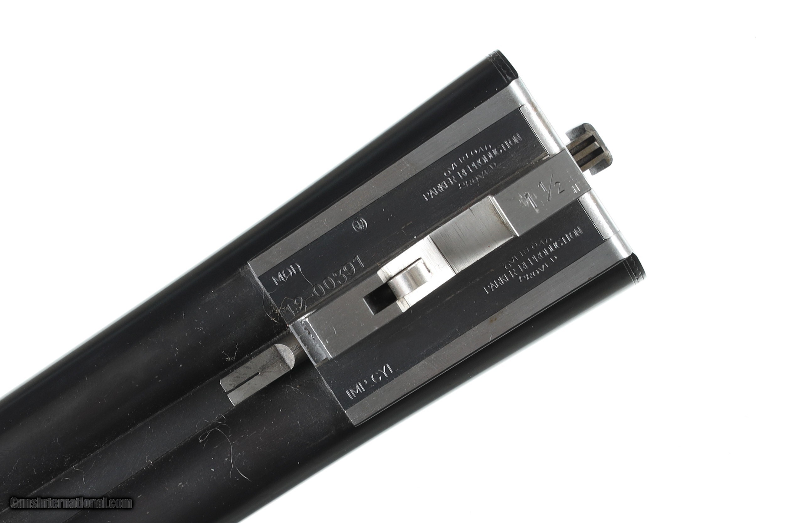 Description: Factory Engraved Winchester Parker Reproduction DHE Grade, Manufactured between 1983 and 1989 as a faithful reproduction of the beloved Parker shotgun, this is one of only 1,500 built in 12 gauge according to page 180 of "The Parker Story" by Gunther, Mullins, Parker, Price, and Cote. Single brass bead sight on the solid matte rib, 2 3/4 inch chambers with ejectors, and chokes marked "IMP.CYL"/"MOD". The casehardened receiver shows the standard DHE grade engraving of hunting dogs on either side and a covey of pheasants on the underside along with "PARKER". The gun features double triggers and automatic tang mounted safety switch. Beautifully figured, multi-point checkered walnut splinter forearm with engraved fittings including the Deeley latch release and pistol grip stock with carved flats, blank inscription oval, and engraved skeletonized buttplate around checkered bare butt. Includes leather takedown case with canvas cover and nickel snap caps. Barrel and stock measurements (R/L): bore diameters measured nine inches from the breech .735/.735 inches; choke constriction .007/.011 inches; minimum wall thickness .026/.027 inches; 1 5/16 inch drop at comb; 2 1/16 inch drop at heel; 14 13/16 inch length of pull; weight 6 lbs 9 oz. Excellent Plus conditon. • Free Shipping, No Credit Card Fees. • Lay-a-way available for this firearm. • 1/3 Down, a 1/3 in 30 Days 1/3 in 60 Days. SOLD Manufacturer: Parker Reproduction Model: DHE Serial Number: 12-00391 Barrel Length: 26 |