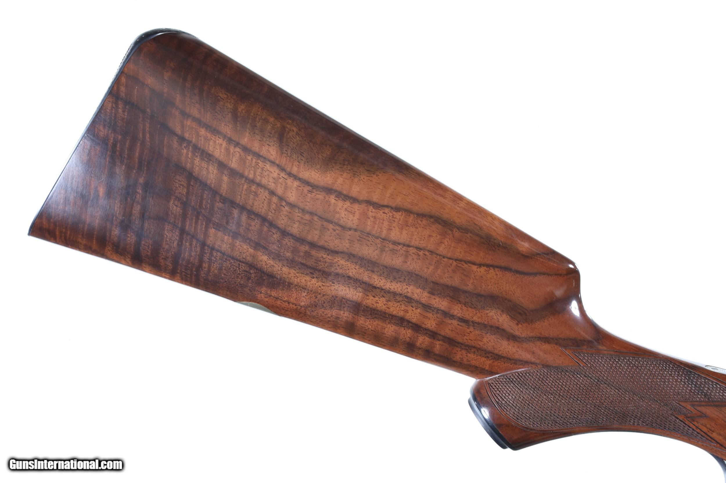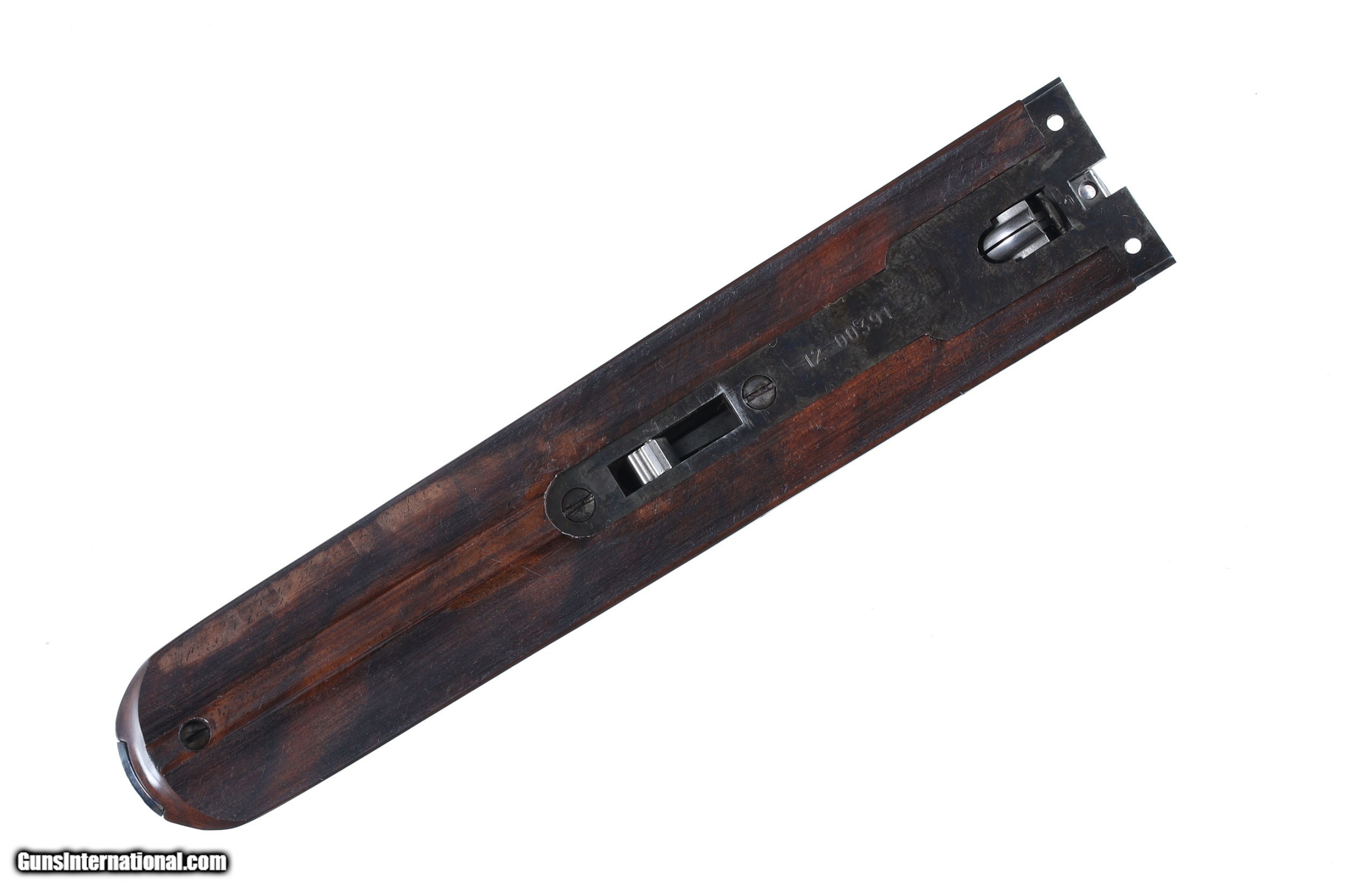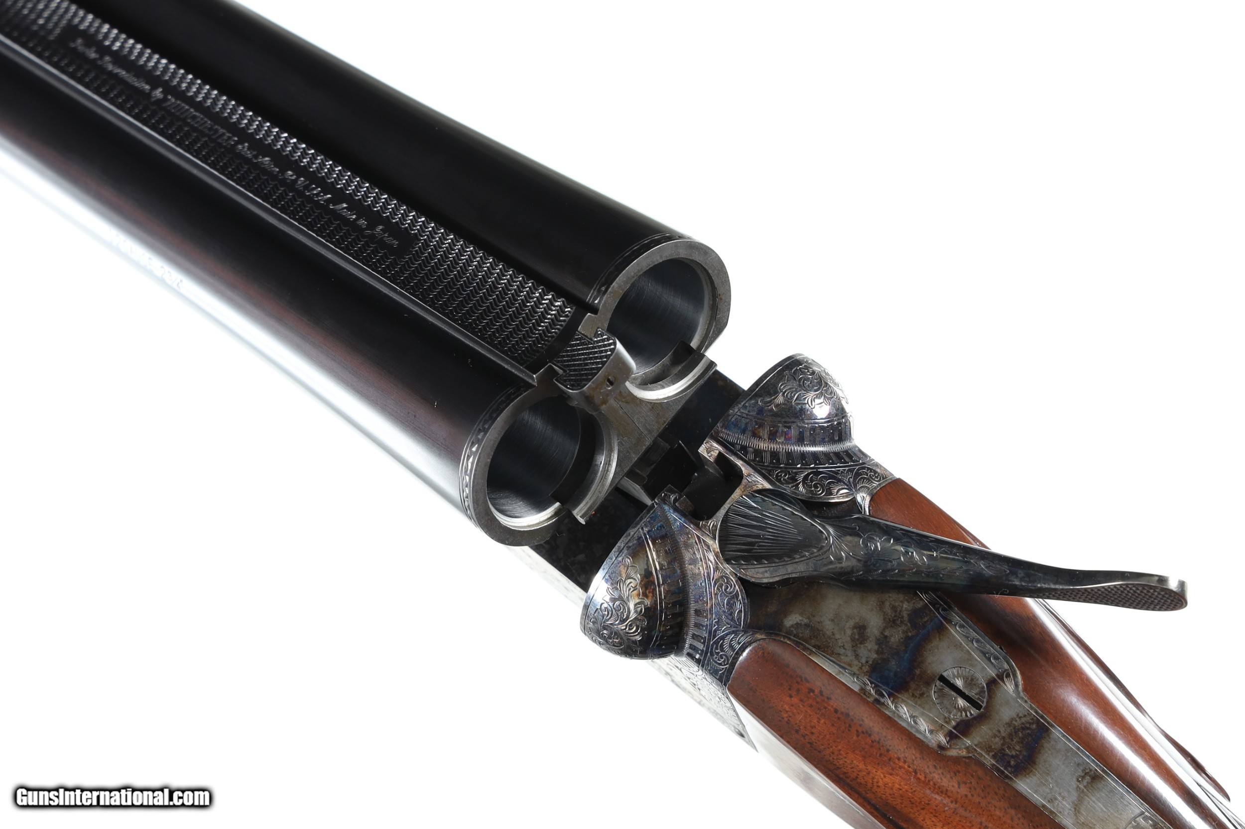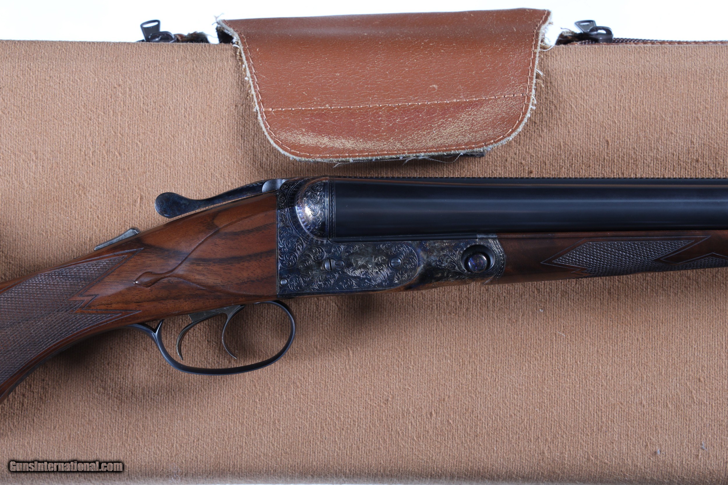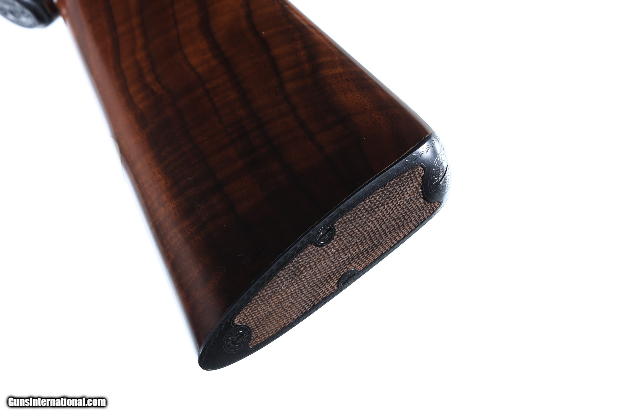Description: Factory Engraved Winchester Parker Reproduction DHE Grade, Manufactured between 1983 and 1989 as a faithful reproduction of the beloved Parker shotgun, this is one of only 1,500 built in 12 gauge according to page 180 of "The Parker Story" by Gunther, Mullins, Parker, Price, and Cote. Single brass bead sight on the solid matte rib, 2 3/4 inch chambers with ejectors, and chokes marked "IMP.CYL"/"MOD". The casehardened receiver shows the standard DHE grade engraving of hunting dogs on either side and a covey of pheasants on the underside along with "PARKER". The gun features double triggers and automatic tang mounted safety switch. Beautifully figured, multi-point checkered walnut splinter forearm with engraved fittings including the Deeley latch release and pistol grip stock with carved flats, blank inscription oval, and engraved skeletonized buttplate around checkered bare butt. Includes leather takedown case with canvas cover and nickel snap caps. Barrel and stock measurements (R/L): bore diameters measured nine inches from the breech .735/.735 inches; choke constriction .007/.011 inches; minimum wall thickness .026/.027 inches; 1 5/16 inch drop at comb; 2 1/16 inch drop at heel; 14 13/16 inch length of pull; weight 6 lbs 9 oz. Excellent Plus conditon. • Free Shipping, No Credit Card Fees. • Lay-a-way available for this firearm. • 1/3 Down, a 1/3 in 30 Days 1/3 in 60 Days. SOLD Manufacturer: Parker Reproduction Model: DHE Serial Number: 12-00391 Barrel Length: 26 |