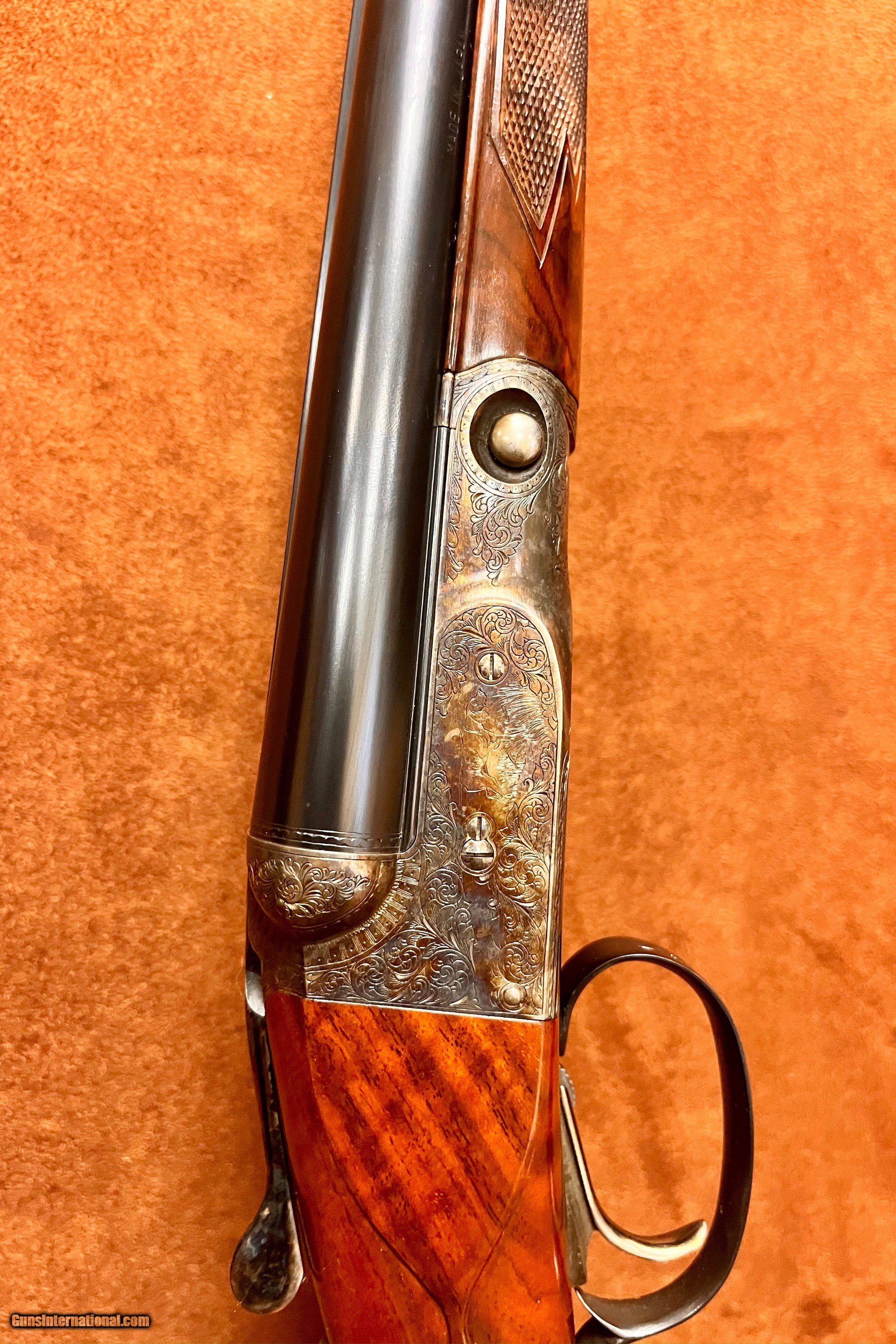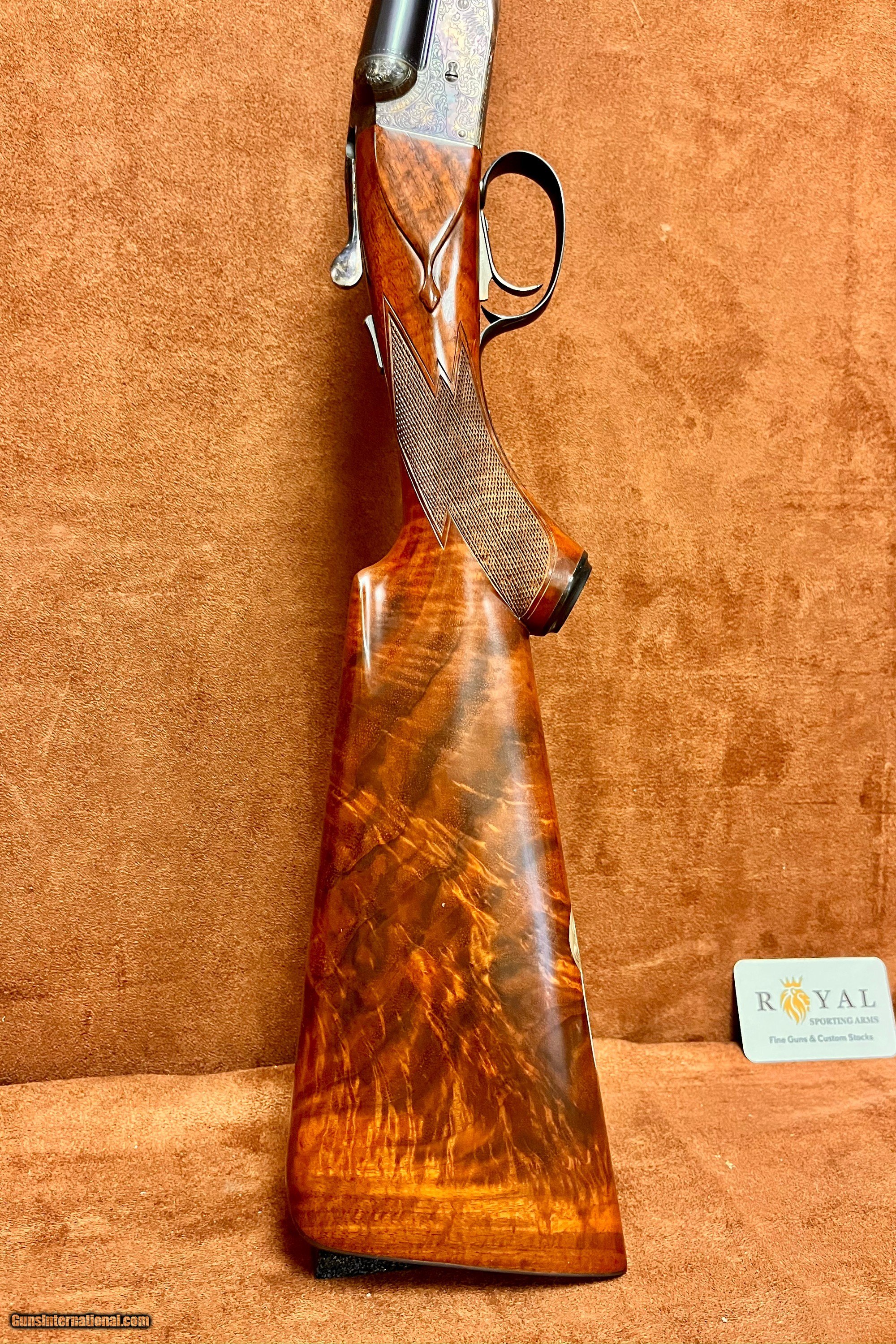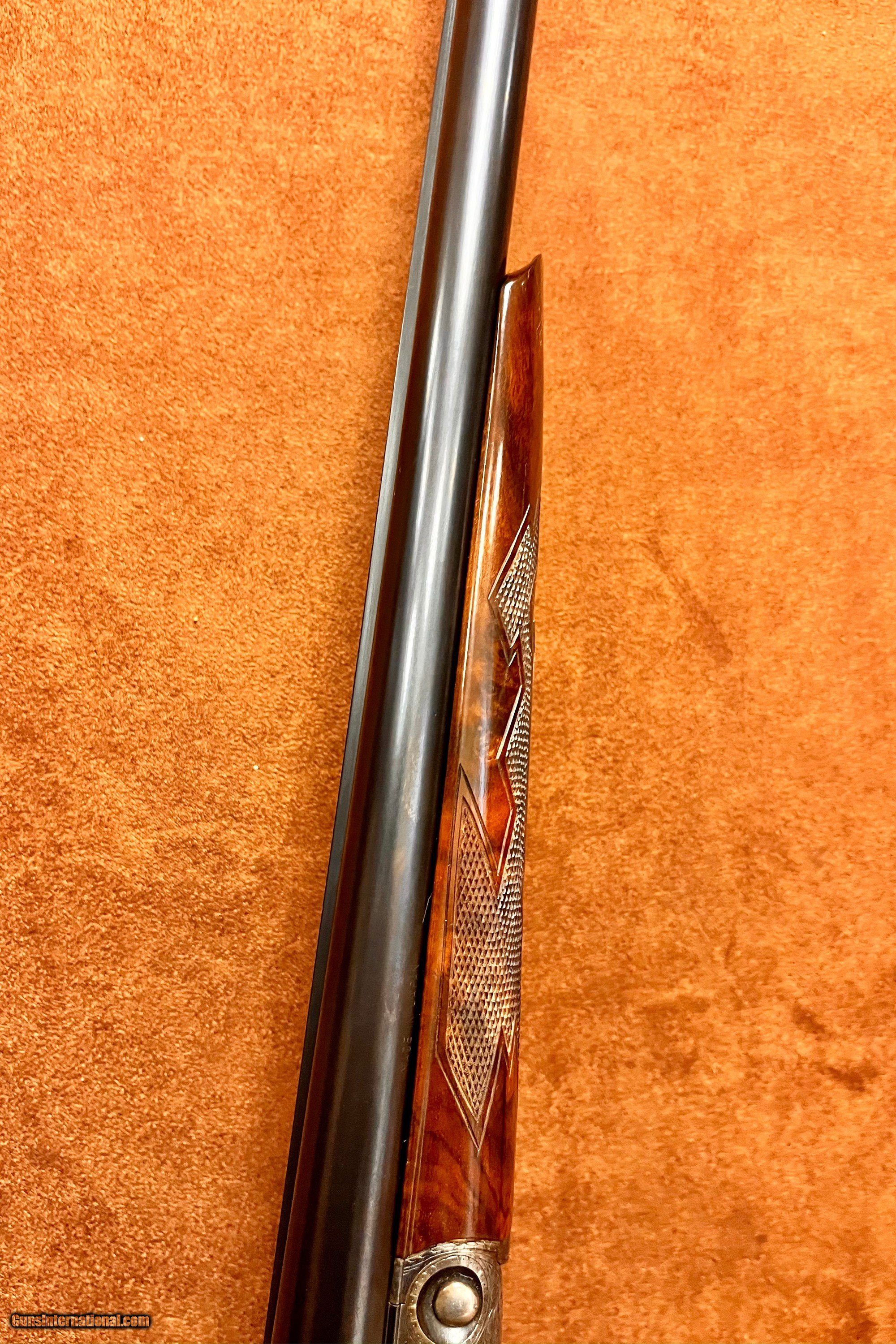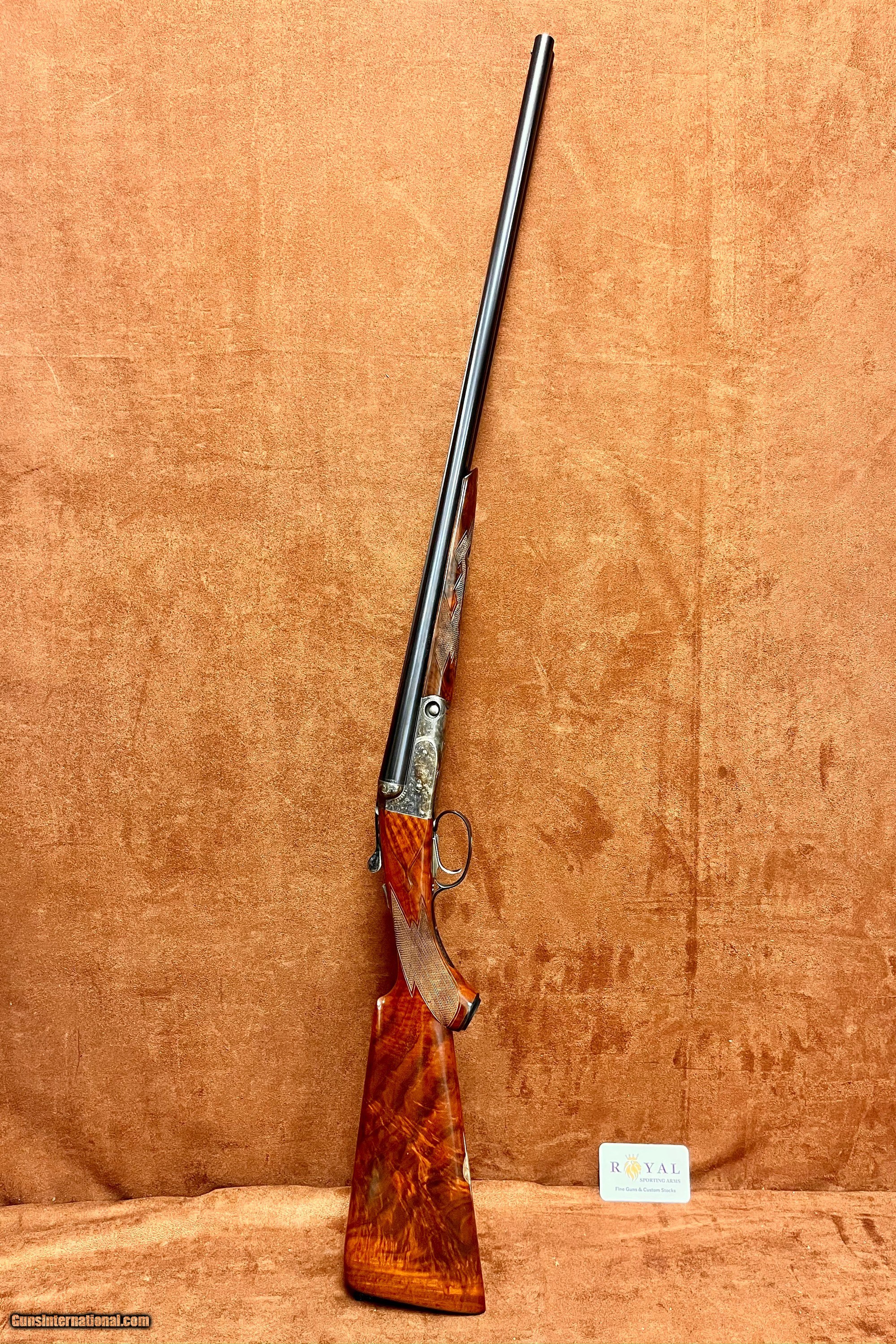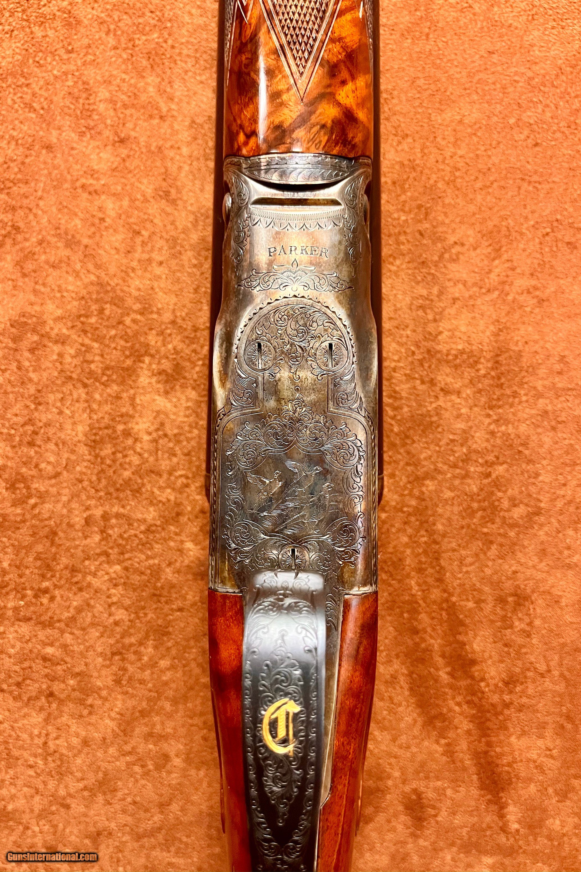 Description: JUST IN AT ROYAL SPORTING ARMS!!! Parker Reproduction DHE 20ga 26" with exhibition grade stock in pristine as new condition. Completely hand engraved, featuring stunning full coverage, ornamental-style scroll and game scenes, engraved tang, striking exhibition grade stock and a spectacular color case hardened reciever. This gun is in spectacular like new condition and it's ready for the field! 20ga 26" Barrel Color case hardening upgrade IC/LM Chokes (.011 x .018) LOP: 14 1/8" DAC: 1.5" DAH: 2.25" Cast off 1/8" Weight: 6lbs 10oz Leather Case with canvas cover in as new condition Year of mfg. Ca 1983/1989 Wall thickness: .032x.033 Int dia: 6/8 x 6/8 Long tang and engraved end cap Elegant engraving featuring a dog on the sides, and pheasants on the bottom. This elegantly engraved and color case haredened side by side is a true work of art, extremely dynamic and nimble, and dominates in the field. This Purpose built Parker repro is a joy to carry and points exceptionally well to it's target , a true representation of what a top tier Parker rep. is supposed to be. Delivered in leather and canvas Breakdown luggage case. To purchase please CALL OR TEXT 954-676-0714 SOLD Shotgun Gauge: 20 Gauge |