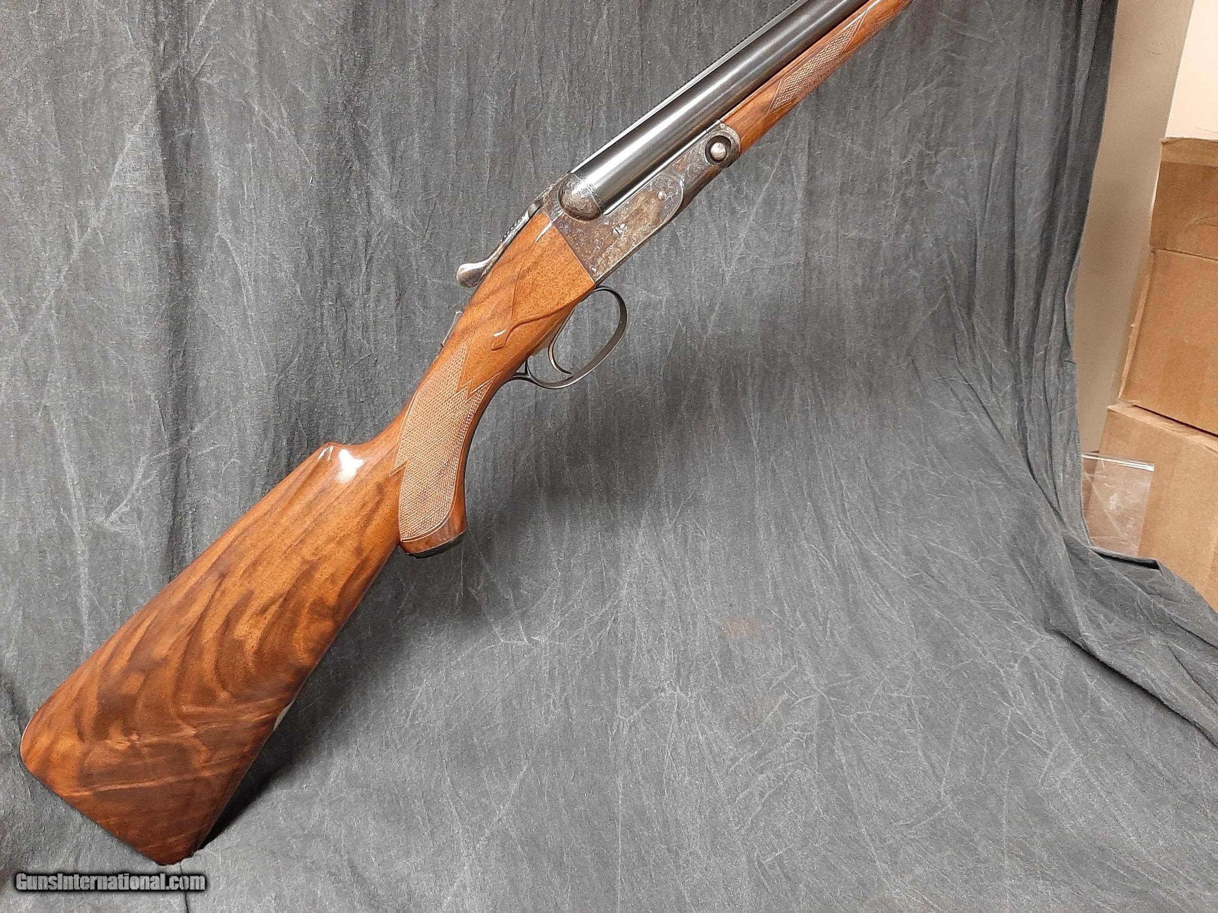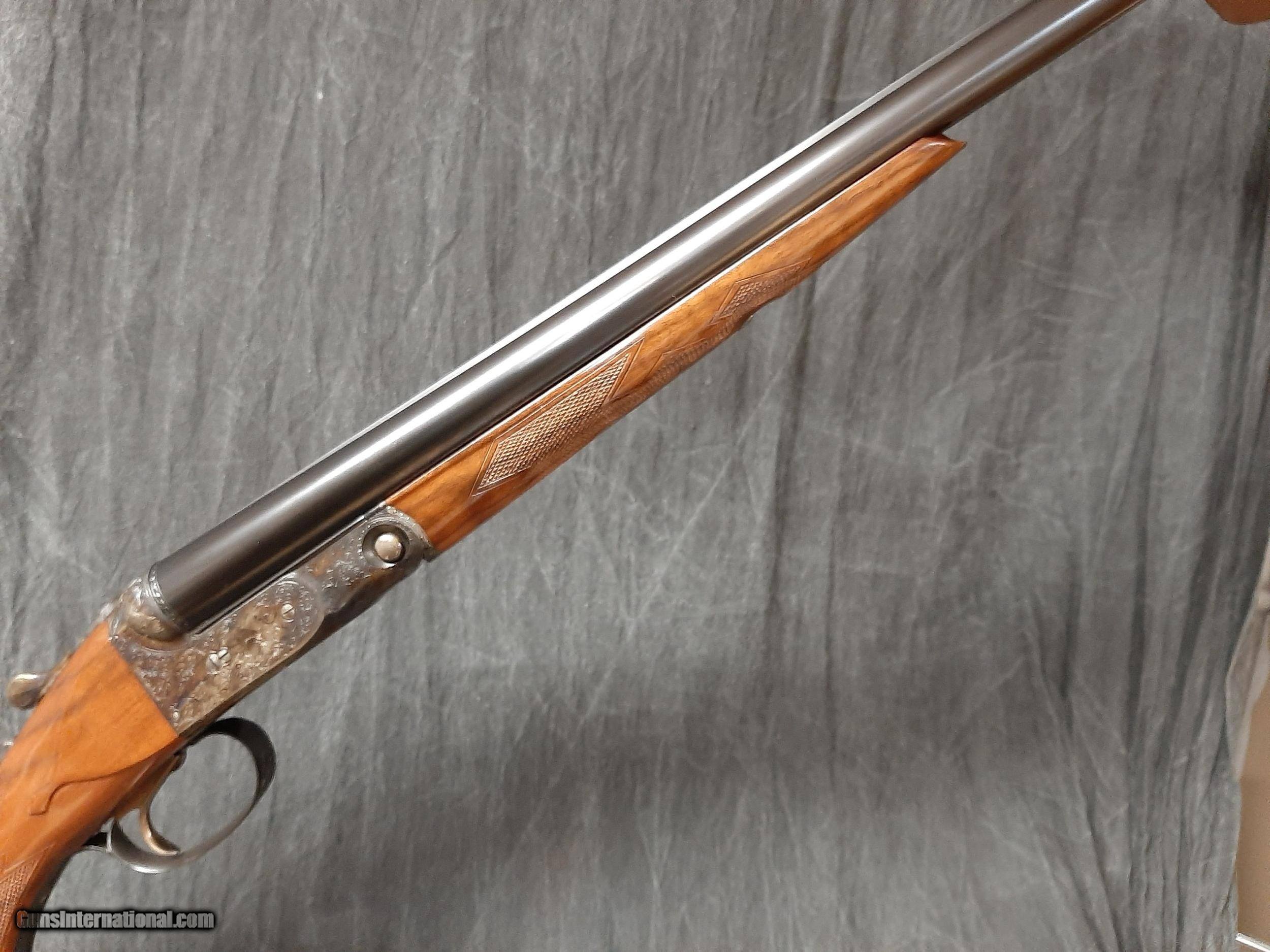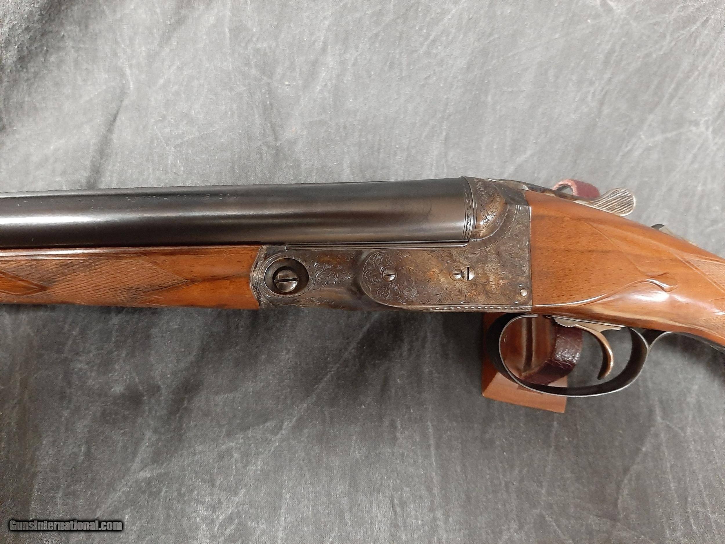 Description: Maker:PARKER REPRODUCTION Model:DHE Gauge/Caliber:20 GA Barrel Length:26" Chambers:2 3/4" Rib Design:FILED, CONCAVE Weight:6lbs 7oz. Bore/Chokes Right/Bottom:.619/ .012 IC Left/Top:.619/ .020 MOD Stock Dimensions Drop At Comb:1 7/16" Drop At Face:1 13/16" 4 1/2" Drop At Heel:2 1/4" Cast At Face:1/8" OFF 4 1/2" Cast At Heel:1/8" OFF Length Of Pull:14 1/4" Pitch:2 1/2" / 5 DEGREES Special Features: MADE BY WINCHESTER CASE HARDENED GAME SCENE & SCROLL DHE PATTERN ENGRAVED SINGLE SELECTIVE TRIGGER EJECTORS WELL FIGURED PISTOL GRIP STOCK W/ SKELETON BUTT PLATE SPLINTER FOREARM AUTO SAFETY MAKERS LC VC CASE Circa:SERIAL # 20-4075 Number:C8872 Price:$ 6495 SOLD |