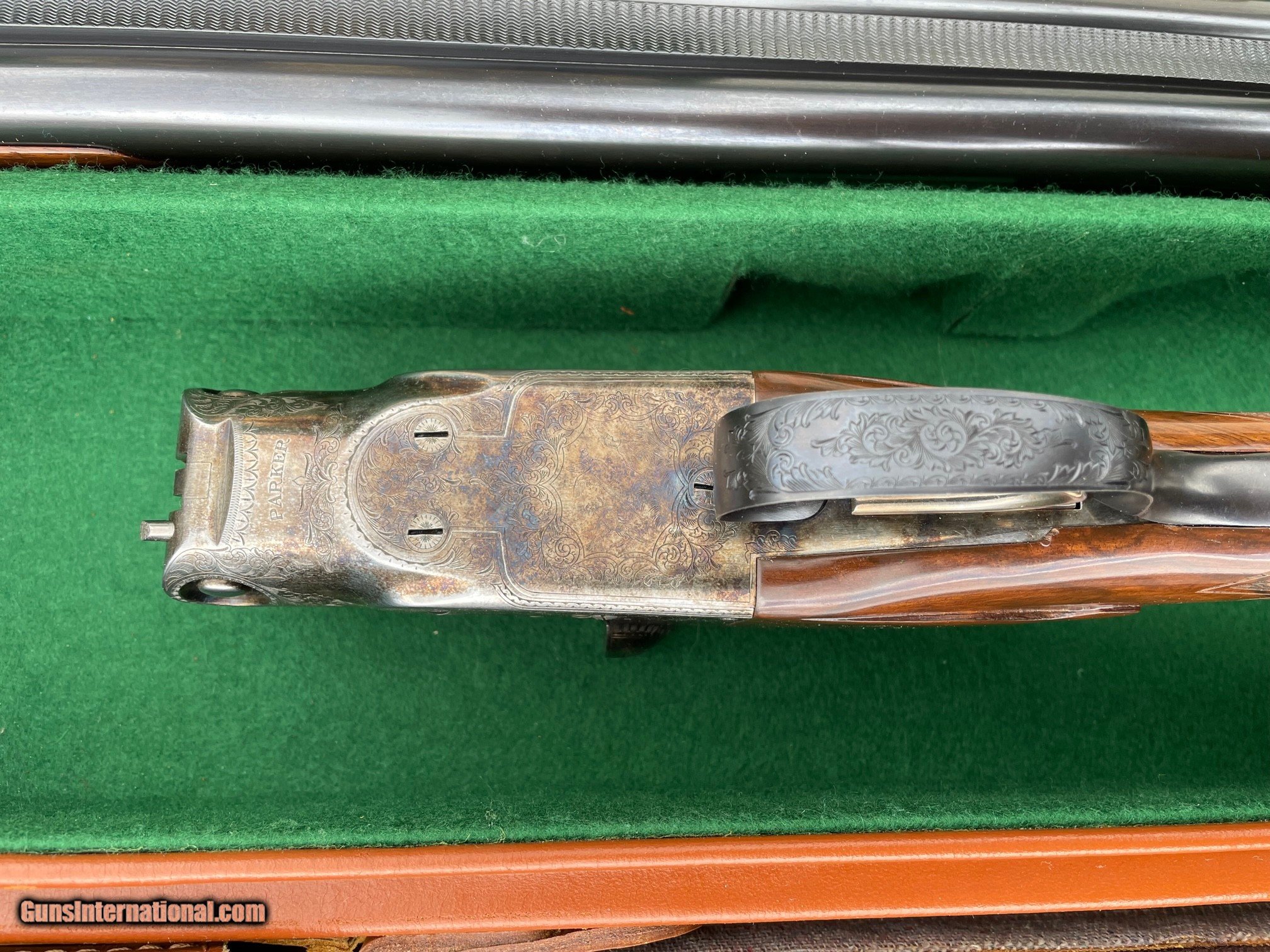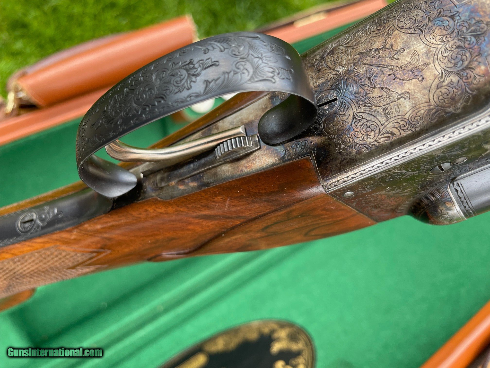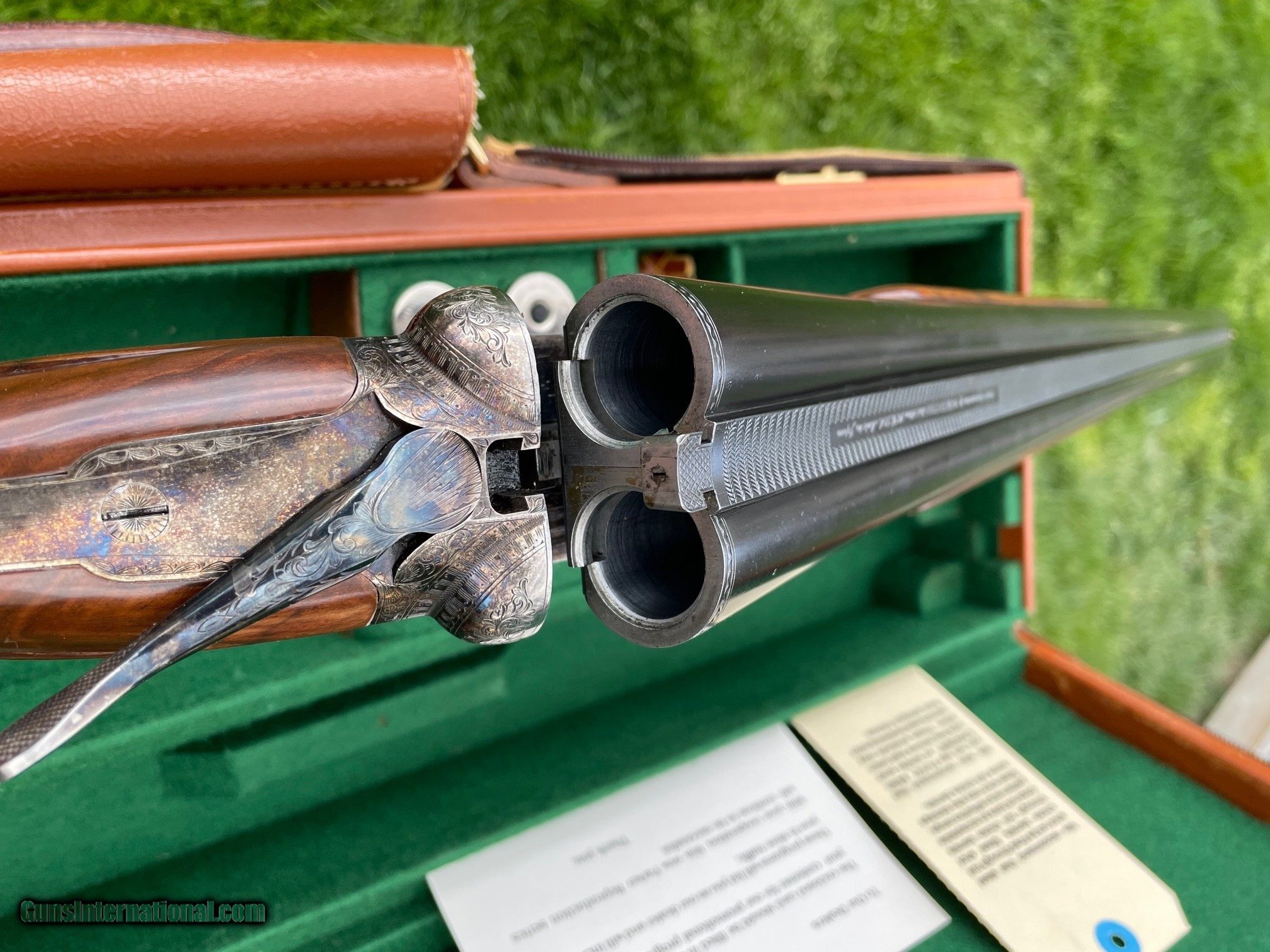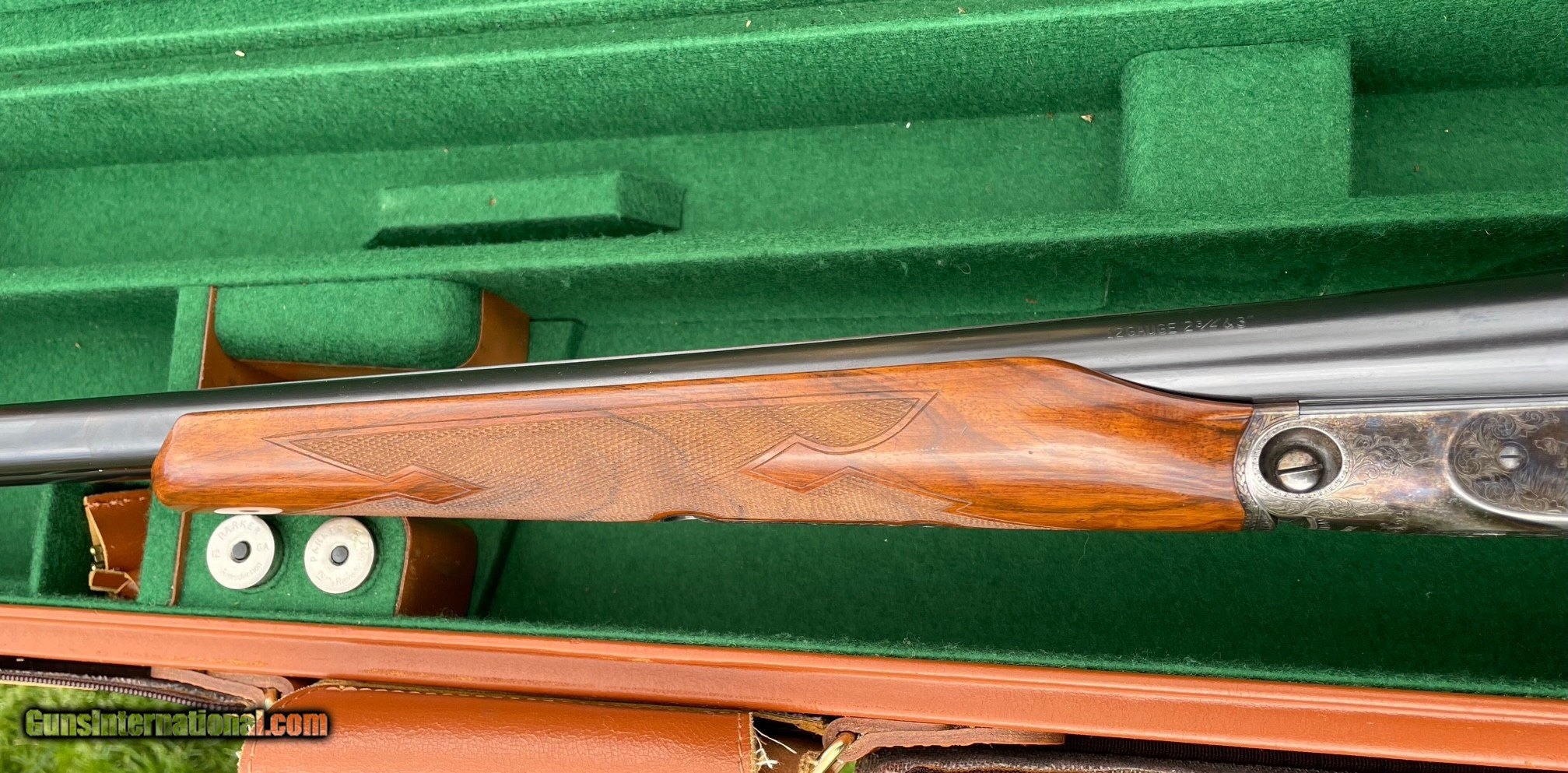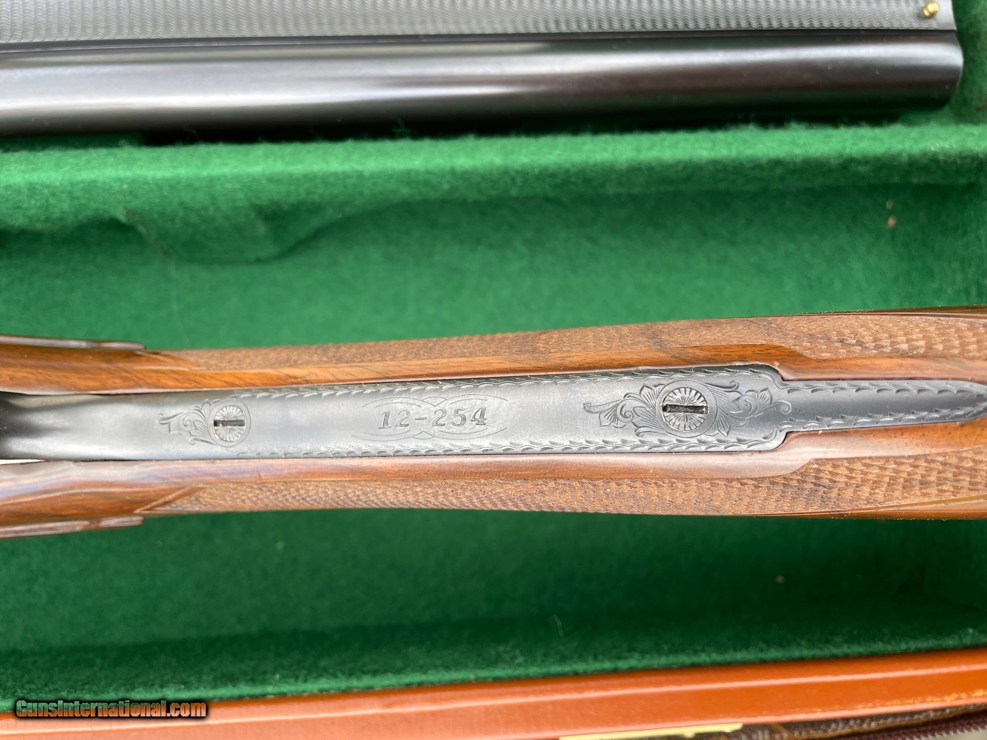 Description: Parker Reproduction Steel Shot Special SxS 12 gauge DHE 28" shotgun. English straight grip. Single selective trigger. Skeleton butt plate. 14 3/16" LOP, 1 3/8" drop at comb, 2 1/8" drop at heel. Very slight cast off. MOD and IMP CYL. 3" chamber. Very good condition with light handling marks. Original tags. Gun comes with leather case and canvas cover. This will make a nice piece to a collection! Ships to your FFL $50. in Continetal US. Insurance available. SOLD SOLD |