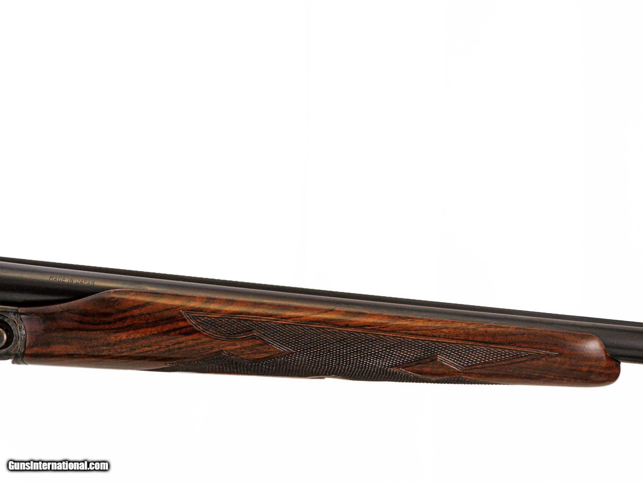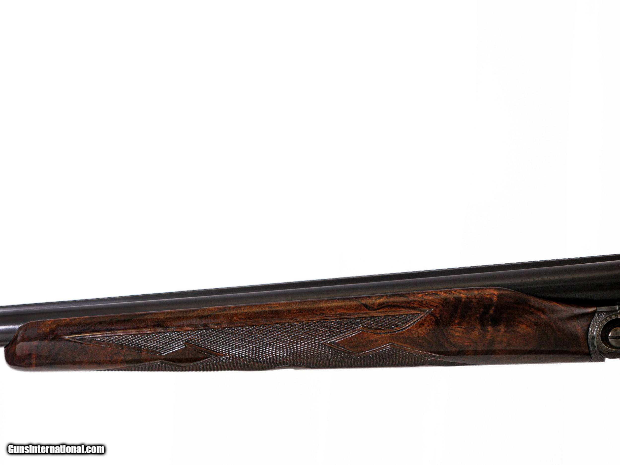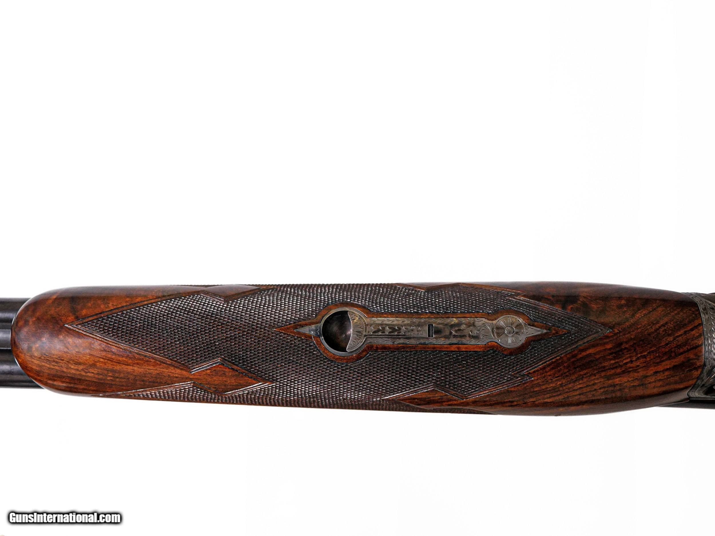 Description: Parker Reproductions - DHE, 28ga. 26” Barrels Choked IC/M. The most incredible exhibition grade Turkish circassian capped pistol grip stock, skeleton butt, beavertail forend, single selective trigger, auto ejectors, DHE engraving pattern, gold oval, 95% case coloring remaining, great condition throughout, stunning gun, cased, appears unfired, available for immediate delivery. Inv: 51296 5 lbs. 12 oz. 14 ¼” x 1 ½” x 2 ¼” $6,999.00 SOLD |