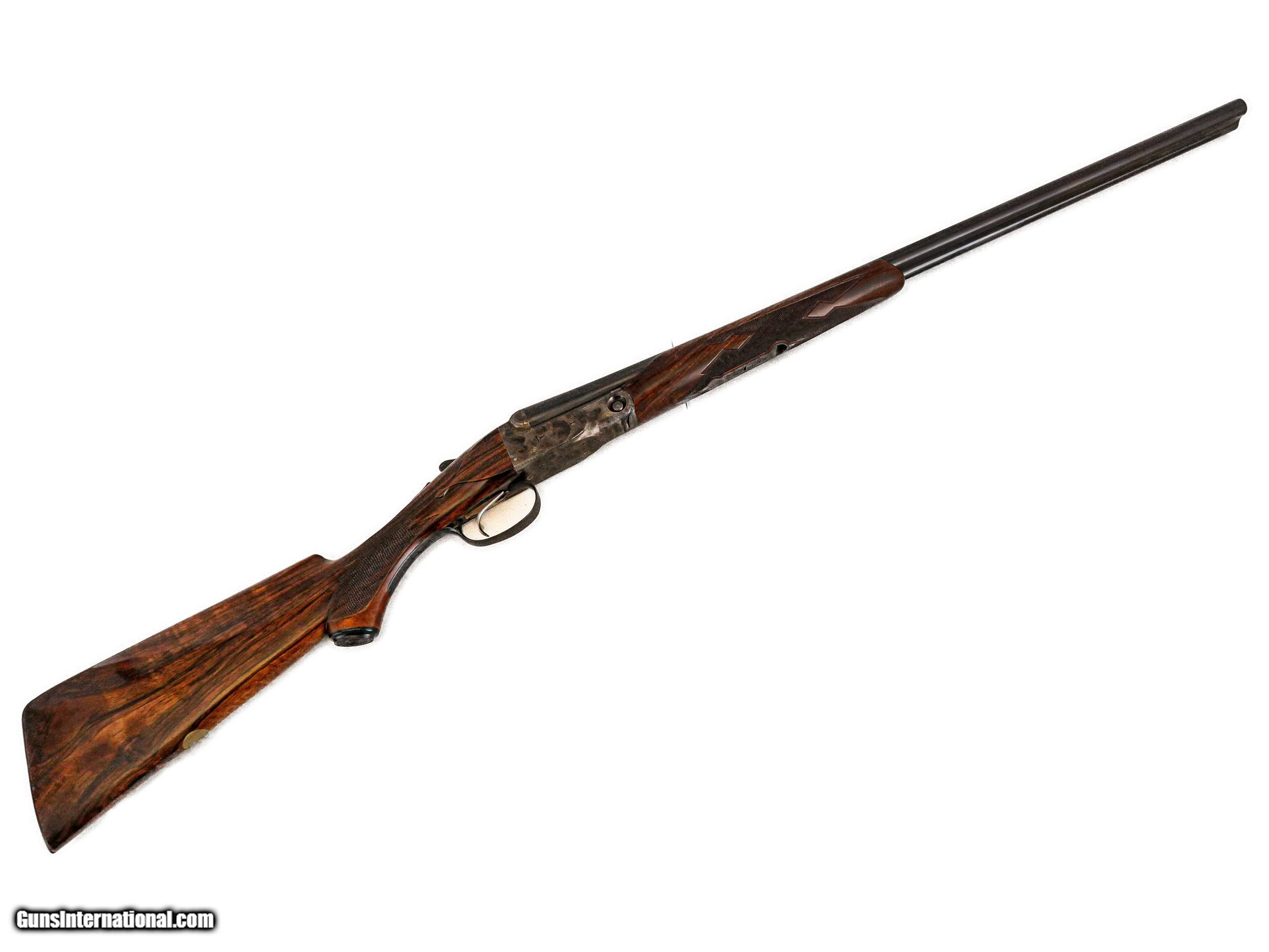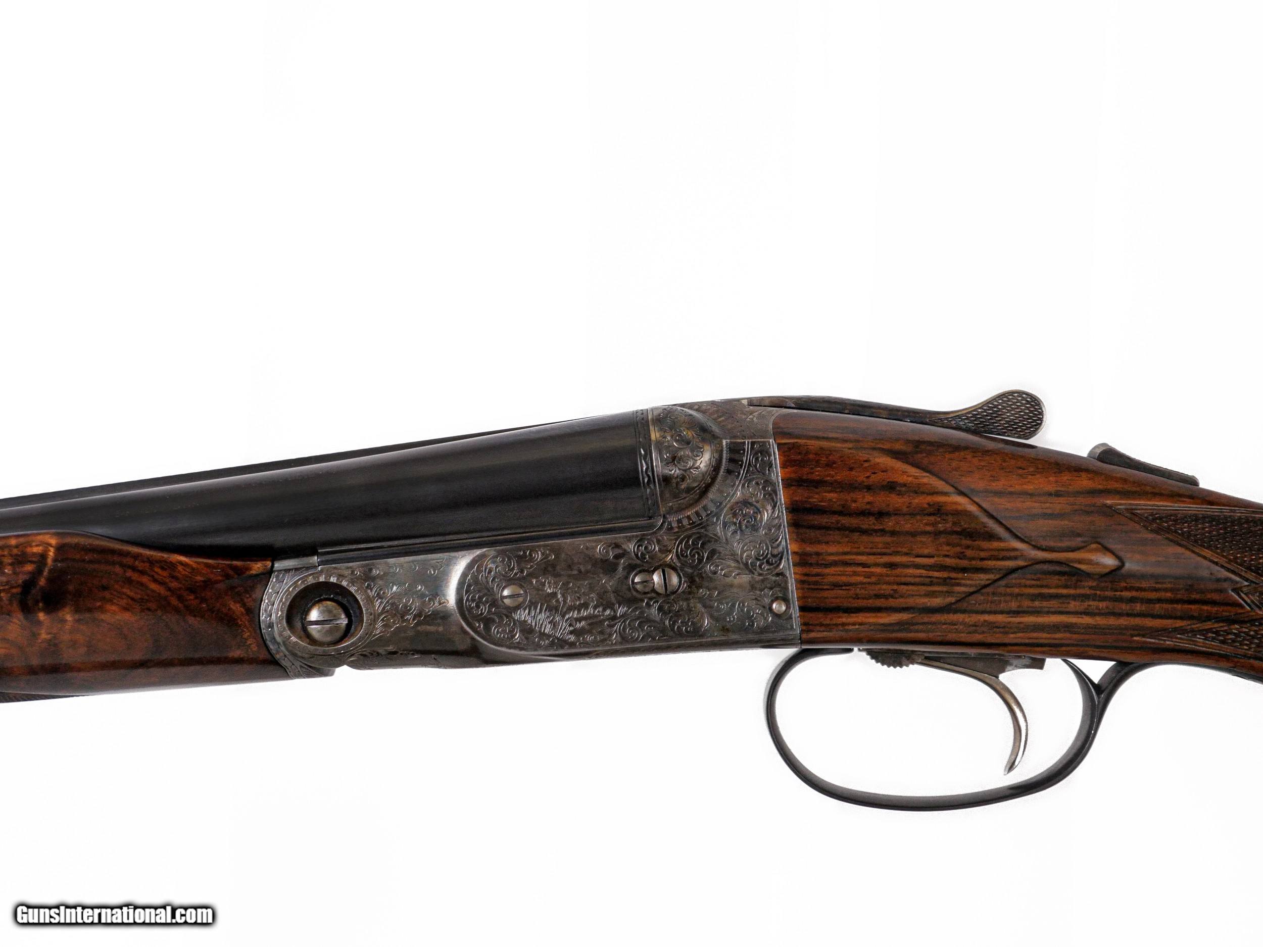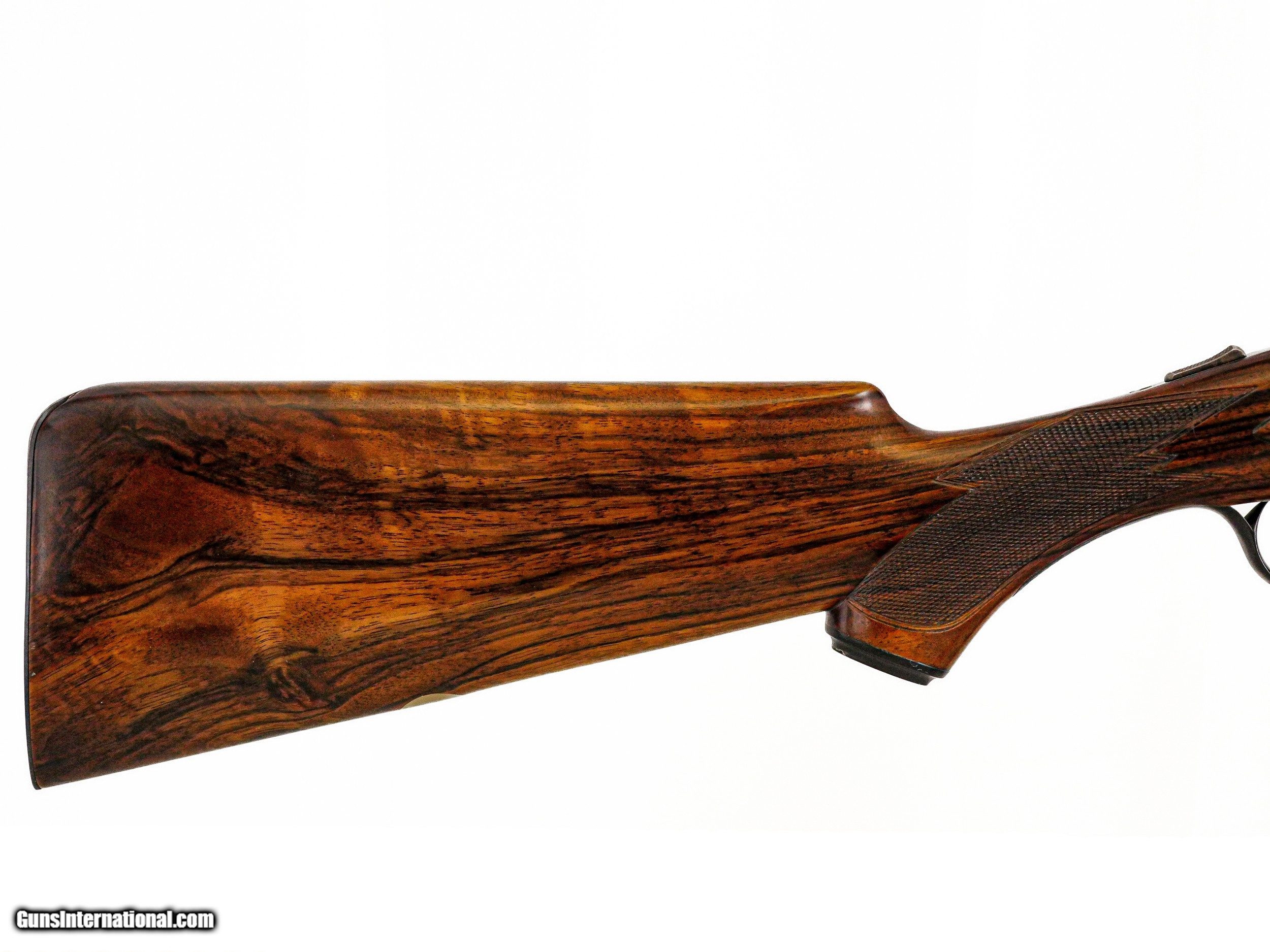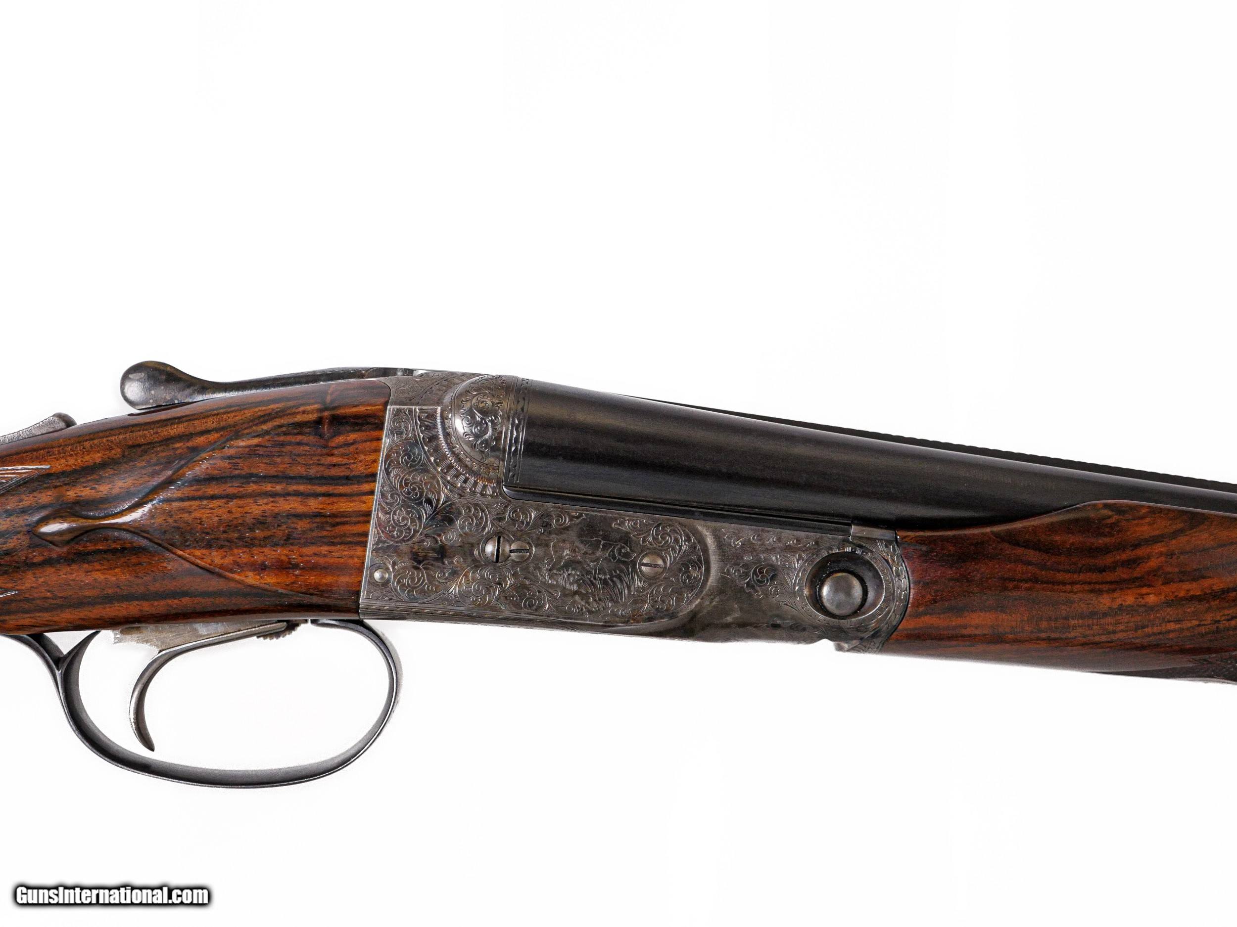 Description: Parker Reproductions - DHE, 28ga. 26” Barrels Choked IC/M. The most incredible exhibition grade Turkish circassian capped pistol grip stock, skeleton butt, beavertail forend, single selective trigger, auto ejectors, DHE engraving pattern, gold oval, 95% case coloring remaining, great condition throughout, stunning gun, cased, appears unfired, available for immediate delivery. Inv: 51296 5 lbs. 12 oz. 14 ¼” x 1 ½” x 2 ¼” $6,999.00 SOLD |