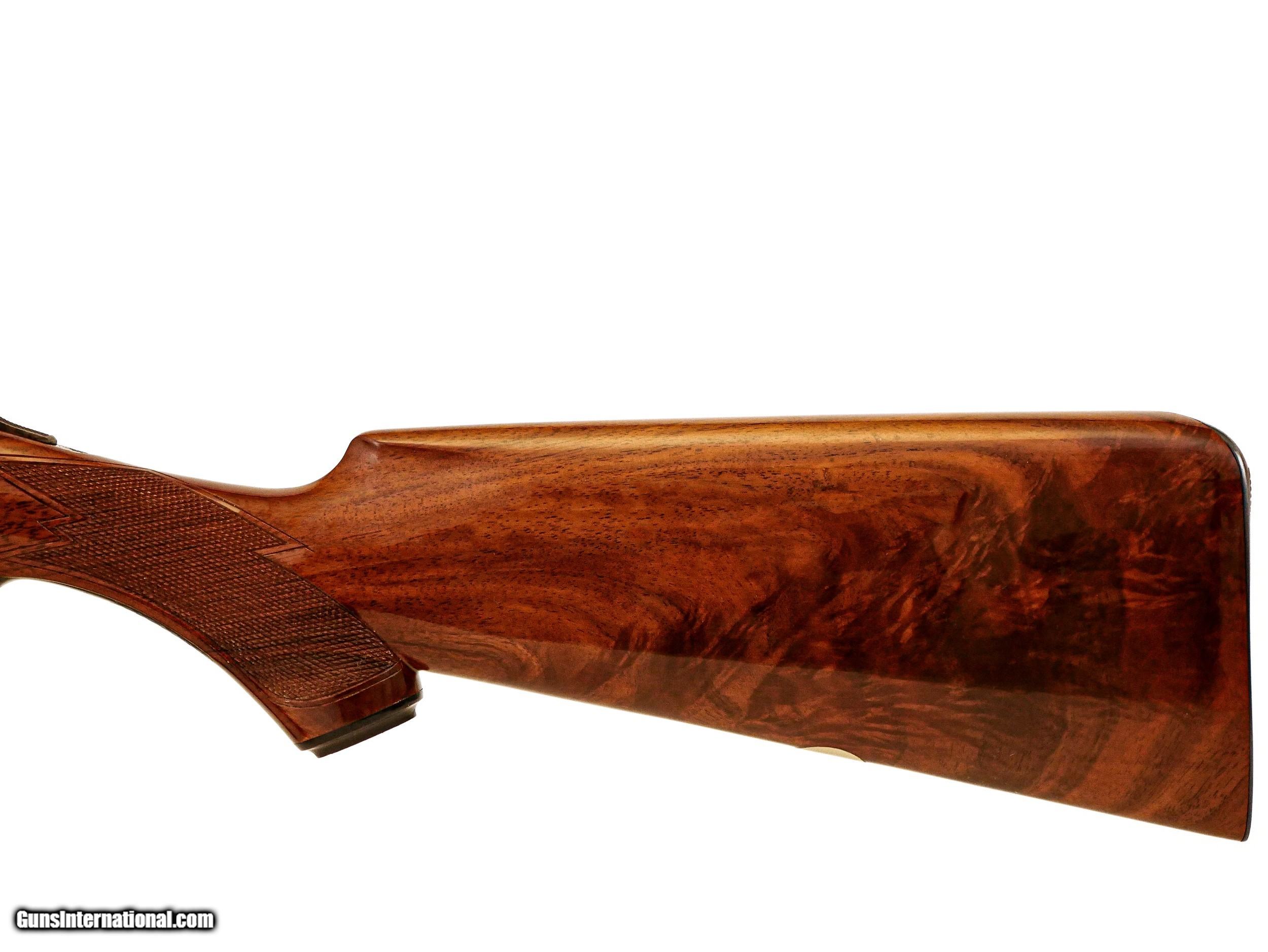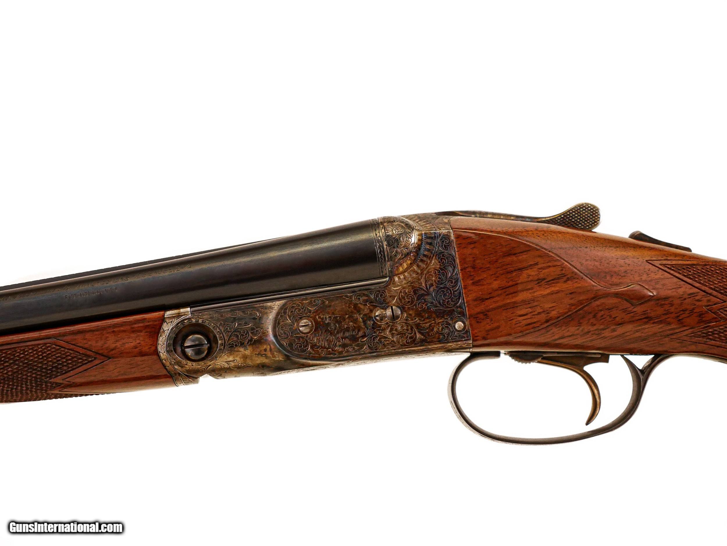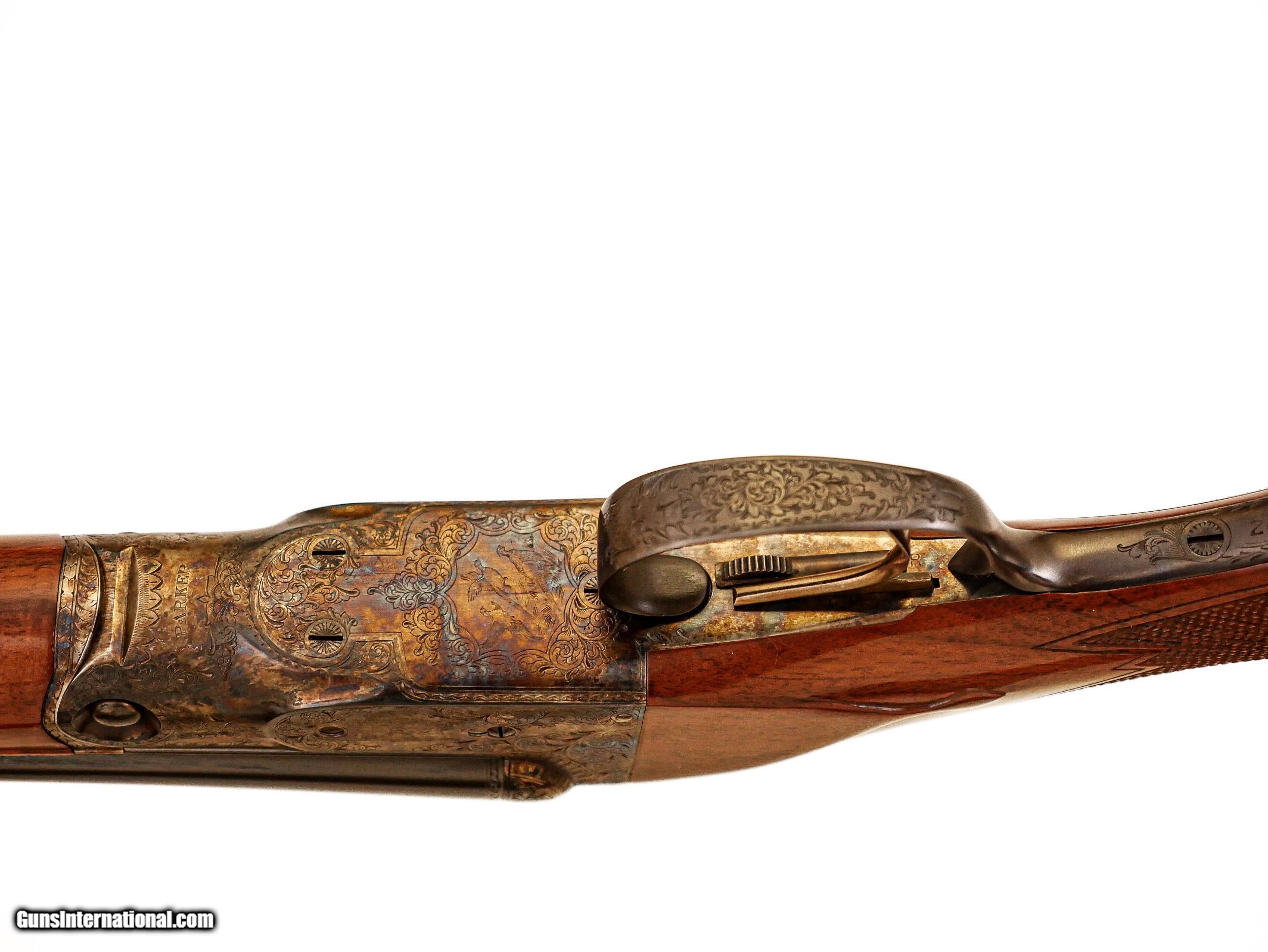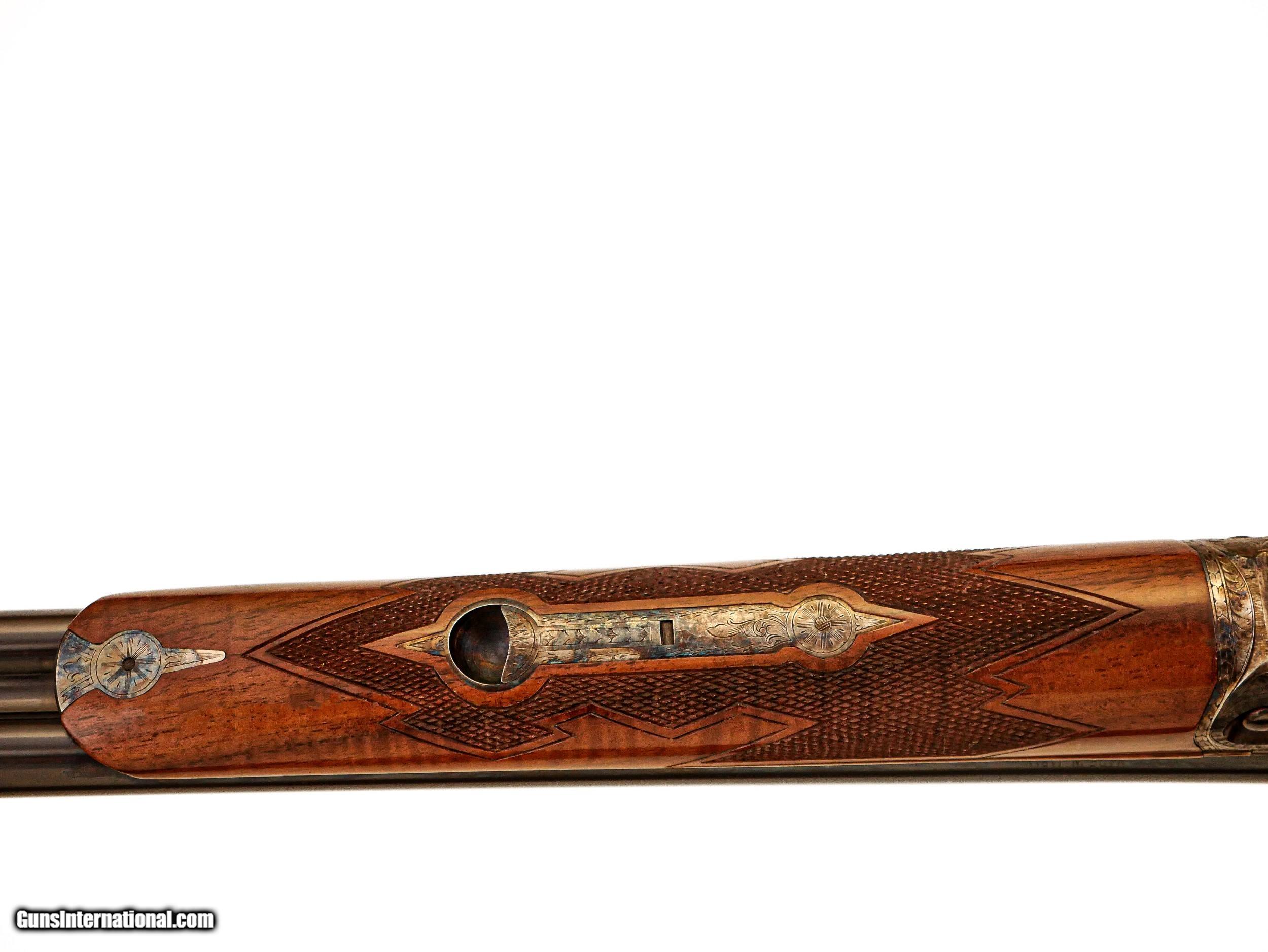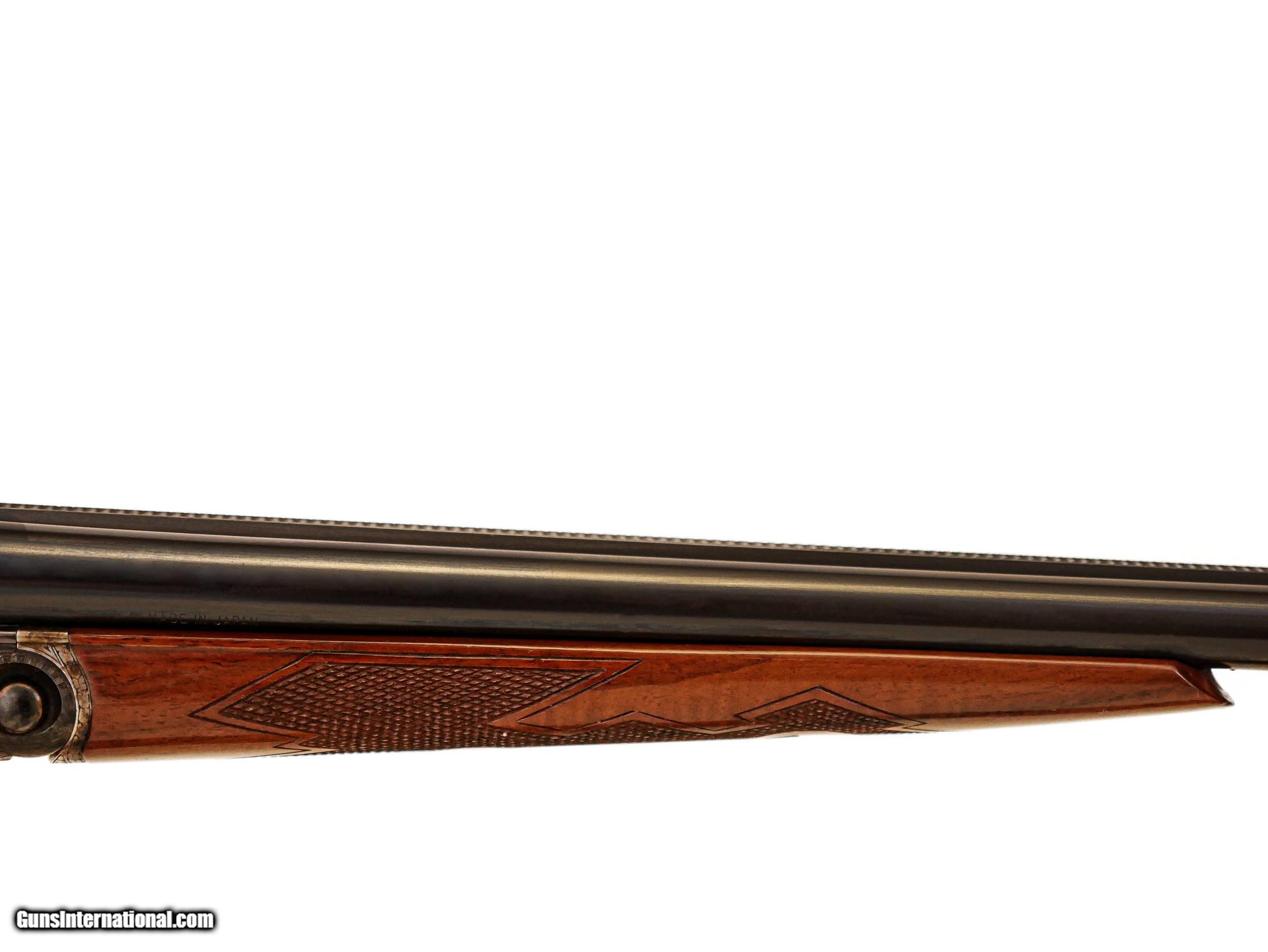 Description: Parker Reproductions - DHE Grade, 28ga. 26" Barrels Choked IC/M. Highly figured feathercrotch capped pistol grip stock, skeleton butt, splinter forend, single selective trigger, auto ejectors, DHE engraving pattern, gold oval, 95% case coloring remaining, gun appears unfired, includes factory leather case, available for immediate delivery. Inv: 51918 5 lbs. 10 oz. 14 ¼” x 1 ½” x 2 3/8” $6,999.00 SOLD |
