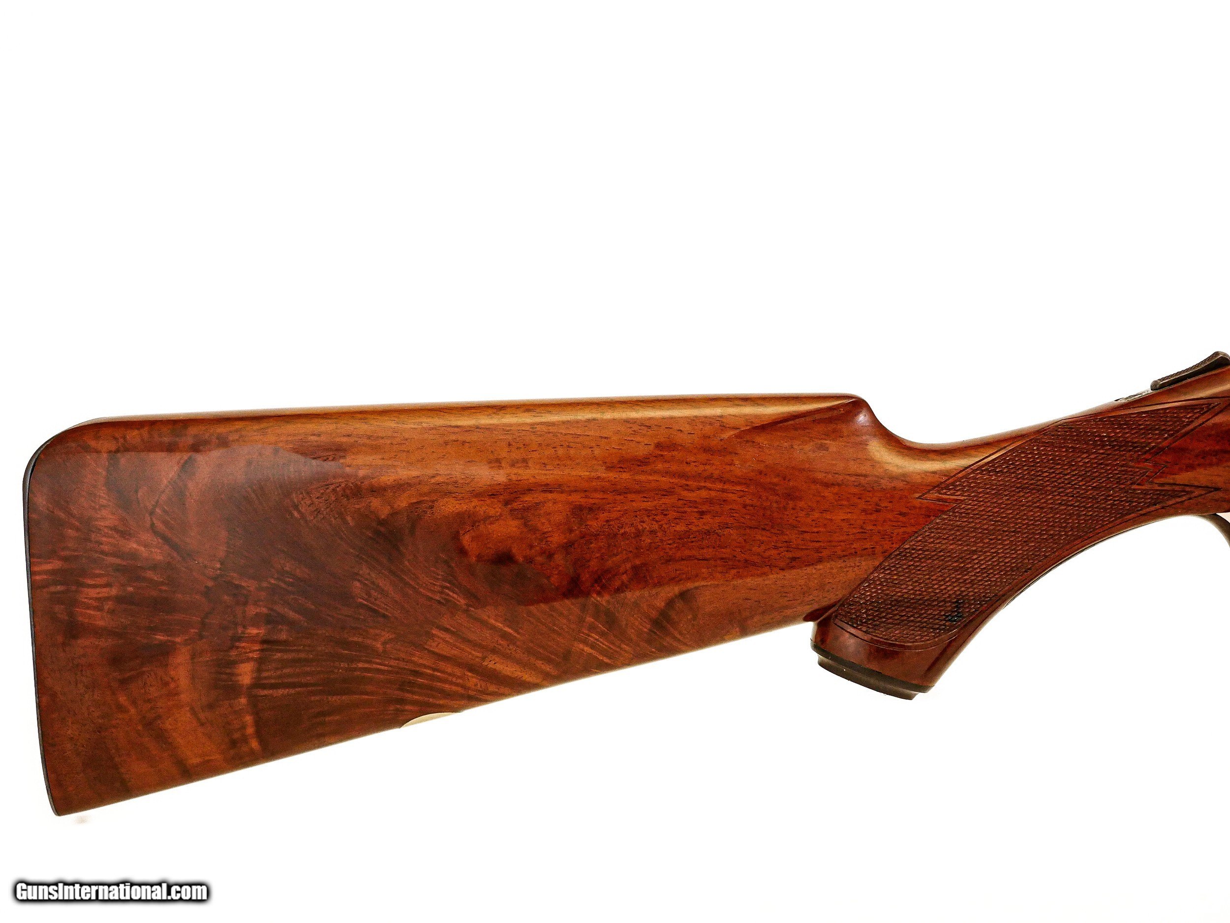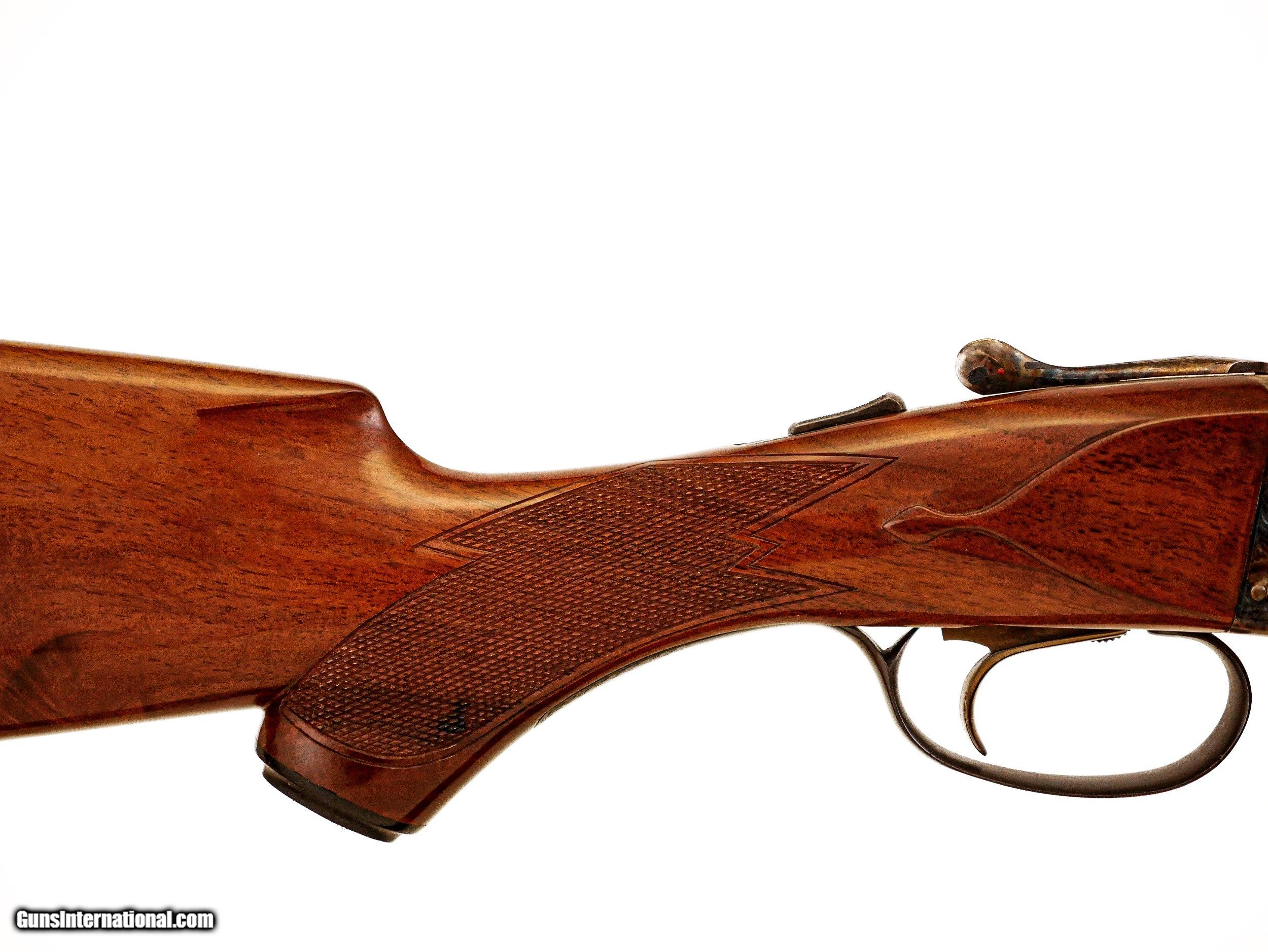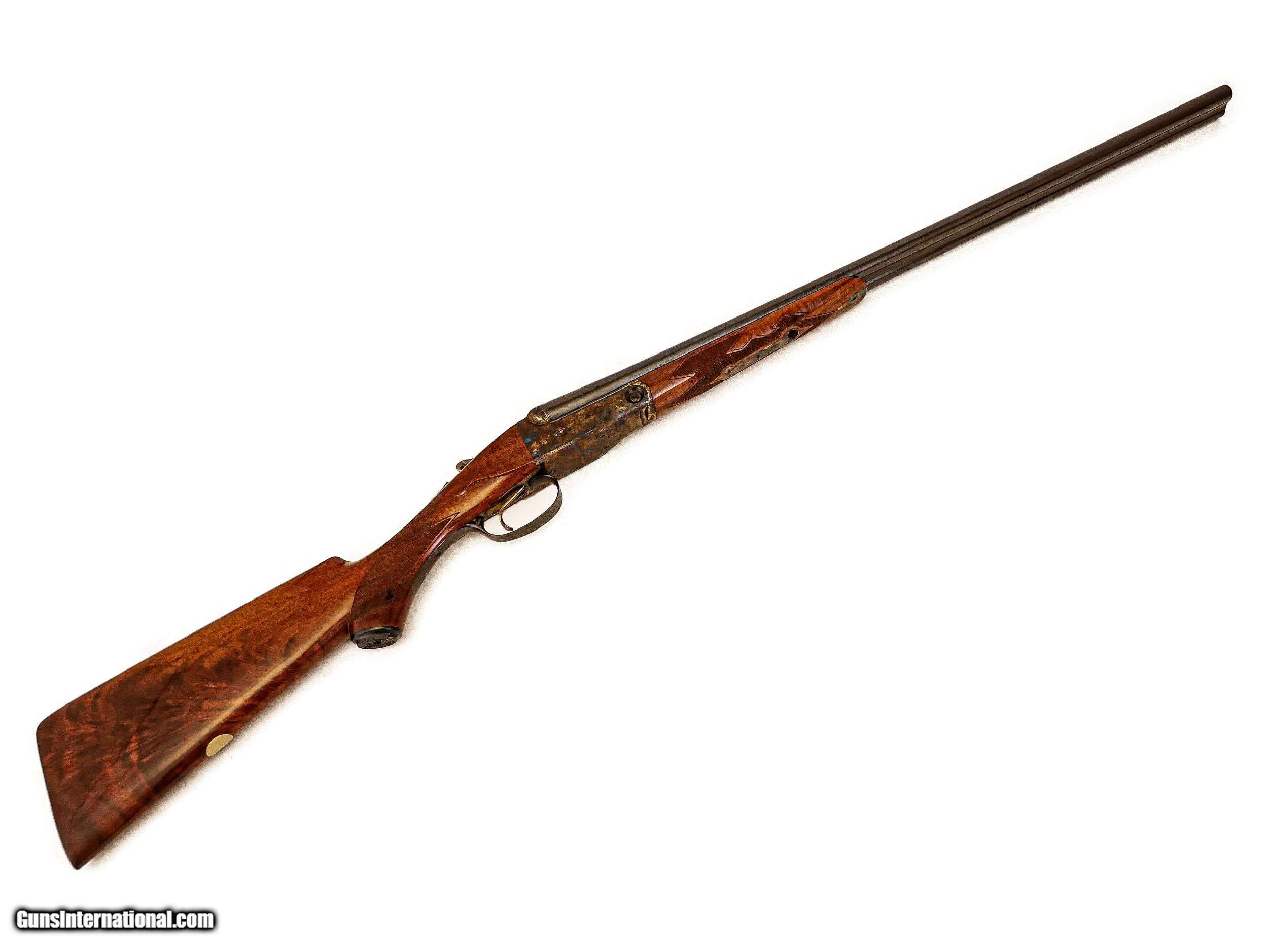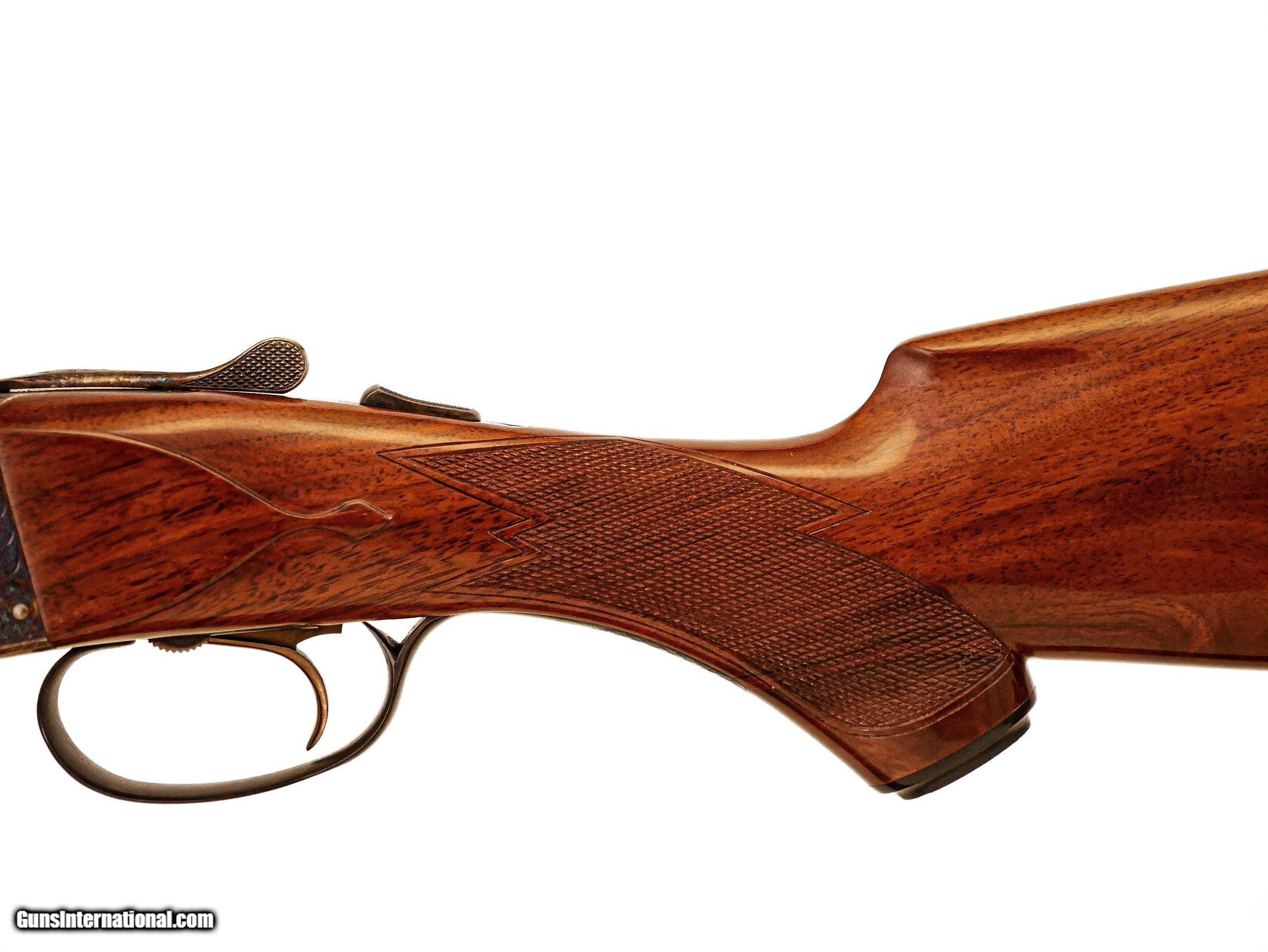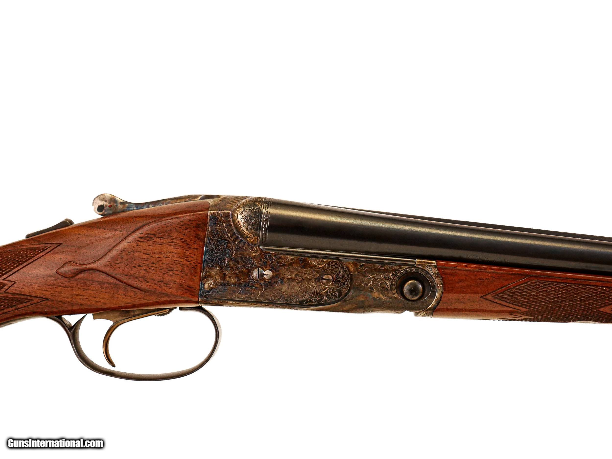 Description: Parker Reproductions - DHE Grade, 28ga. 26" Barrels Choked IC/M. Highly figured feathercrotch capped pistol grip stock, skeleton butt, splinter forend, single selective trigger, auto ejectors, DHE engraving pattern, gold oval, 95% case coloring remaining, gun appears unfired, includes factory leather case, available for immediate delivery. Inv: 51918 5 lbs. 10 oz. 14 ¼” x 1 ½” x 2 3/8” $6,999.00 SOLD |