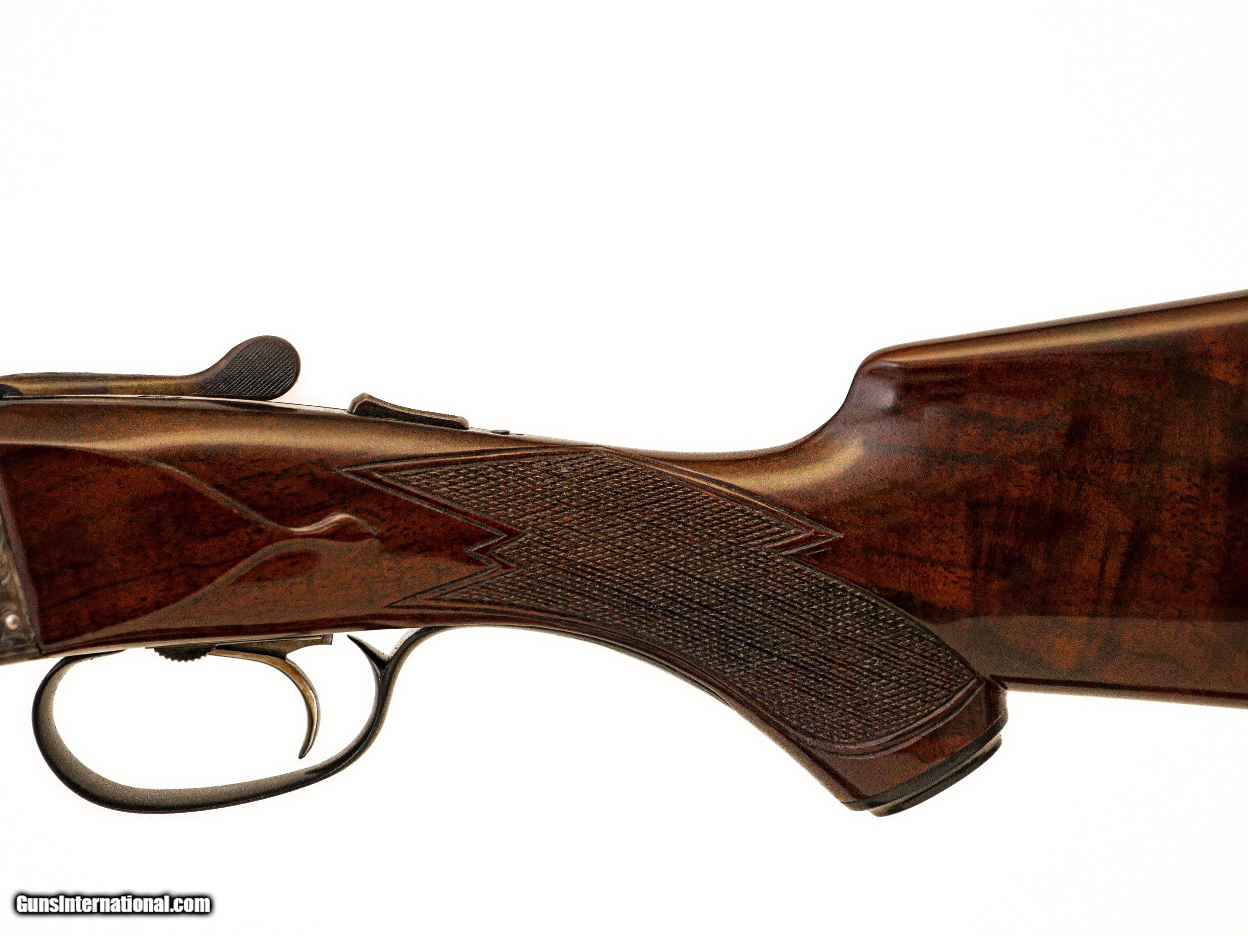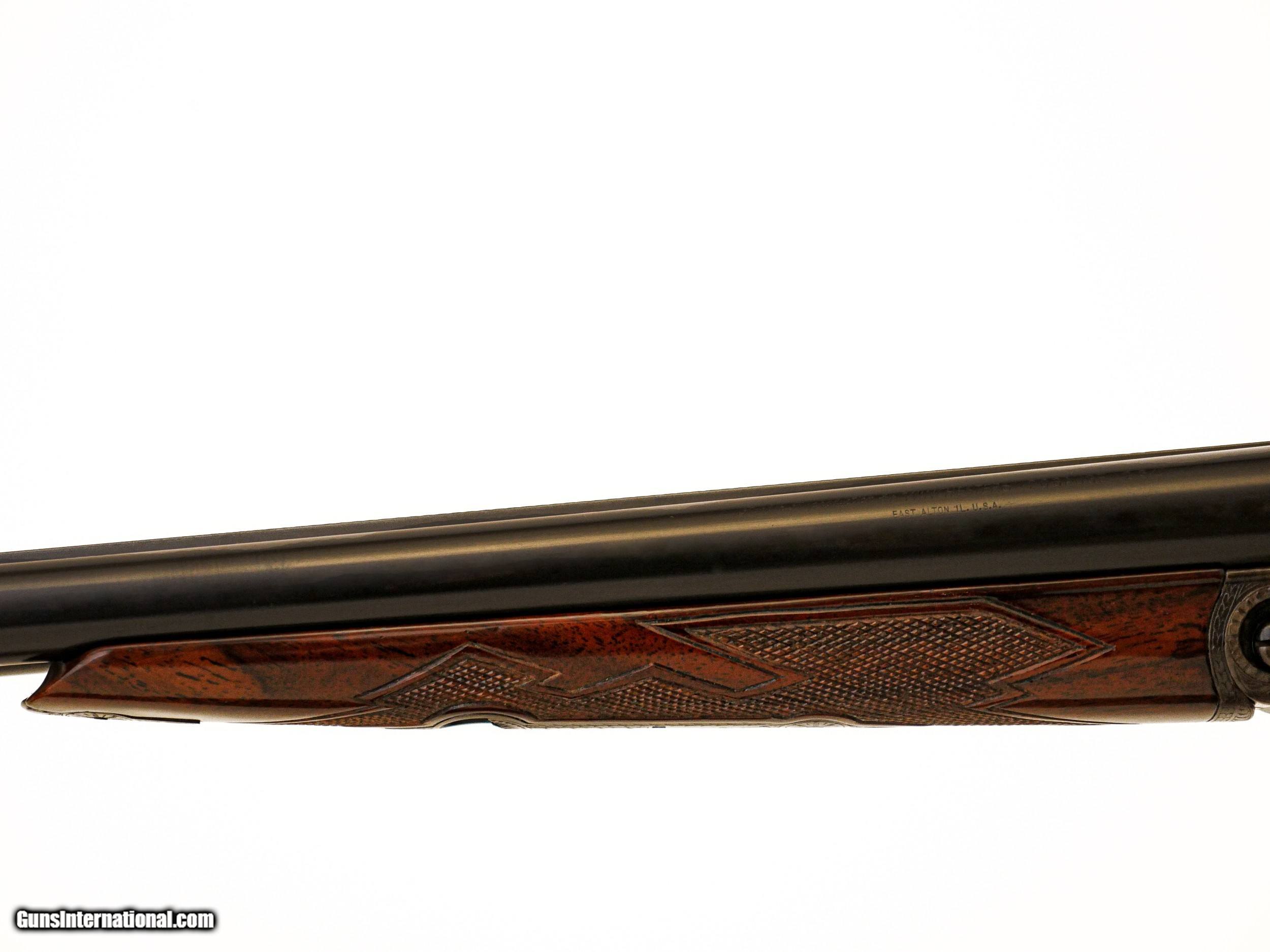 Description: Parker Reproductions - DHE Grade, Two Barrel Set, 20ga. 26" IC/M & 28" M/F. Highly figured walnut capped pistol grip stock, skeleton butt, splinter forend, single selective trigger, auto ejectors, solid game rib, beautiful DHE engraving pattern, gold oval, 100% condition, cased, available for immediate delivery. Inv: 51916 6 lbs. 10 oz. 14 ½” x 1 ½” x 2 ¼” $7,500.00 SOLD |