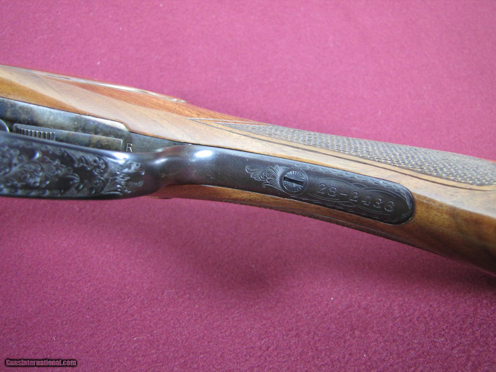 Description: I have for sale a lovely little Parker Reproduction 28 gauge. This particular gun has the pistol grip, splinter forend, single selective trigger, and has 26 inch barrels with improved cylinder and modified chokes. The gun is in excellent plus condition with only the very lightest of handling marks and I do mean light. Case coloring shows no wear, checkering is excellent as well as the bluing. In short the gun has been very lightly fired and shows in 99% condition. Wood on the gun is beautiful with way above average figure. Stock dimensions are 1 1/2 X 2 1/4 X 14 1/4 over the skeleton butt plate. Weight of the gun is 5 pounds 9 ounces with great balance. Gun comes with the original case, dust cover, and Parker Reproduction snap caps. Gun is just as it left the factory and I think you will have a hard time finding one in better condition unless it is totally unfired. Price of this gun is $5050 plus $50 shipping in the continental U.S. As always there is a three day non-firing inspection period with the buyer paying shipping charges if returned. Contact me at with any questions you might have. SOLD Manufacturer: Wincheser / Parker Model: DHE Chambers: 2 3/4 Ejectors: Yes well timed Metal Condition: Excellent Plus Wood Condition: Excellent Plus Triggers: Single Selective Gauge Info: 28 Stock Comb: 1 1/2 Stock Heel: 2 1/4 Fore End: Splinter Butt Pad: Skeleton LOP: 14 1/4 Weight: 5 pounds 9 ounces Choke Left: Modified Choke Right: Improved Cylinder Extras: Snap Caps Case: Case & Dust Cover |