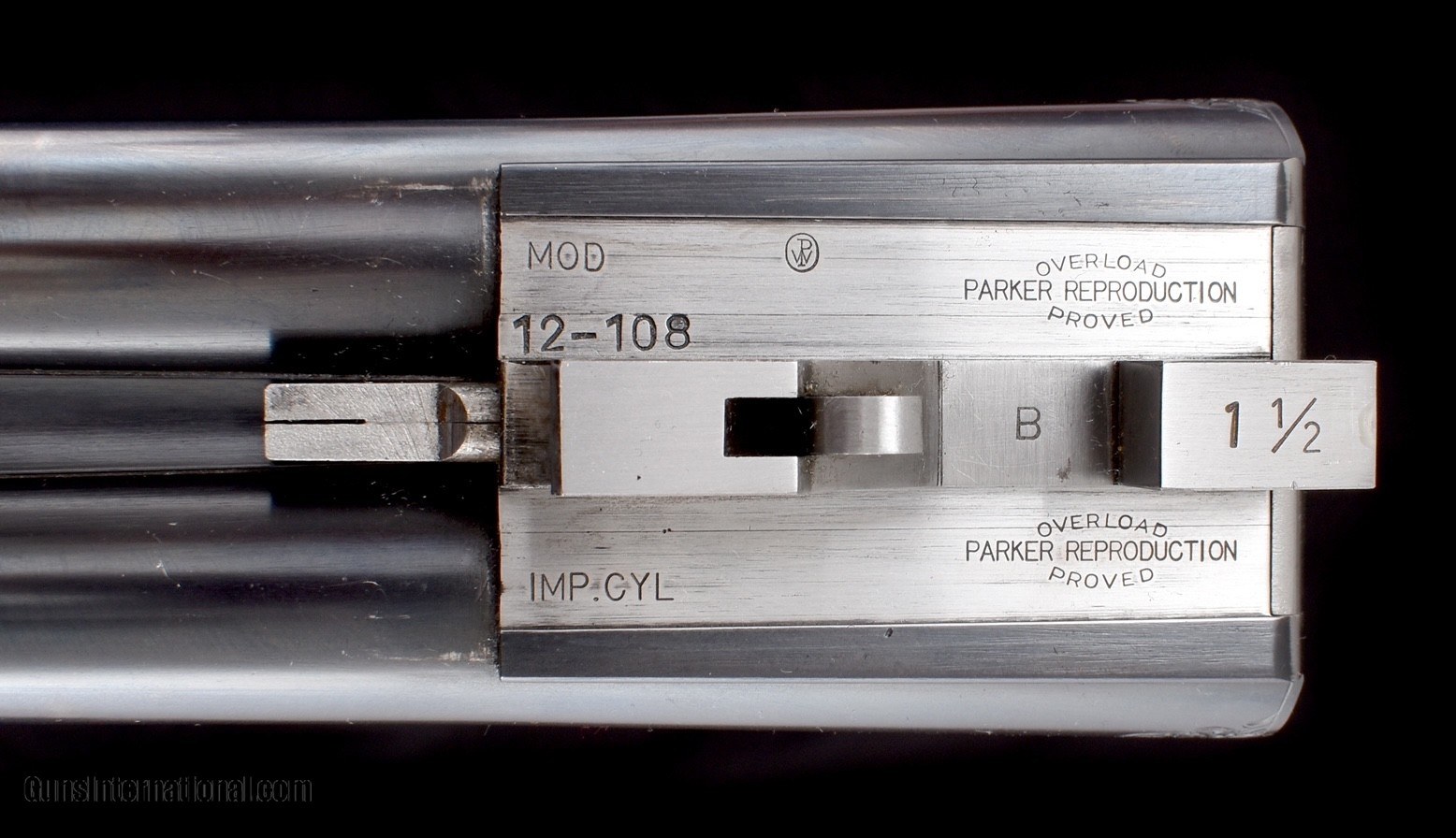 Description: Absolutely gorgeous Parker Reproduction 12ga gun engraved in the highest art form by famed American Engraver, Richard Roy. Gun is deep chisel engraved in relief scroll in full coverage! Gun made with splinter forend which is fleur-de-lies checkered, gold plated SST, auto ejectors, straight grip walnut buttstock which is carved and checkered and terminates with a fully engraved skeleton buttplate. Gun has several fantastic gold inlays including flying quail on right, "PARKER BROS" on bottom, setter soft mouthing a fallen pheasant on trigger plate, SN on trigger guard tang, and flying grouse on left side. Barrels with relief scroll wedges. Top lever has been meticulously sculpted at thumb point and gold inlaid bird at center. Gun is housed in a Emmebi Parker Reproductions case with canvas cover as seen in the photos. Gun remains as new with all custom finishes remaining. Bores are brilliant and shiny. Mechanics are perfect. Case is near mint. This beautiful high art Parker Repro is offered at $15,950 plus shipping to your FFL. The engraving alone would cost my asking price! Please dont hesitate to contact me with any questions or reasonable offers at (704) 280-2382 or via PM on this site. SOLD Shotgun Gauge: 12 Gauge Manufacturer: Parker Reproductions Model: A-1 Special Serial Number: 12-108 Barrel Length: 28 Chambers: 2-3/4 Ejectors: Yes Condition: As new Metal Condition: As new Wood Condition: As new Bore Condition: Brilliant Triggers: Gold plated SST Stock Comb: 1-3/8 Stock Heel: 2-1/8 Fore End: Splinter Butt Pad: Fully engraved skeleton BP LOP: 14-1/4 Weight: 6lbs. 13oz. Chokes: Imp. Cyl/Mod Minimum Wall Thickness Left: Over .025 Minimum Wall Thickness Right: Over .025 |