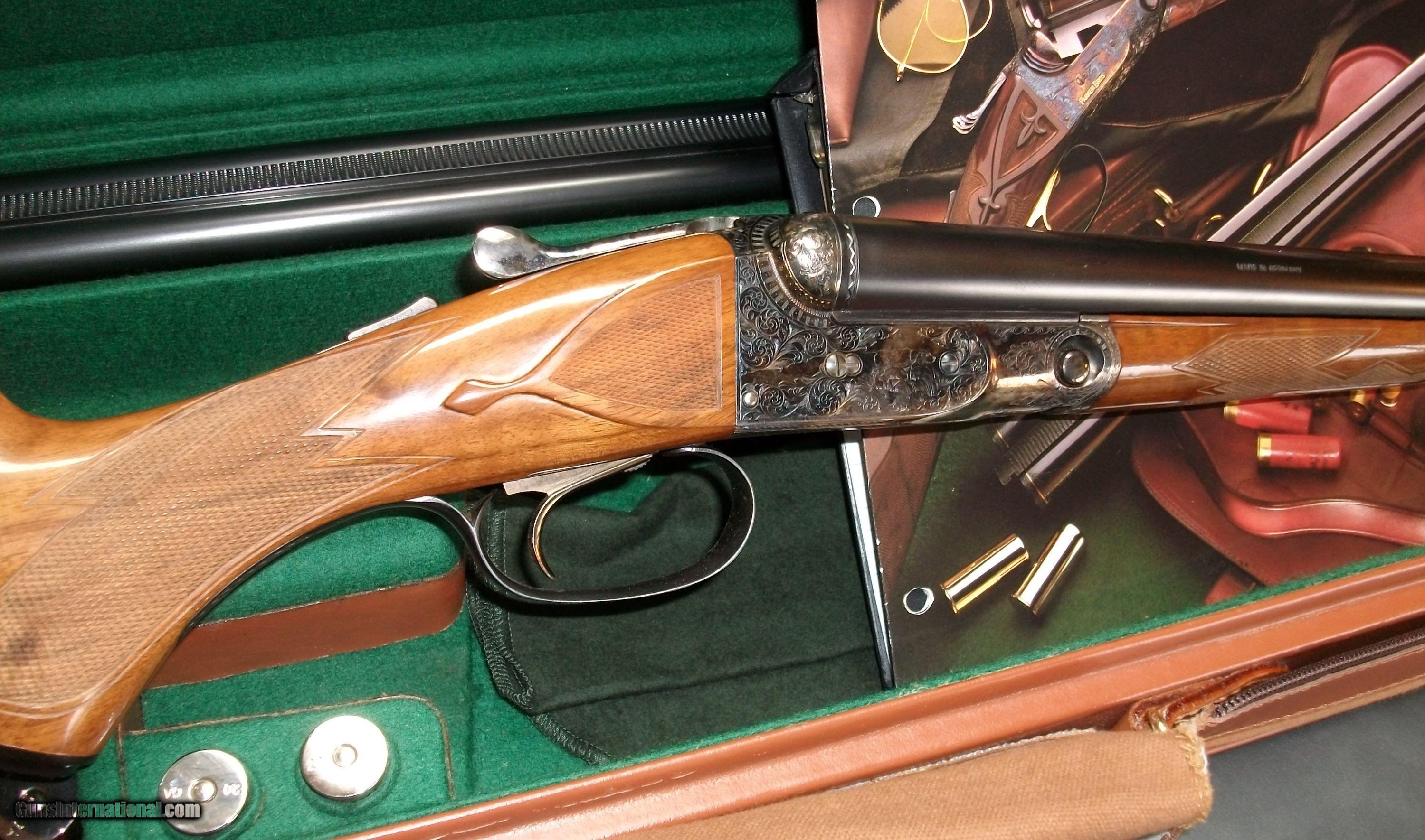 Description: Winchester- Parker Repro 16/20 Combo. Beautiful combo set with 28 inch, 16 gauge barrels, Q1 & Q2 and 26 inch 20 ga. M/IC barrels. Case color and blue finish with engraved receiver, checkered side panels, wrist and forestock. Butt plate is a Galazan two-piece case color steel heel and toe plate with checkered wood. LOP: 13-3/4. Snap caps , forearm guard and original sales brochure. Original leather case with canvas cover. This is a beauty, don't let it pass you by! SOLD |