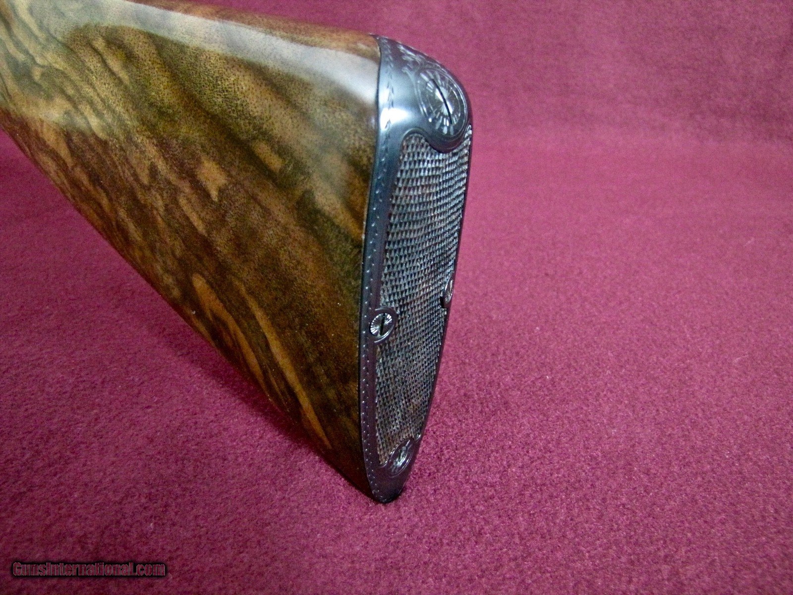 Description: I have for sale a rather unusual Winchester/Parker Reproduction DHE in 20 gauge with two barrels. This is a nice 2 barrel set with 26 inch barrels choked Improved cylinder and modified, and 28 inch barrels choked modified and full. Stock is straight, English grip with beavertail forend. Trigger is single and selective. I've had many of these over the years but I can't remember ever having one with these stock dimensions and it addresses the concerns of some shooters with these guns. This gun has 1 1/2 drop at comb, and 2 1/2 at heel with is a full 1/4 inch lower at heel than most I've ever had so if these guns have always been too high for you this might just be your right fit. Length of pull is 14 1/4 over the skeleton butt. Gun has been fired, but as you can tell from the breech face picture it has only been fired a very few rounds. I can only find a couple of very small indentations on the stock and the wood has very nice figure. Of course the top lever is well right of center and lockup is very tight as well. Gun weighs 6 pounds 14 ounces with the 28 inch barrels and a couple ounces less with the 26 inch barrels. Comes with the two barrel original case, dust cover, snap caps, case key, and even the owners manual. All in all at least a 98 percent gun. Price of the gun is $XXXX plus $75 shipping to your FFL. Contact me with any questions you might have. SOLD Shotgun Gauge: 20 Gauge Manufacturer: Winchester Parker Reproduction Model: DHE Barrel Length: 26/28 Ejectors: Selective Well Timed Metal Condition: Excellent Wood Condition: Excellent Barrels: 26 & 28 Inch Action: Boxlock Triggers: Single Selective Stock: Straight English Stock Comb: 1 1/2 Stock Heel: 2 1/2 Fore End: Beavertail Butt Pad: Skeleton LOP: 14 1/4 Chokes: IC & Mod, Mod & Full Extras: Case, Cover, Snap Caps, Keys, Manual Case: Luggage with Cover |