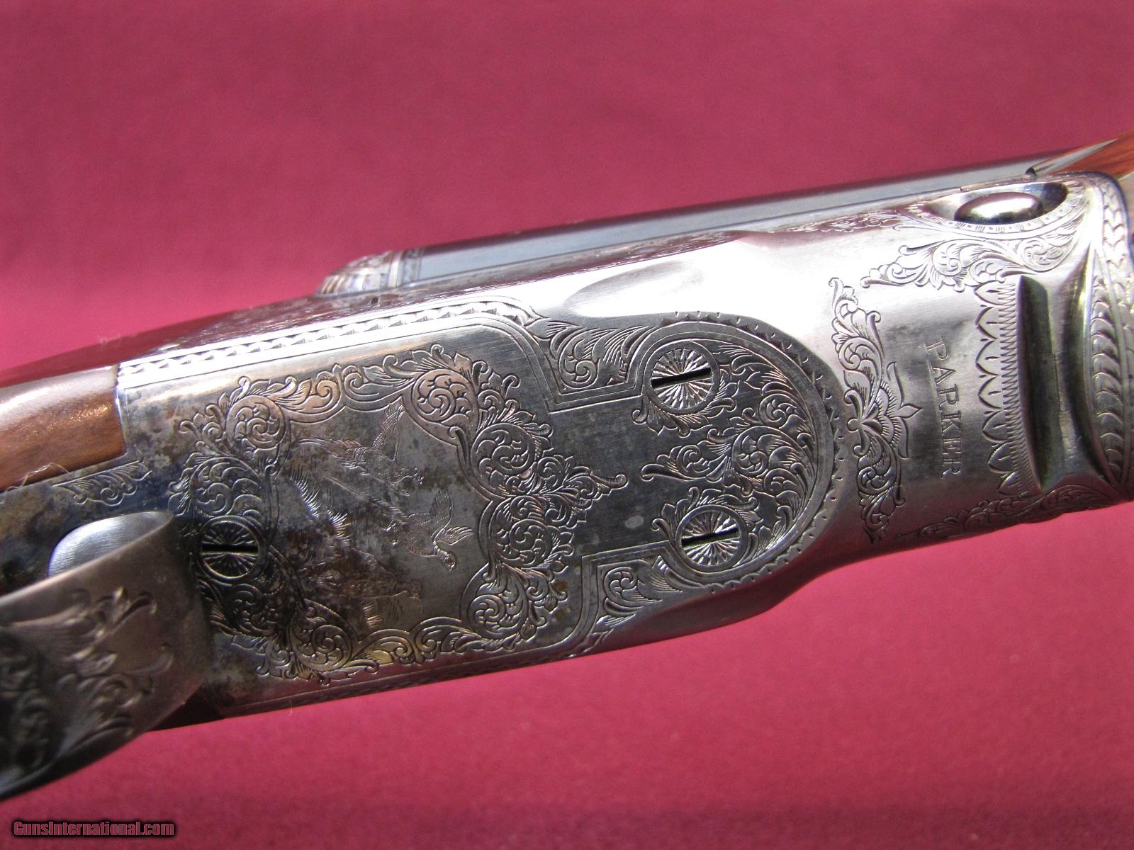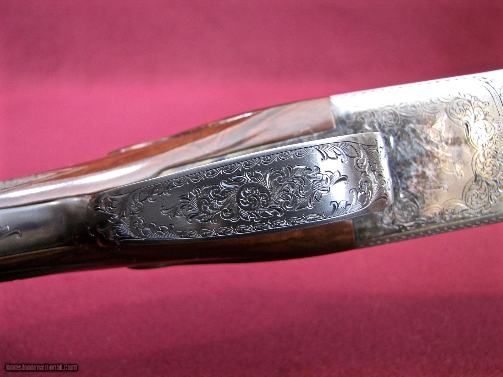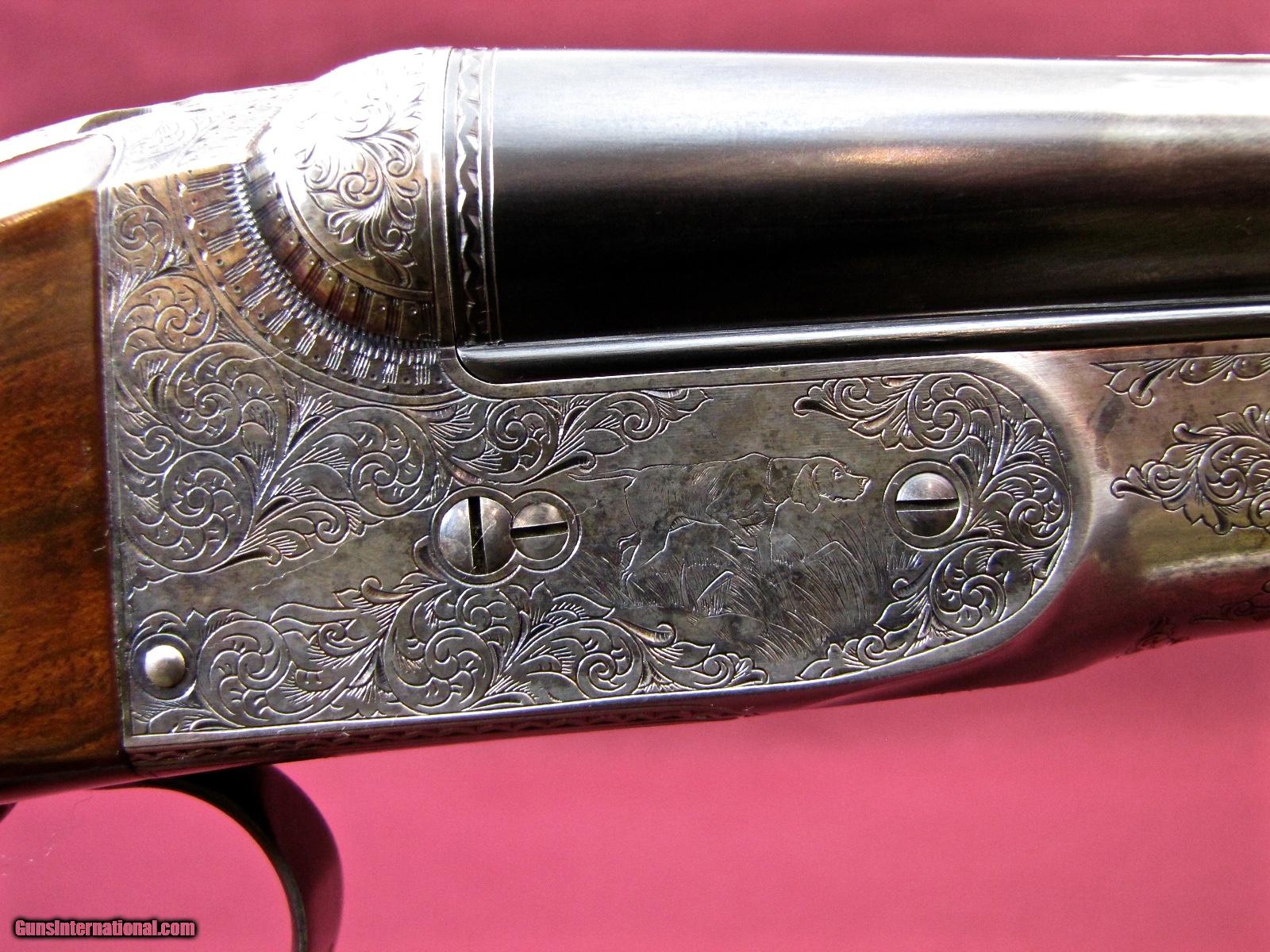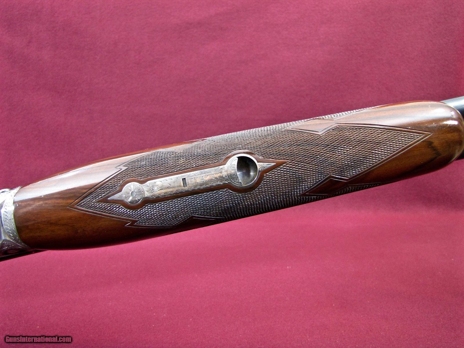 Description: I have for sale a very nice Parker Reproduction in the great 28 gauge. This gun is in a very nice configuration having double triggers, beavertail forend, and pistol grip stock, along with 2 sets of barrels. The barrels are 26 inch choked improved cylinder and modified, and 28 inch choked modified and full. Stock dimensions are 1 1/2 X 2 1/4 X 14 3/4 over the skeleton butt plate. Wood is very nice and dark with a pleasing grain pattern and wonderful flow through the wrist area which is so important in these small gauge guns. Weight of the gun is 5 pounds 13 ounces with the 26 inch barrels. The gun comes with the original 2 barrel case, dust cover, snap caps, keys for case, and a non-original manual. One thing of note on this gun is it comes with a non-automatic safety. This is the only 28 gauge Repro that I've ever seen with a non-automatic safety. The screws so no sign of ever having been turned so I'm not sure if it was special ordered this way, or if it was done at some point after purchase? In any case it functions perfectly and is nice if you shoot skeet or sporting clays. Gun is in excellent condition showing some wear to the case coloring (we all know how quickly this fades) and a few light impressions to the wood. The pictures show the condition very accurately. This is the type of gun I like to buy and actually use having very light use but not unfired so that you are afraid to actually use the gun. Price of the gun is $5900 plus $50 shipping to your FFL. As always there is a three day non-firing inspection period on the gun with the buyer paying shipping charges if returned. Inspection period begins the day the gun is received at the FFL. Feel free to contact me with any questions you might have. This will make someone an excellent upland gun. SOLD Manufacturer: Winchester / Parker Reproduction Model: DHE Metal Condition: Excellent Wood Condition: Excellent Barrels: 26 inches & 28 Inches Stock Comb: 1 1/2 Stock Heel: 2 1/4 Butt Pad: Skeleton LOP: 14 3/4 Weight: 5 pounds 13 ounces Extras: Snap Caps Case: Hard Case and Cover |