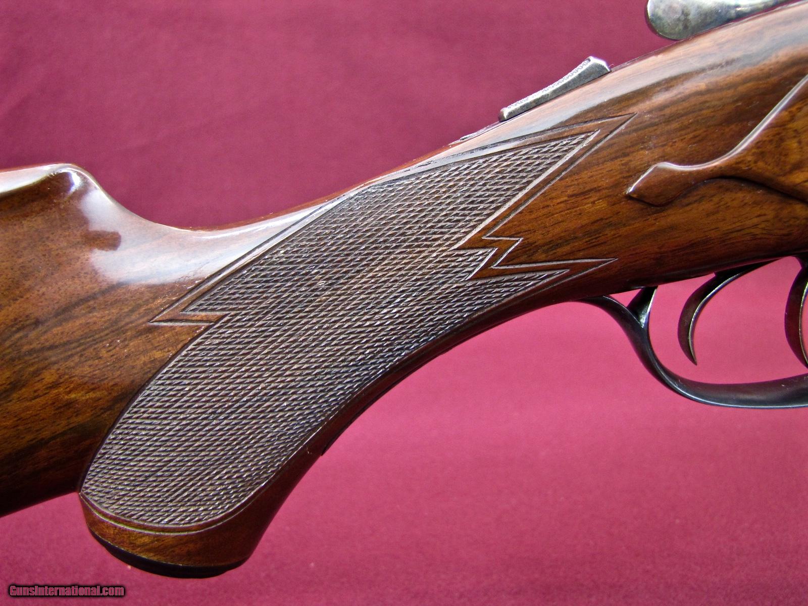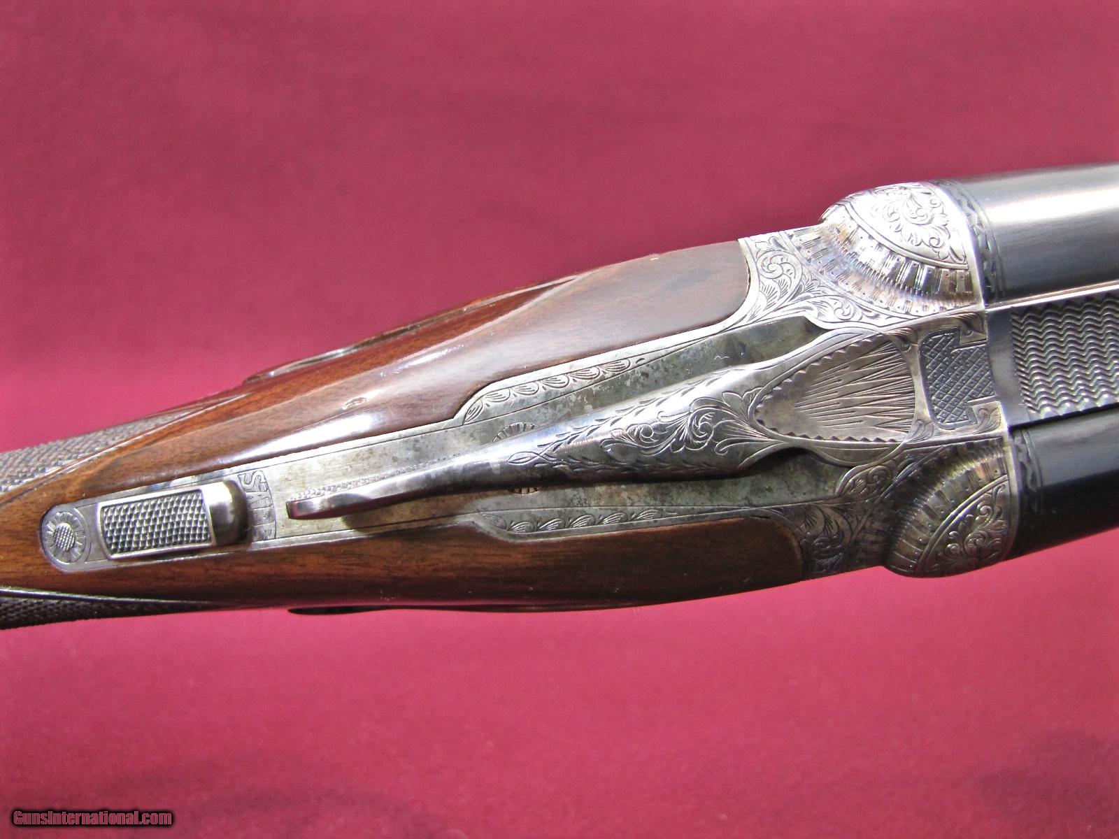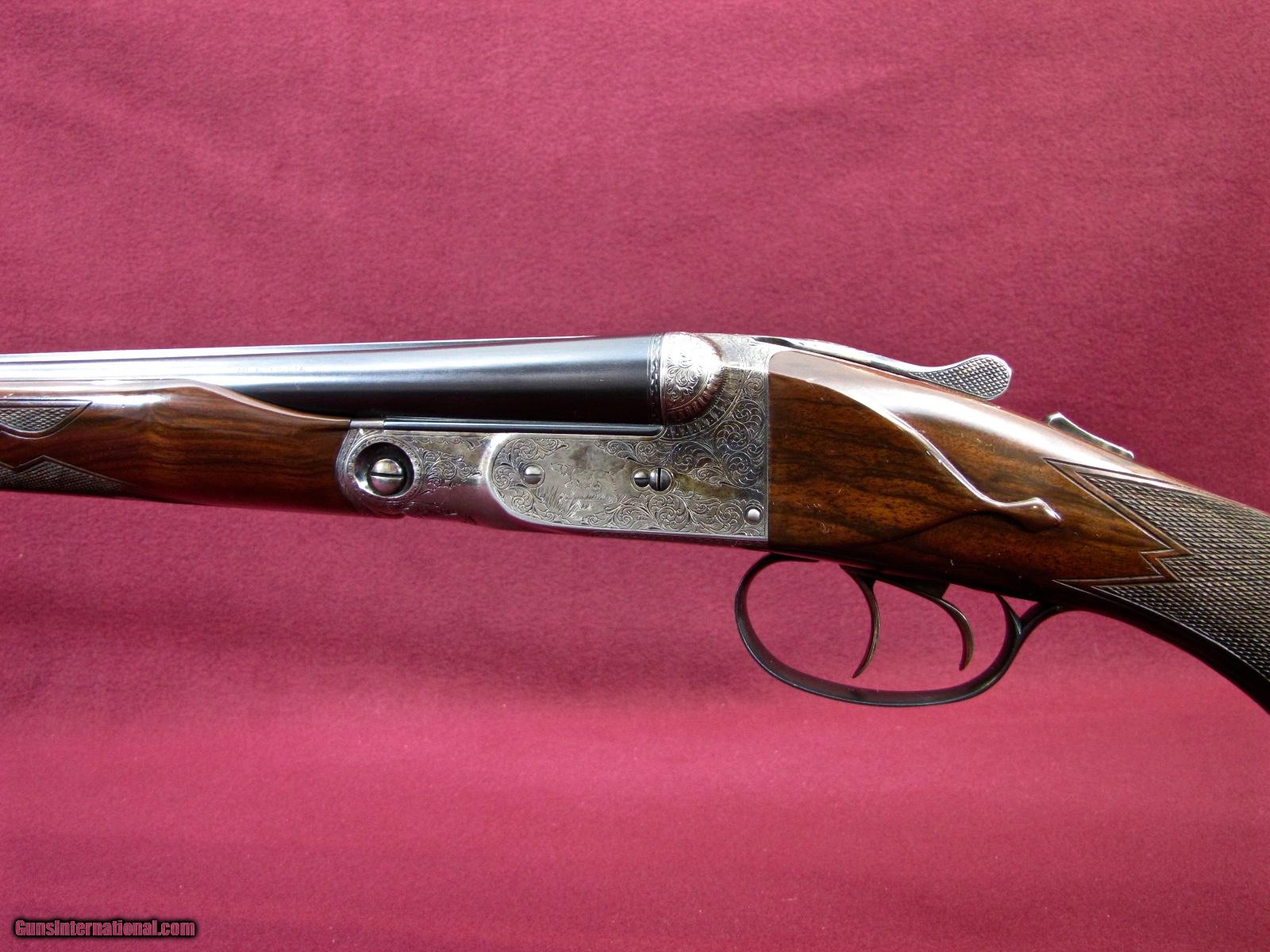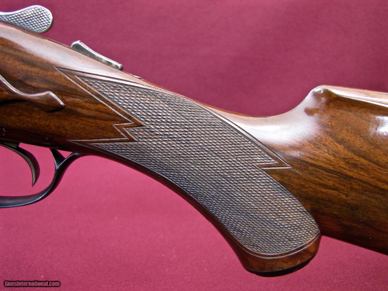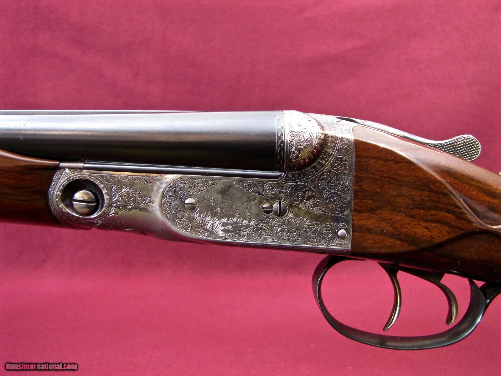 Description: I have for sale a very nice Parker Reproduction in the great 28 gauge. This gun is in a very nice configuration having double triggers, beavertail forend, and pistol grip stock, along with 2 sets of barrels. The barrels are 26 inch choked improved cylinder and modified, and 28 inch choked modified and full. Stock dimensions are 1 1/2 X 2 1/4 X 14 3/4 over the skeleton butt plate. Wood is very nice and dark with a pleasing grain pattern and wonderful flow through the wrist area which is so important in these small gauge guns. Weight of the gun is 5 pounds 13 ounces with the 26 inch barrels. The gun comes with the original 2 barrel case, dust cover, snap caps, keys for case, and a non-original manual. One thing of note on this gun is it comes with a non-automatic safety. This is the only 28 gauge Repro that I've ever seen with a non-automatic safety. The screws so no sign of ever having been turned so I'm not sure if it was special ordered this way, or if it was done at some point after purchase? In any case it functions perfectly and is nice if you shoot skeet or sporting clays. Gun is in excellent condition showing some wear to the case coloring (we all know how quickly this fades) and a few light impressions to the wood. The pictures show the condition very accurately. This is the type of gun I like to buy and actually use having very light use but not unfired so that you are afraid to actually use the gun. Price of the gun is $5900 plus $50 shipping to your FFL. As always there is a three day non-firing inspection period on the gun with the buyer paying shipping charges if returned. Inspection period begins the day the gun is received at the FFL. Feel free to contact me with any questions you might have. This will make someone an excellent upland gun. SOLD Manufacturer: Winchester / Parker Reproduction Model: DHE Metal Condition: Excellent Wood Condition: Excellent Barrels: 26 inches & 28 Inches Stock Comb: 1 1/2 Stock Heel: 2 1/4 Butt Pad: Skeleton LOP: 14 3/4 Weight: 5 pounds 13 ounces Extras: Snap Caps Case: Hard Case and Cover |