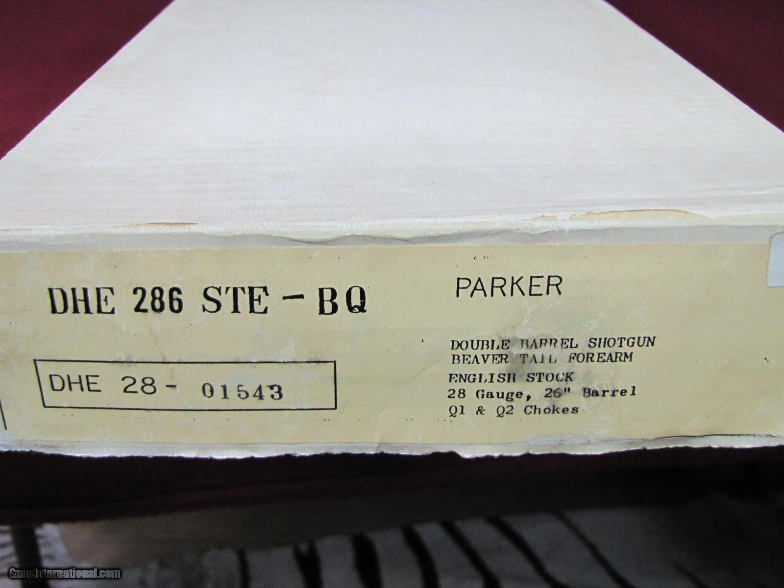 Description: I have for sale a lovely little Winchester Parker Reproduction in a rather rare configuration. The Parker Reproductions are all nice guns but in my mind the 28 gauge is the jewel of the group. These guns can be the things dreams are made of for the upland hunter but when you start looking for the perfect Parker Reproduction you will see that most have splinter forends and have 26 inch barrels with IC and Modified chokes. This particular gun is the exception to that rule having both a beavertail forend and Q1 and Q2 chokes which to my way of thinking is the perfect combination for Grouse, Woodcock, and quail. This gun has 26 inch barrels, straight english grip, single selective trigger, and beavertail forend. Weight of the gun is 5 pounds 14 ounces. The gun comes with the original and correct luggage case, dust cover, snap caps, and keys for the case along with the original shipping box, something you very seldom see. Another very important thing to me is the grain flow through the wrist on these small gauge guns, and this gun has the perfect layout for strength. As said in the title the gun is unfired and if there are any marks I haven't found them. I don't believe you will find one of these guns with this configuration in any better condition. Price of the gun is $4900 plus $50 shipping to your FFL. As always there is a three day non-firing inspection period with the buyer paying shipping charges if returned. SOLD Manufacturer: Winchester Parker Reproduction Model: DHE Condition: Unfired/New Metal Condition: Unfired/New Wood Condition: As New Barrels: 26 inches Barrel Type: SXS Action: Boxlock Triggers: Single Selective Gauge Info: 28 Stock Comb: 1 1/2 Stock Heel: 2 3/8 Stock Cast: Neutral Fore End: Beavertail Butt Pad: Skeleton LOP: 14 1/4 Rib: Solid Concave game rib Weight: 5 pounds 14 ounces Choke Left: Q2 Choke Right: Q1 Extras: Snap caps, shipping boxes Case: Hard Case and Cover |
