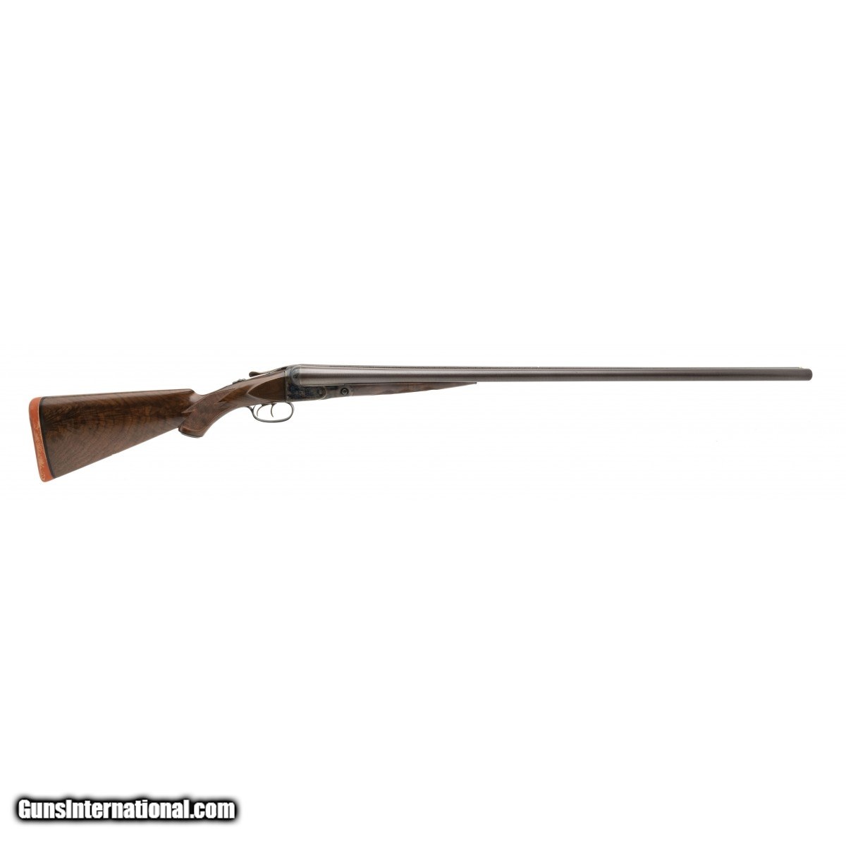Description: " SN:145055. Made in 1908, 12 gauge side by side with 32"" damascus barrels choked .025/.025. Boxlock extractor gun with double triggers. 14 3/4"" LOP to the added recoil pad, with original named grip cap and a silver stock shield. This gun has been professionally restored. The damascus barrels are excellent and have bright bores. Action and forearm iron have been re-case colored and the stock and forearm have been re-finished and re-checkered to the appropriate style. A great looking gun, in excellent overall condition. (Consignment) SOLD Curio/Relic: Yes |