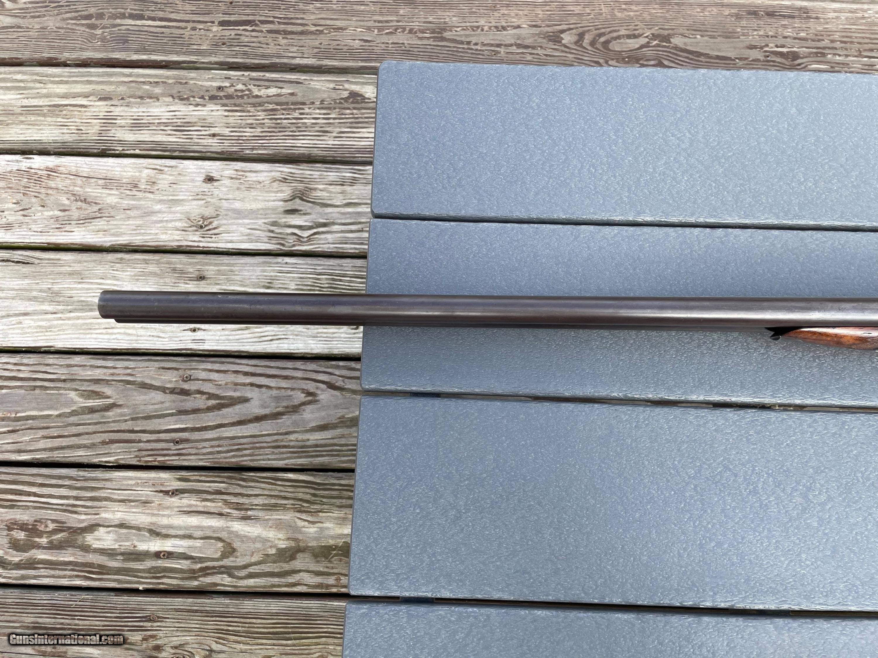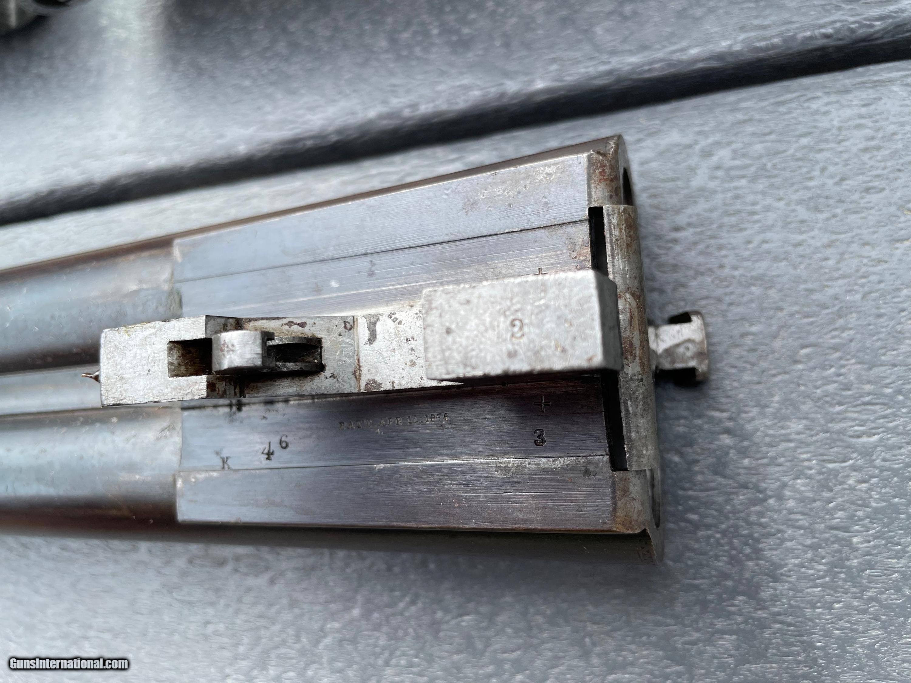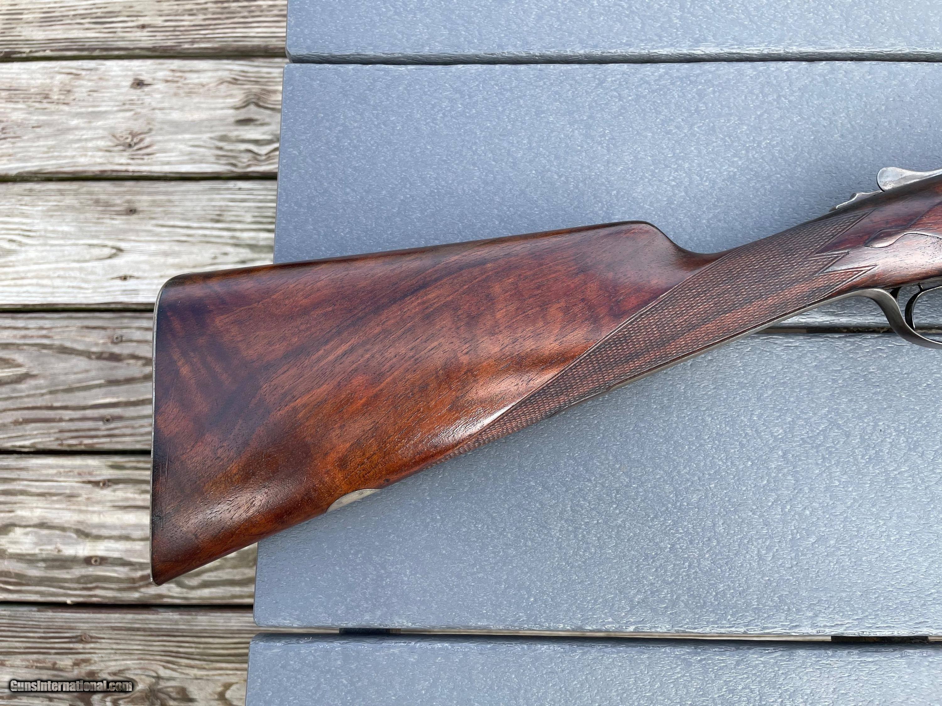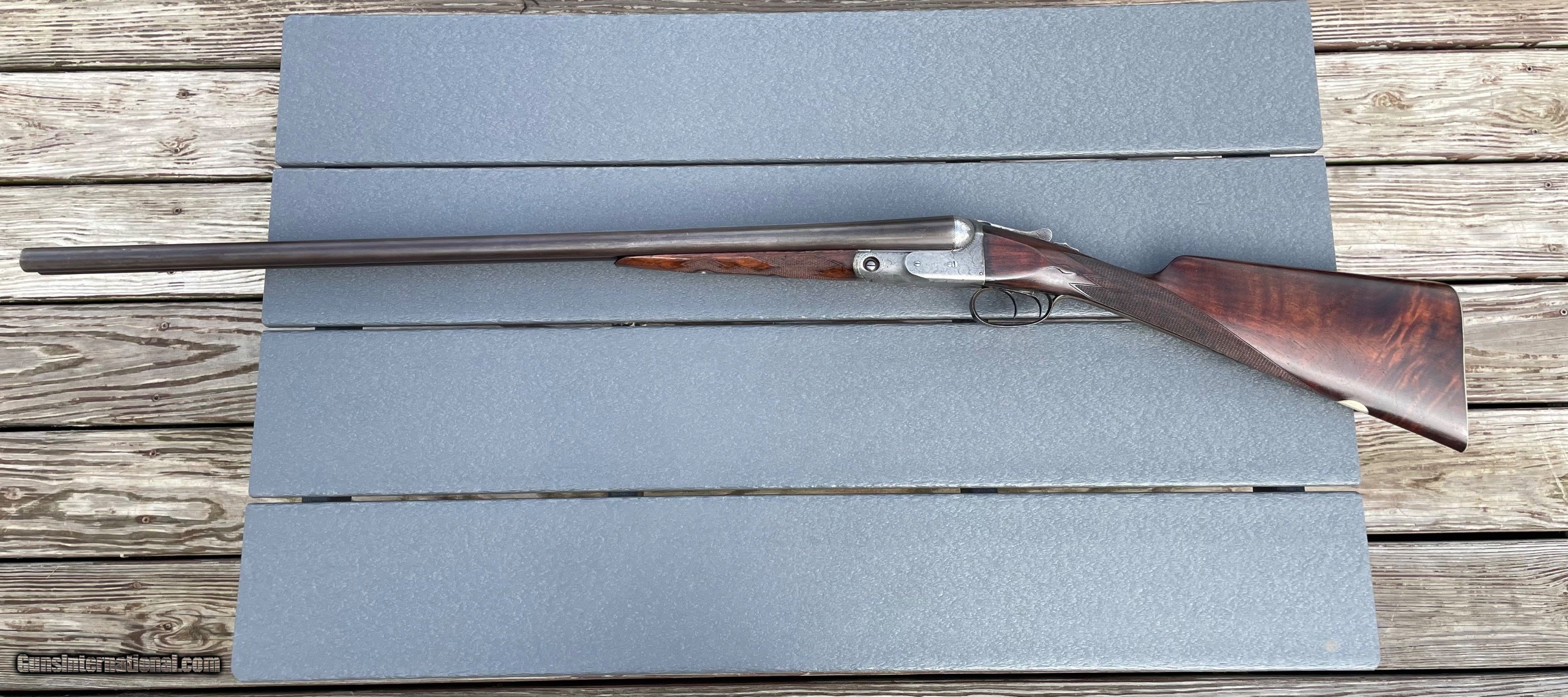 Description: *SOLD PENDING FUNDS* Here we have a great condition Parker DH 12ga with 30in Titanic Steel barrels built in 1899. This shotgun has been lettered and matches such. The wood is in excellent condition with only minor handling marks. The barrel bluing is thinning and there is a small bulge in the right barrel 6-8inches from the muzzle, which is visable in pictures. The chokes of the uncut barrels measure Full/Full on my guage. The engraving on the 2 frame size action is crisp with traces of case hardening visible in protected areas. This is a classic, shootable, original condition side by side from one of America's top manufacturers and eras. $3500 - plus shipping Offers entertained. SOLD Curio/Relic: Yes Shotgun Gauge: 12 Gauge Manufacturer: Parker Model: DH Serial Number: 92402 Ejectors: No Condition: Excellent Metal Condition: Good Wood Condition: Excellent Barrel Type: Titanic Steel Choke Left: Full Choke Right: Full |