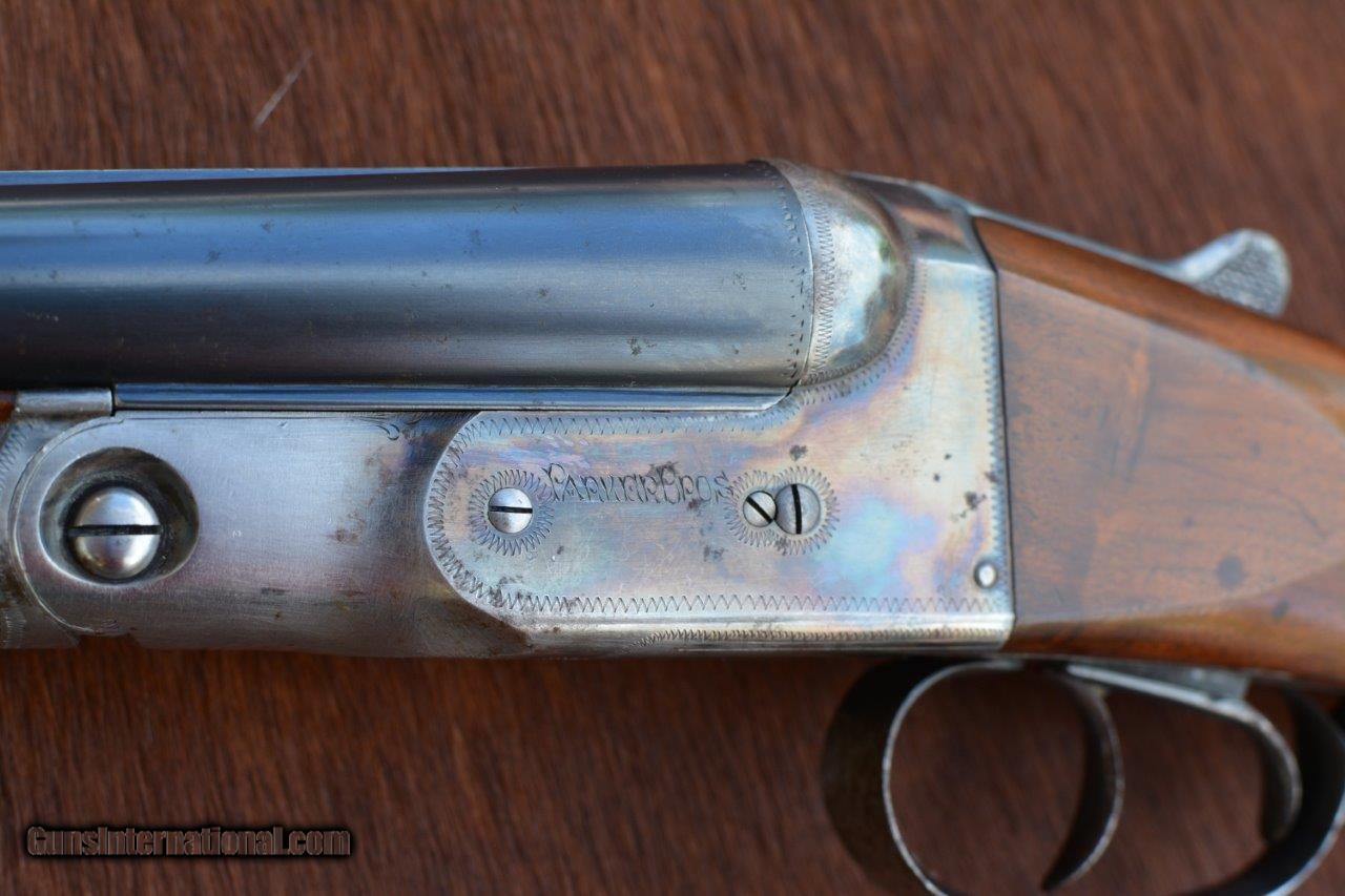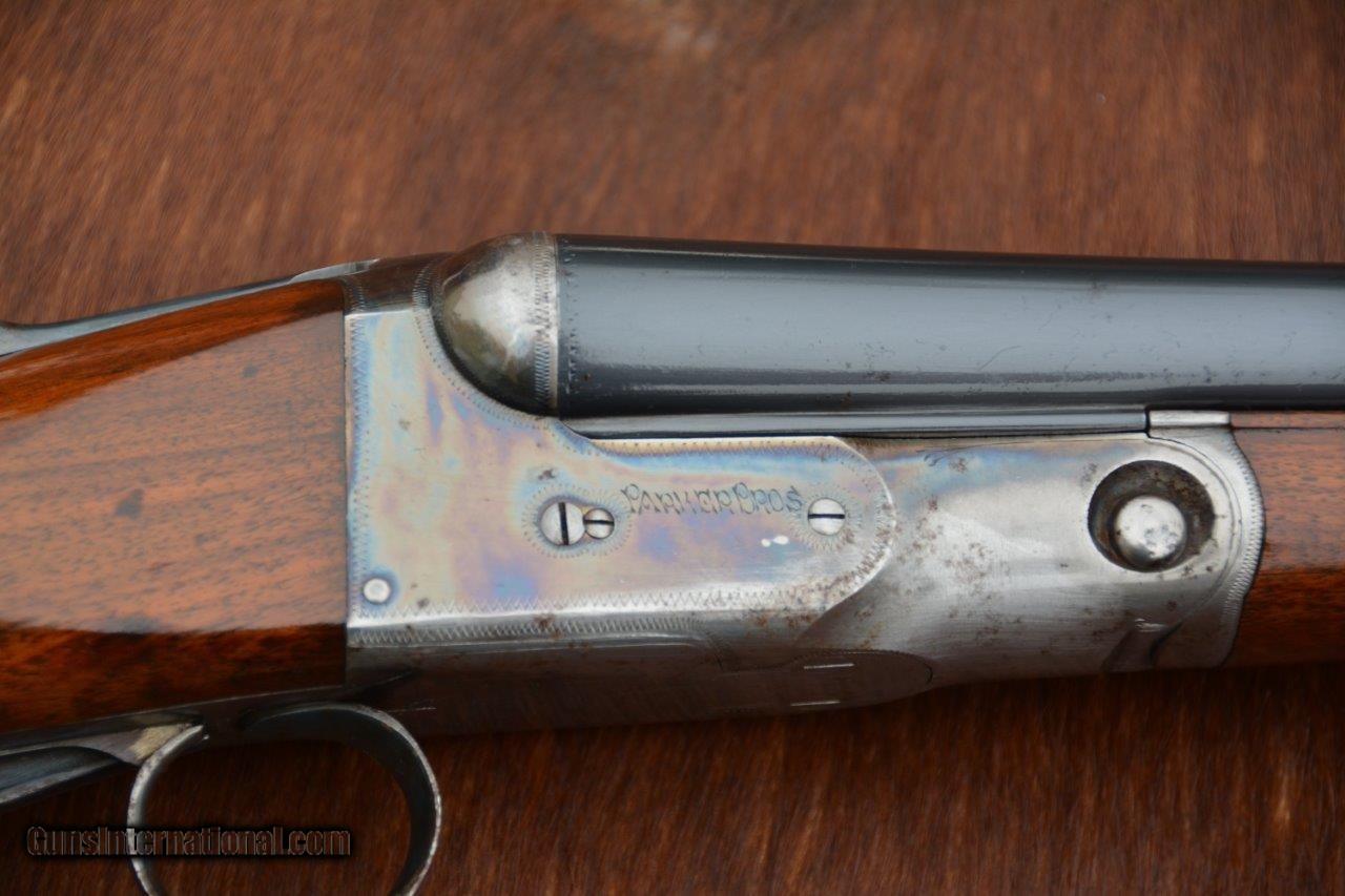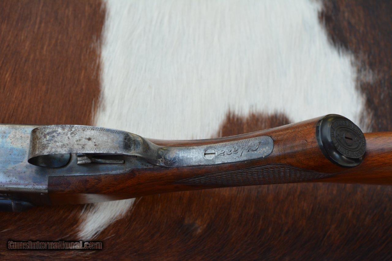 Description: Beautiful little VHE 20ga Parker with 30" Vulcan barrels. Lots of original case color remain. The gun has not been touched and is original in all respects. It retains more than 75% bright original case color, nearly all of the original barrel blue and wood finish. Original buttplate. Bores are bright and shiny and mechanics are crisp. Specs are as follows: 1930 VHE 20g Parker specs Serial Number 233749 Pistol Grip 30" Barrels 0 Frame 2-3/4" chambers 14 1/4 LOP Drop at comb 1 5/8 Drop at heel 2 5/8 Cast 0 Right Bore .617" Left Bore .617" Chokes R .025 L .011 Barrel Wall Thickness R .028 L .029 Weight 6lbs 8oz Just a great all original Parker suitable for any collection! This gun is priced at $7395 plus shipping to your FFL. Please don't hesitate to PM or call me with any questions on this great Parker. I can be reached at (704) 280-2382 or by PM on this site with any questions or reasonable offers. SOLD Curio/Relic: Yes Shotgun Gauge: 20 Gauge Manufacturer: Parker Bros Model: VHE Serial Number: 233749 Barrel Length: 30 Condition: Excellent Metal Condition: Excellent Wood Condition: Excellent and original Bore Condition: Bright and shiny |