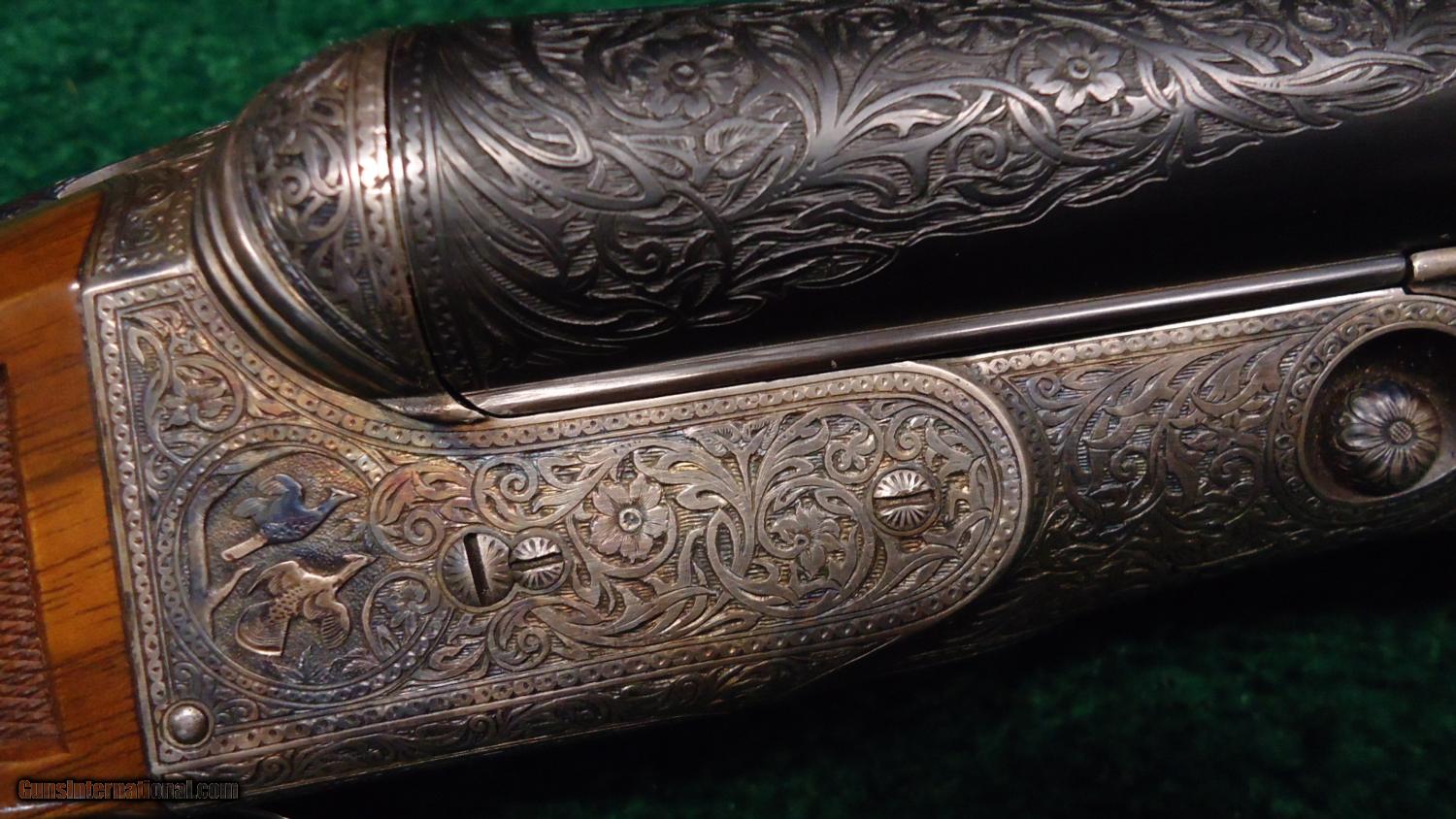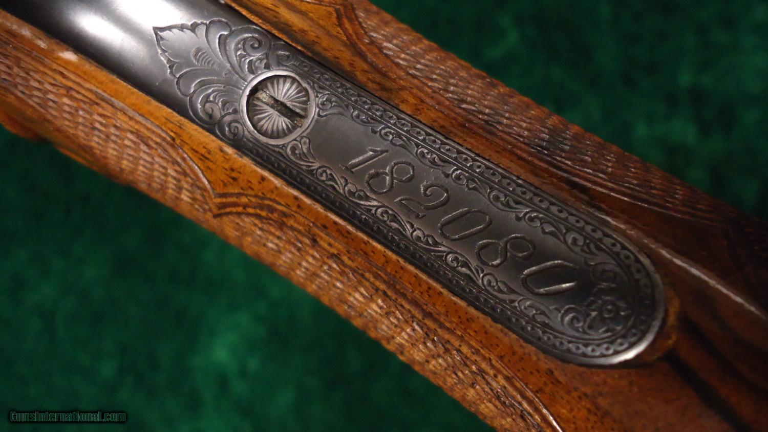 Description: This Parker has been upgraded to the A-1 grade and has beautiful deep relief engraving on the frame and back section of the bbl. The frame has nearly 100% coverage in a real delicate intertwined engraving. Beautiful! The stock is also a superb quality custom stock with absolutely stunning wood . This is a 12 ga that started as a D-grade on a 1-1/2 frame and has been custom up-graded to an A-1. Vent rib with the standard Parker Brothers titanic steel on the rib of the bbl. The bbls are 32" with choking full and mod. This gun has been set up as a trap gun with a 14-5/8" LOP and a rather shallow drop on the stock. The quality of workmanship on this gun is second to none. If you are looking to have the prettiest gun at the trap club this would be the one you want! Leroy Merz Antique Firearms specializes in antique and vintage Winchesters and other fine American firearms. Since 1965 Mr. Merz has taken part in the world of firearms and has been a contributor to many well known reference books. Just recently we mailed the 125th edition of our privately-published catalog. We have hundreds of additional guns in every price range at our home online. Search for Merz Antiques in google. SOLD Curio/Relic: Yes |