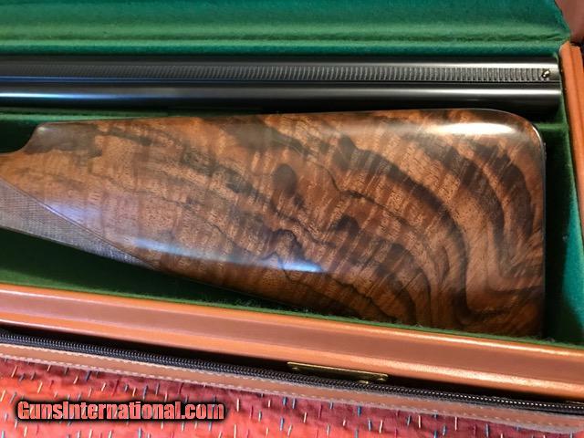 Description: Unfired 100% finish. The wood is beautiful and compares to the A1 Specials. Leather case with canvas cover. SOLD Manufacturer: Parker/Winchester Model: DHE Chambers: 2 3/4 Ejectors: auto Condition: Excellent + Metal Condition: Excellent Wood Condition: Excellent Bore Condition: Excellent Barrels: 26 Barrel Type: SXS Triggers: Single Gauge Info: 28ga Fore End: Splinter Chokes: IC/Mod |