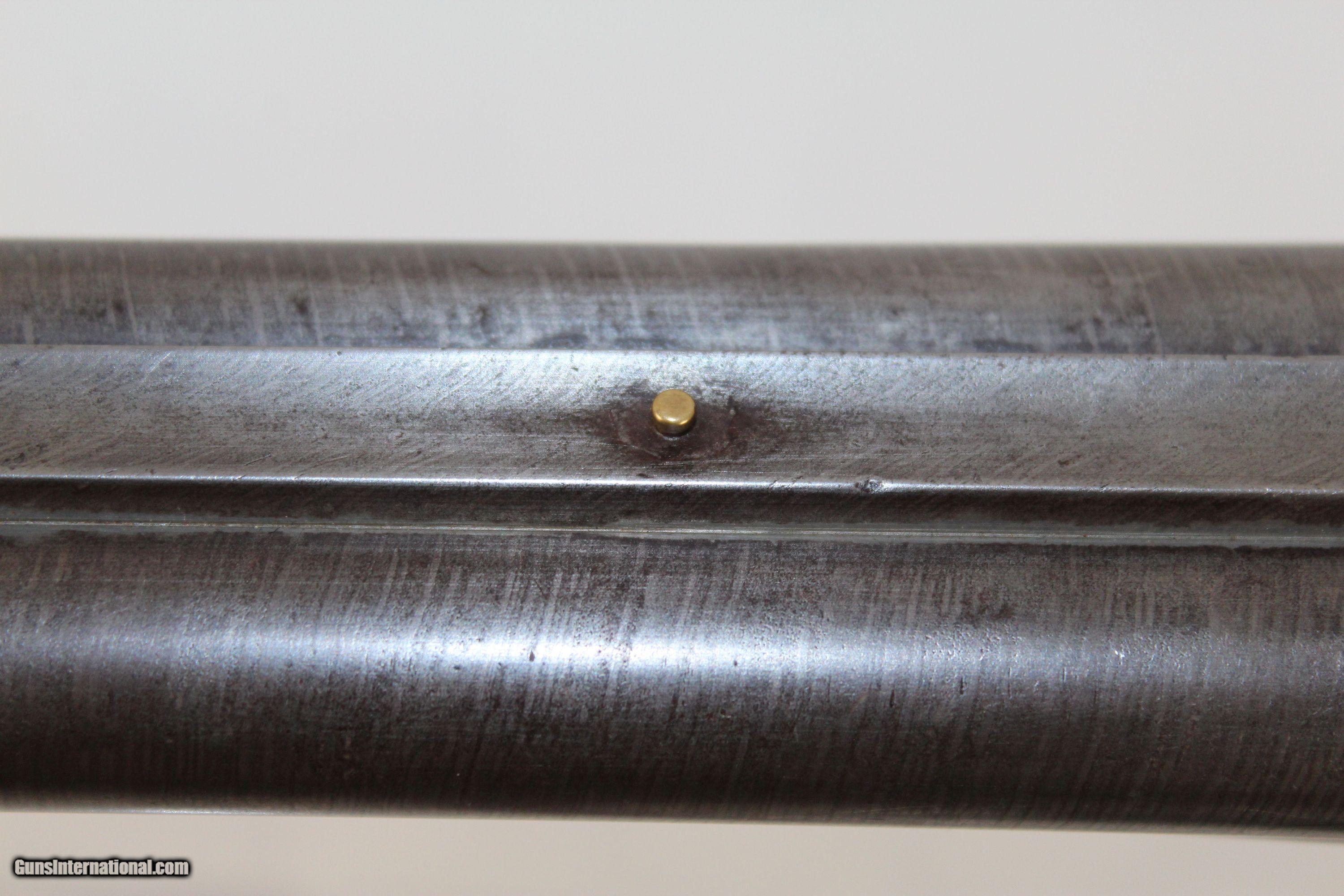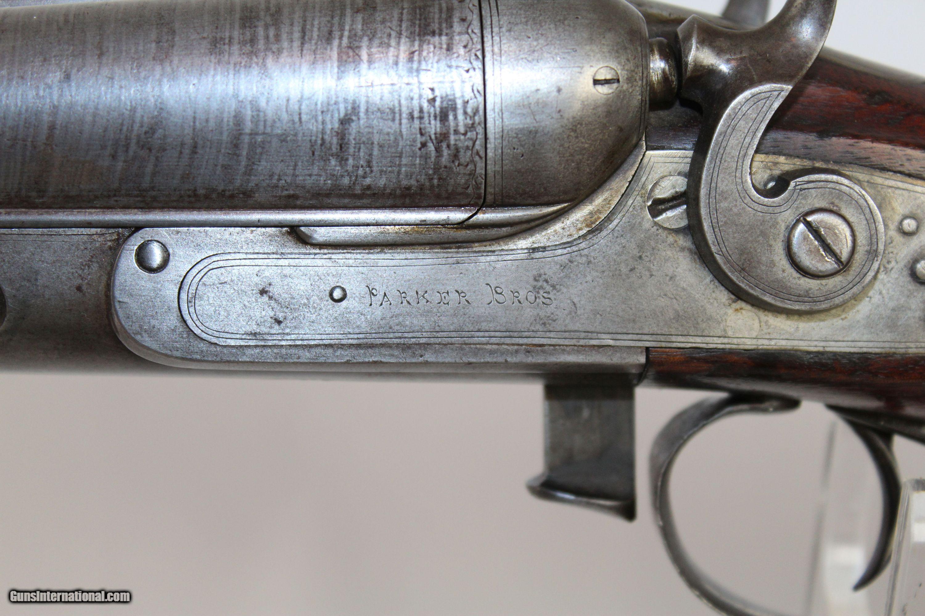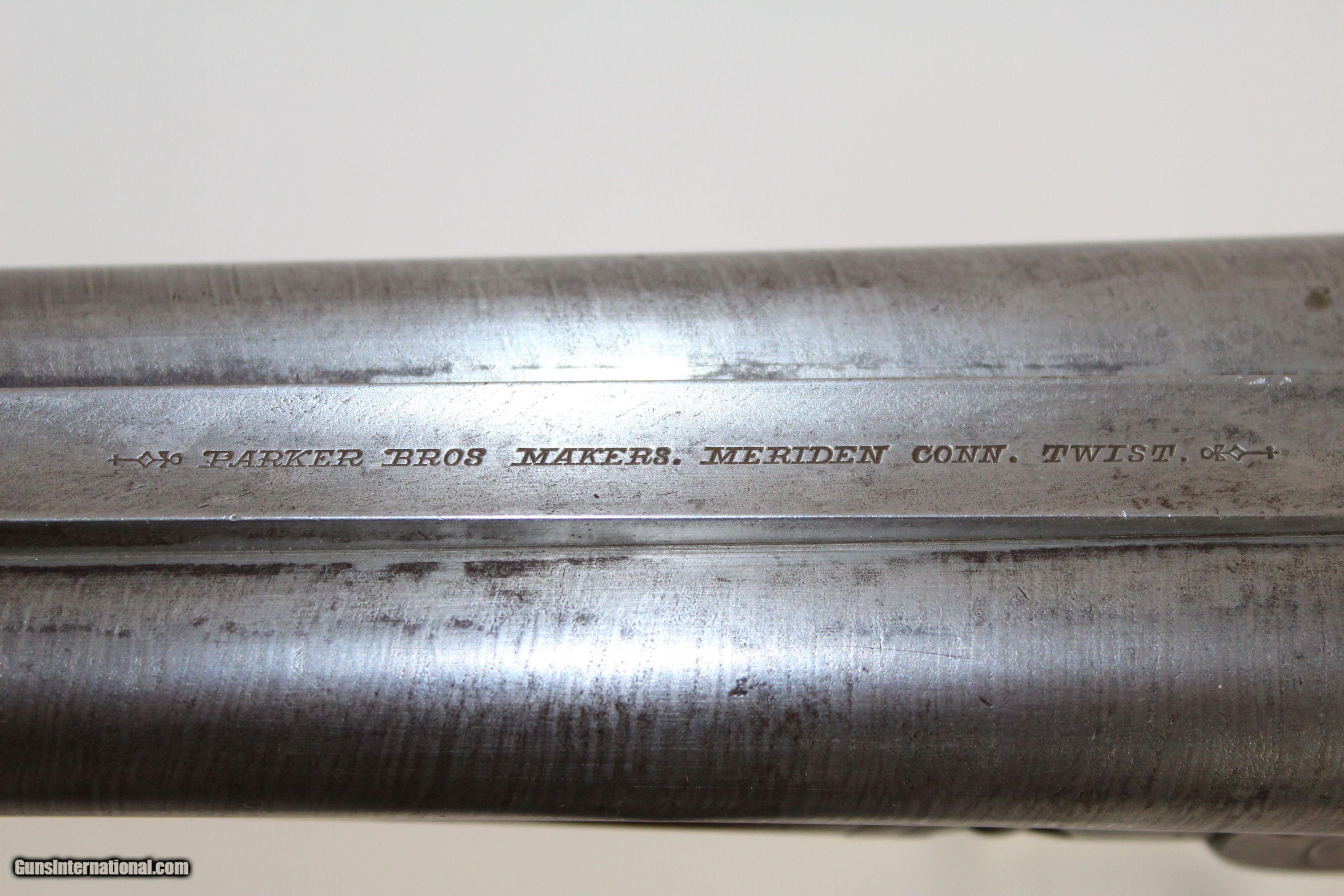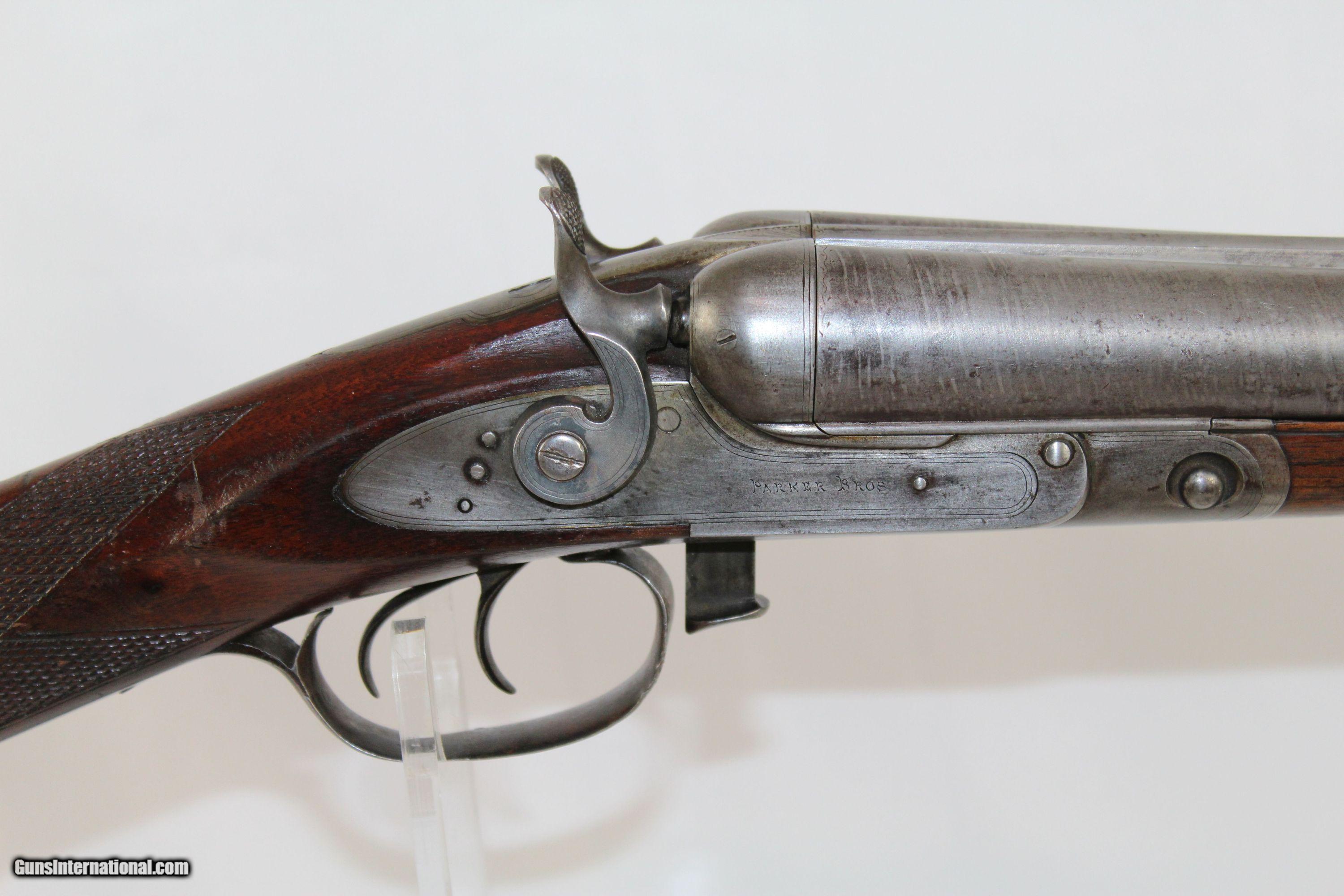 Description: Early Antique PARKER Double Barrel LIFTER Shotgun Short & Handy SXS Made Circa 1883 Here we present an antique Parker Brothers Hammer Double Barrel Lifter Shotgun, with an Extractor, made circa 1883 in Meriden, Connecticut. Charles Parker was an entrepreneur who began working in U.S. manufacturing in the 1830s. Interestingly, one of his first products was a coffee mill. He also collaborated on several government contracts to make arms during the American Civil War, including one for the Model 1861 and then a truly interesting, rare breech-loading design for the state of Kentucky, called the Triplett & Scott Carbine. Finally, in 1866, after his experience in arms manufacture for the war effort, he and his sons, Wilbur and Dexter, began the company Parker Brothers, making sporting shotguns. This company is considered by many to have been the best manufacturer of fine American shotguns, ever. The company was in business until 1942. This short, handy shotgun features 12 gauge bores, with 2-5/8 inch chambers. Barrel is 21-13/32 inches and appears to have been shortened long ago. Cylinder chokes. The gun has an extractor. The fine twist barrels are marked “—PARKER BROS MAKERS. MERIDEN CONN. TWIST.—” Sights are two brass beads, one at the muzzle and one mid-length. The frame is marked “PARKER BROS”. Patent dates are located on the underside of the frame and on the splinter forearm. The splinter forearm removes easily to expose perfect casehardening inside. Straight grip. Serial numbers match. The overall condition is very good. The twist pattern is still visible and the case colors are vibrant where they have been protected. The markings are clear and legible. The walnut stock is in good shape, displaying normal handling marks. There is a stable, hairline crack on the left side. See photo. The checkering is sharp. The bore is clean, but lightly pitted near the breech. Action is excellent. Here is a nice example of a short and handy Parker from the 1880s! Own the original! This is a legitimate antique and not a reproduction. Barrel is 21-13/32 inches. Caliber: 12 Gauge 2-1/2 inch Overall condition as seen in photos. Very Fast. Very Safe. FREE SHIPPING WORLDWIDE. Delivered directly to your door by express mail! Guaranteed AUTHENTIC & Includes CERTIFICATE OF AUTHENTICITY. ancestryguns $1200 #5109 SOLD Antique: Yes |