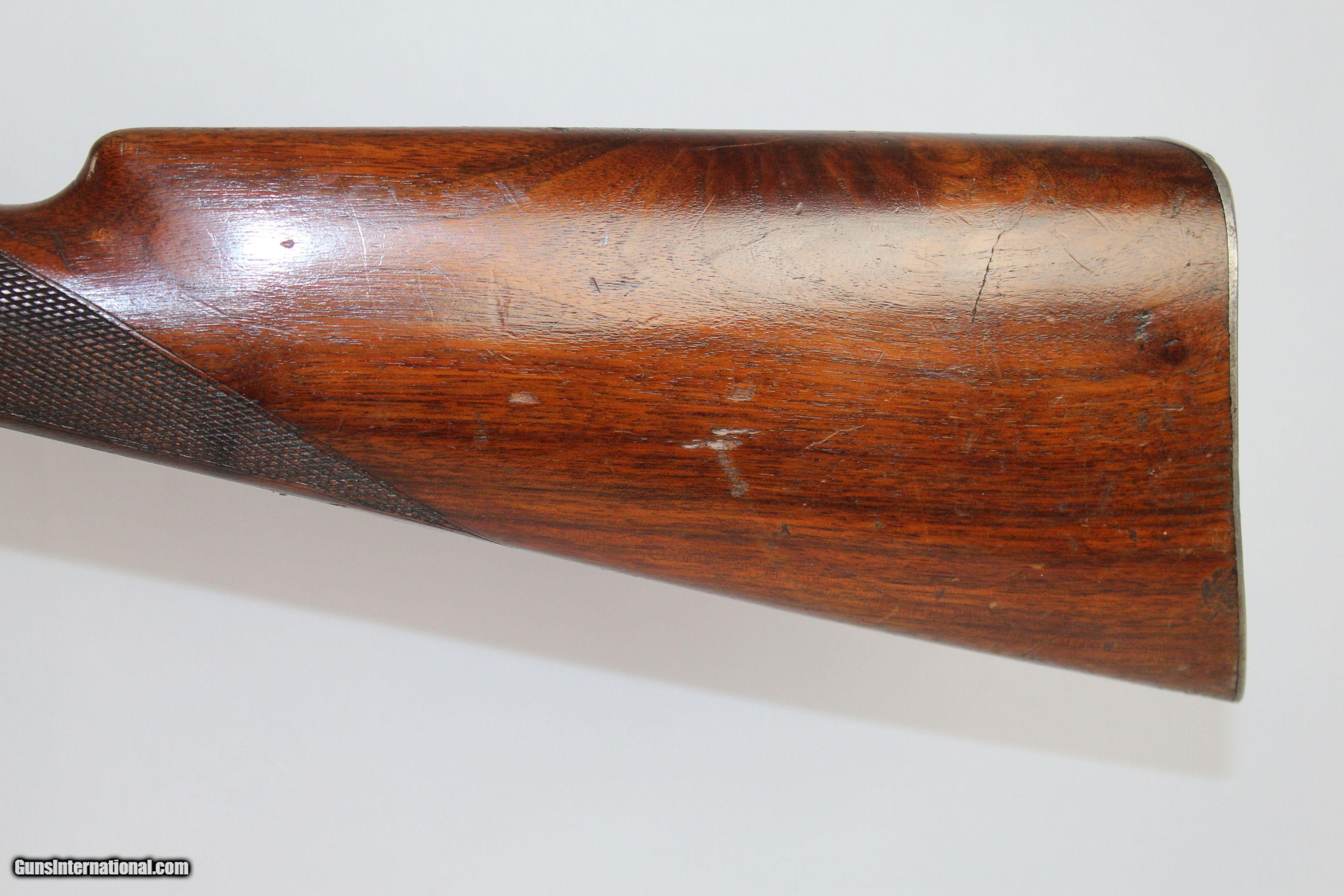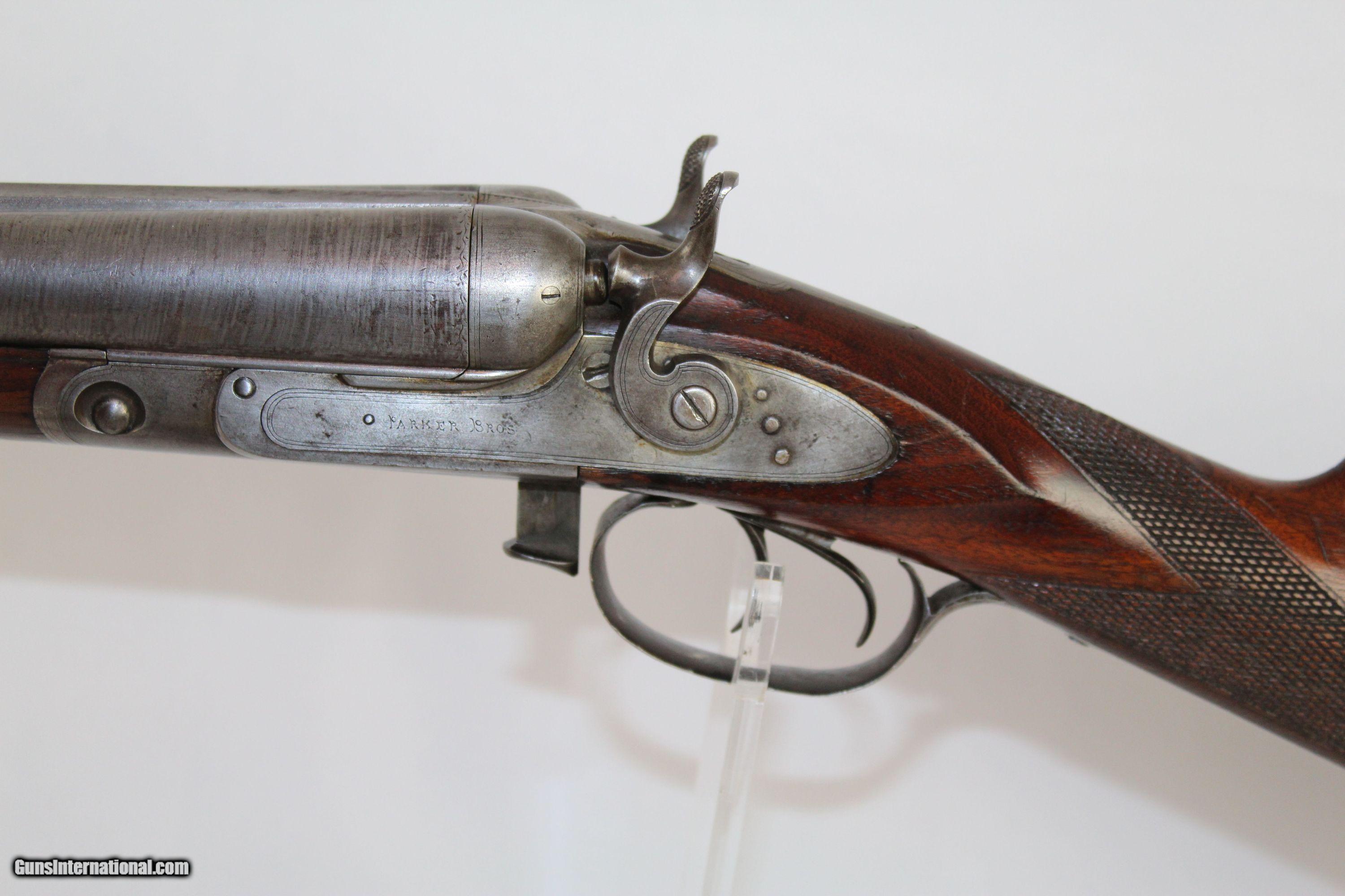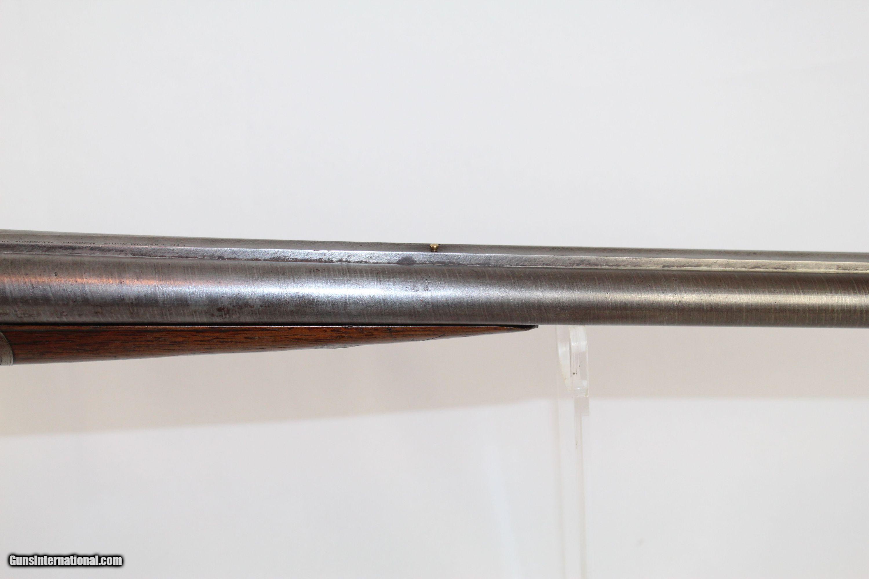 Description: Early Antique PARKER Double Barrel LIFTER Shotgun Short & Handy SXS Made Circa 1883 Here we present an antique Parker Brothers Hammer Double Barrel Lifter Shotgun, with an Extractor, made circa 1883 in Meriden, Connecticut. Charles Parker was an entrepreneur who began working in U.S. manufacturing in the 1830s. Interestingly, one of his first products was a coffee mill. He also collaborated on several government contracts to make arms during the American Civil War, including one for the Model 1861 and then a truly interesting, rare breech-loading design for the state of Kentucky, called the Triplett & Scott Carbine. Finally, in 1866, after his experience in arms manufacture for the war effort, he and his sons, Wilbur and Dexter, began the company Parker Brothers, making sporting shotguns. This company is considered by many to have been the best manufacturer of fine American shotguns, ever. The company was in business until 1942. This short, handy shotgun features 12 gauge bores, with 2-5/8 inch chambers. Barrel is 21-13/32 inches and appears to have been shortened long ago. Cylinder chokes. The gun has an extractor. The fine twist barrels are marked “—PARKER BROS MAKERS. MERIDEN CONN. TWIST.—” Sights are two brass beads, one at the muzzle and one mid-length. The frame is marked “PARKER BROS”. Patent dates are located on the underside of the frame and on the splinter forearm. The splinter forearm removes easily to expose perfect casehardening inside. Straight grip. Serial numbers match. The overall condition is very good. The twist pattern is still visible and the case colors are vibrant where they have been protected. The markings are clear and legible. The walnut stock is in good shape, displaying normal handling marks. There is a stable, hairline crack on the left side. See photo. The checkering is sharp. The bore is clean, but lightly pitted near the breech. Action is excellent. Here is a nice example of a short and handy Parker from the 1880s! Own the original! This is a legitimate antique and not a reproduction. Barrel is 21-13/32 inches. Caliber: 12 Gauge 2-1/2 inch Overall condition as seen in photos. Very Fast. Very Safe. FREE SHIPPING WORLDWIDE. Delivered directly to your door by express mail! Guaranteed AUTHENTIC & Includes CERTIFICATE OF AUTHENTICITY. ancestryguns $1200 #5109 SOLD Antique: Yes |