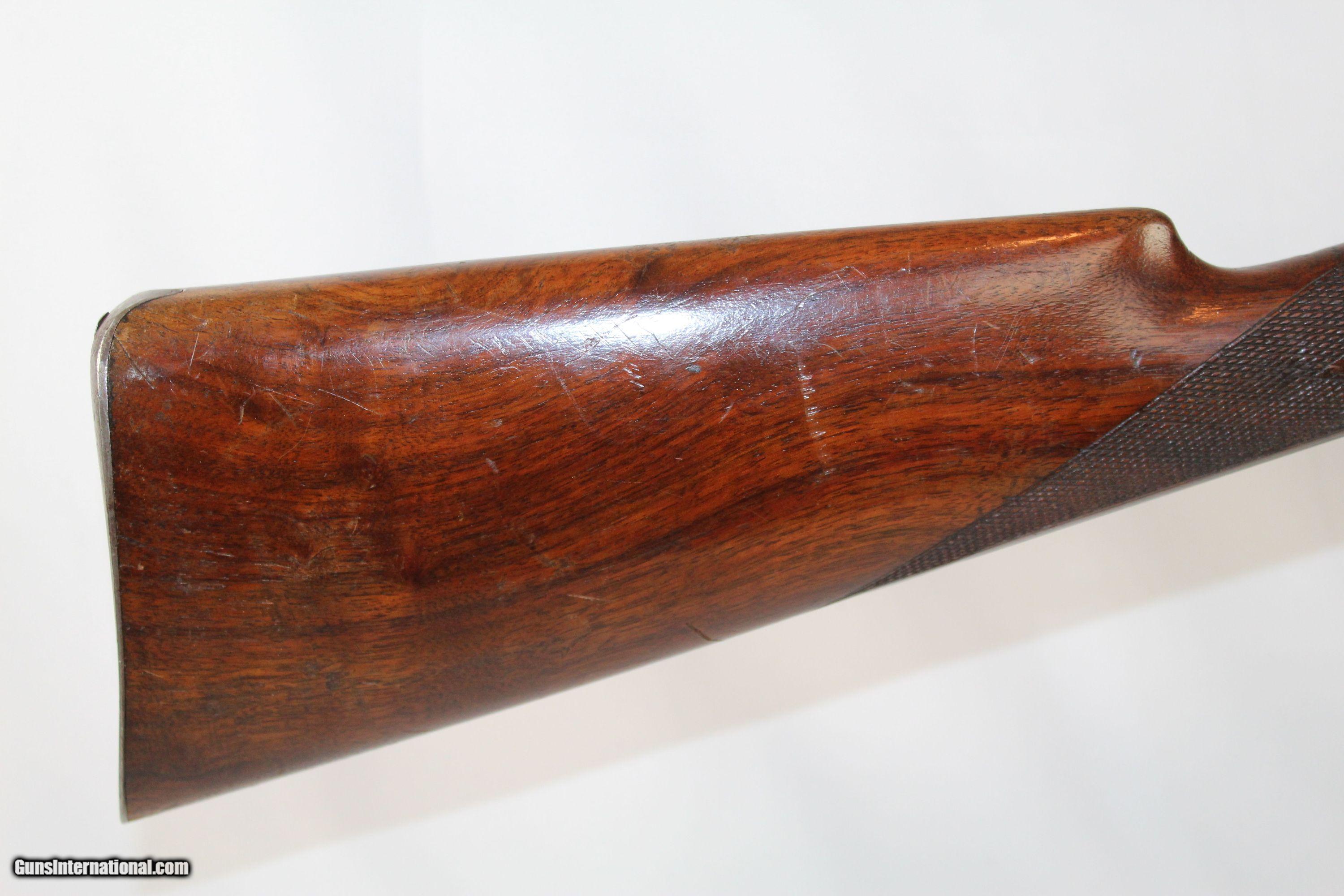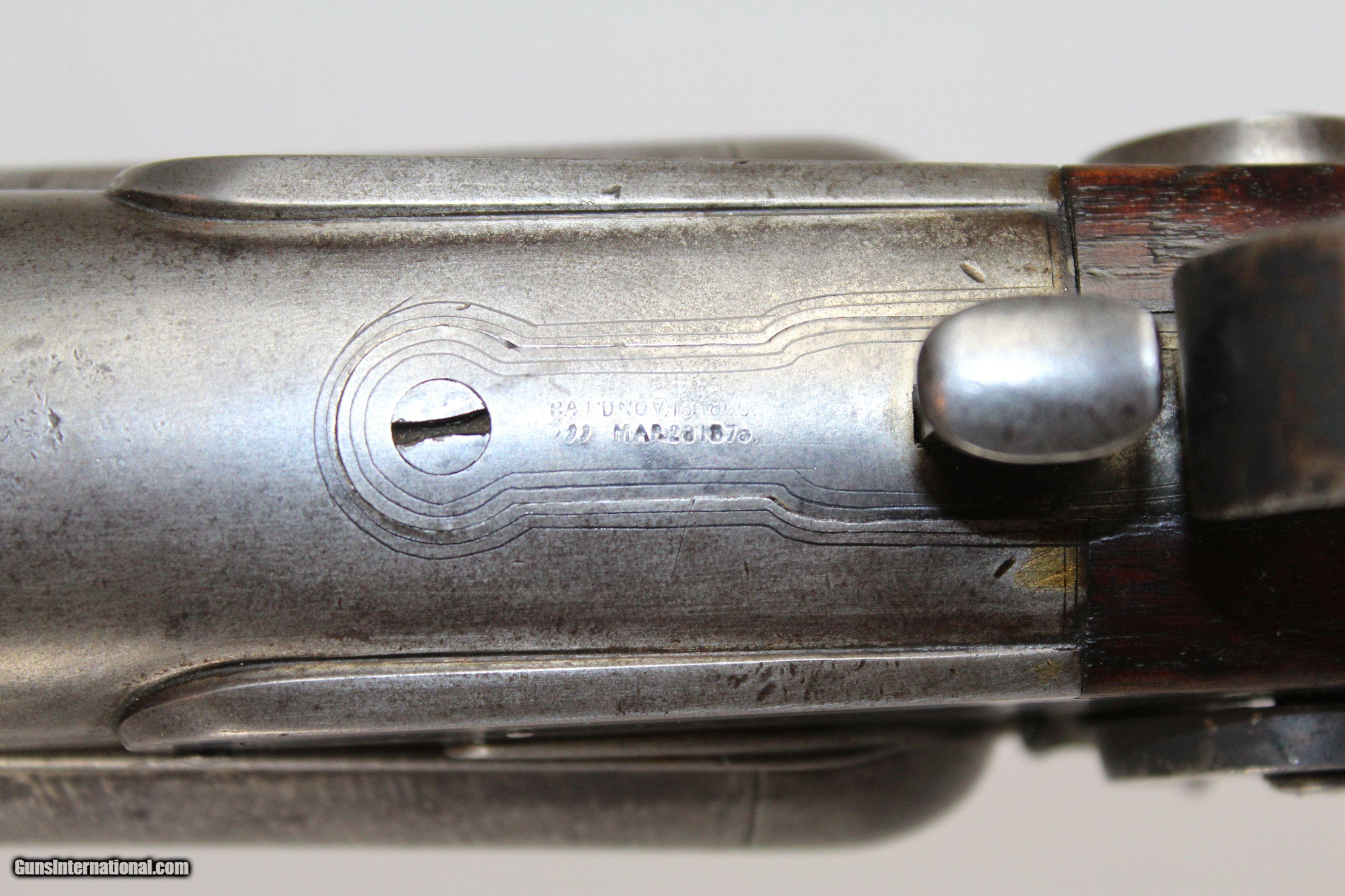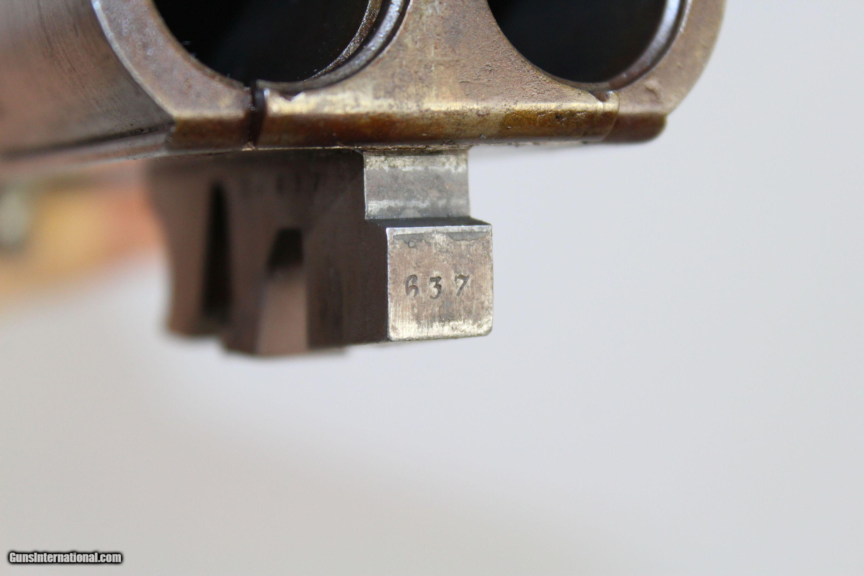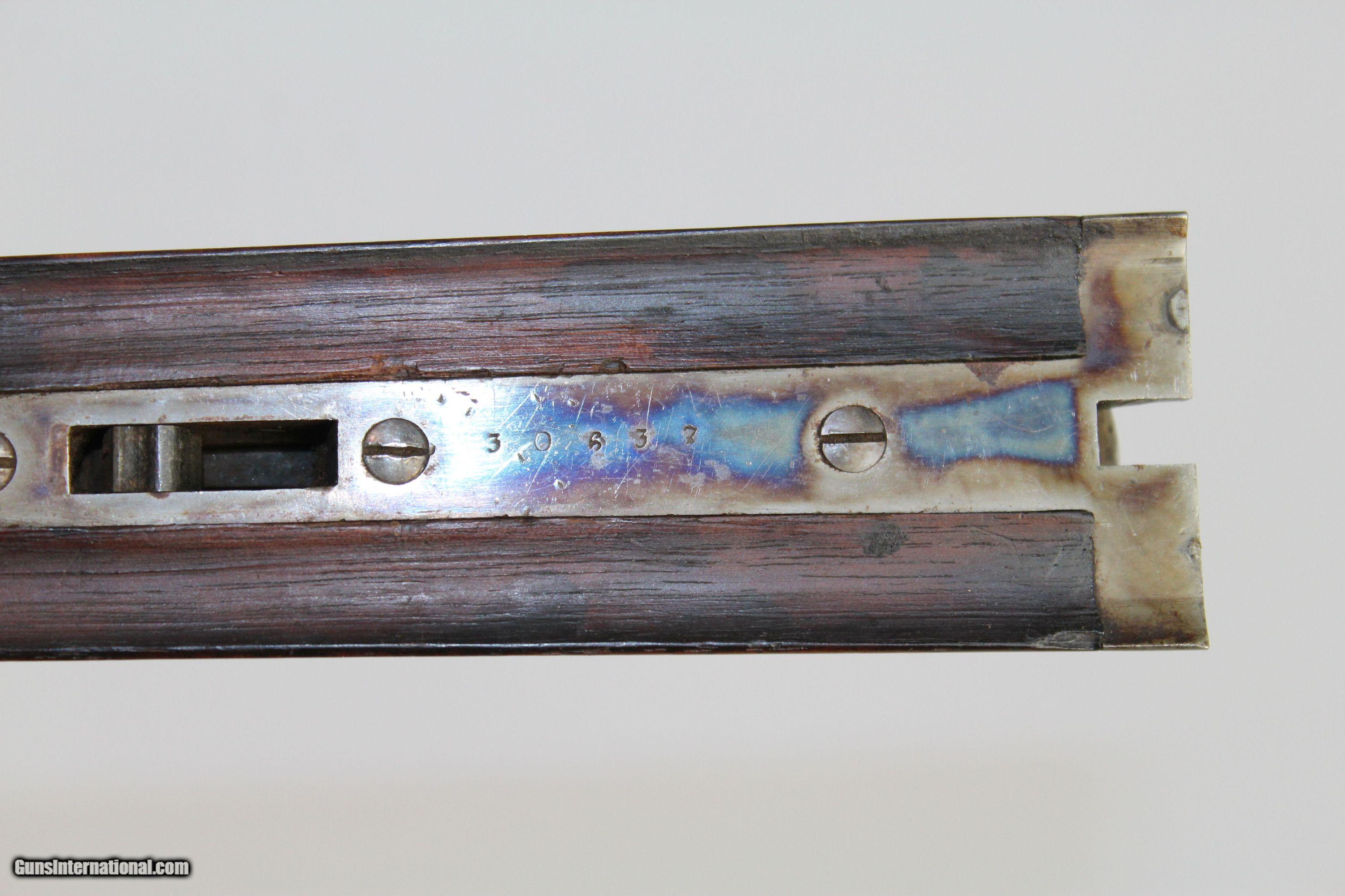 Description: Early Antique PARKER Double Barrel LIFTER Shotgun Short & Handy SXS Made Circa 1883 Here we present an antique Parker Brothers Hammer Double Barrel Lifter Shotgun, with an Extractor, made circa 1883 in Meriden, Connecticut. Charles Parker was an entrepreneur who began working in U.S. manufacturing in the 1830s. Interestingly, one of his first products was a coffee mill. He also collaborated on several government contracts to make arms during the American Civil War, including one for the Model 1861 and then a truly interesting, rare breech-loading design for the state of Kentucky, called the Triplett & Scott Carbine. Finally, in 1866, after his experience in arms manufacture for the war effort, he and his sons, Wilbur and Dexter, began the company Parker Brothers, making sporting shotguns. This company is considered by many to have been the best manufacturer of fine American shotguns, ever. The company was in business until 1942. This short, handy shotgun features 12 gauge bores, with 2-5/8 inch chambers. Barrel is 21-13/32 inches and appears to have been shortened long ago. Cylinder chokes. The gun has an extractor. The fine twist barrels are marked “—PARKER BROS MAKERS. MERIDEN CONN. TWIST.—” Sights are two brass beads, one at the muzzle and one mid-length. The frame is marked “PARKER BROS”. Patent dates are located on the underside of the frame and on the splinter forearm. The splinter forearm removes easily to expose perfect casehardening inside. Straight grip. Serial numbers match. The overall condition is very good. The twist pattern is still visible and the case colors are vibrant where they have been protected. The markings are clear and legible. The walnut stock is in good shape, displaying normal handling marks. There is a stable, hairline crack on the left side. See photo. The checkering is sharp. The bore is clean, but lightly pitted near the breech. Action is excellent. Here is a nice example of a short and handy Parker from the 1880s! Own the original! This is a legitimate antique and not a reproduction. Barrel is 21-13/32 inches. Caliber: 12 Gauge 2-1/2 inch Overall condition as seen in photos. Very Fast. Very Safe. FREE SHIPPING WORLDWIDE. Delivered directly to your door by express mail! Guaranteed AUTHENTIC & Includes CERTIFICATE OF AUTHENTICITY. ancestryguns $1200 #5109 SOLD Antique: Yes |