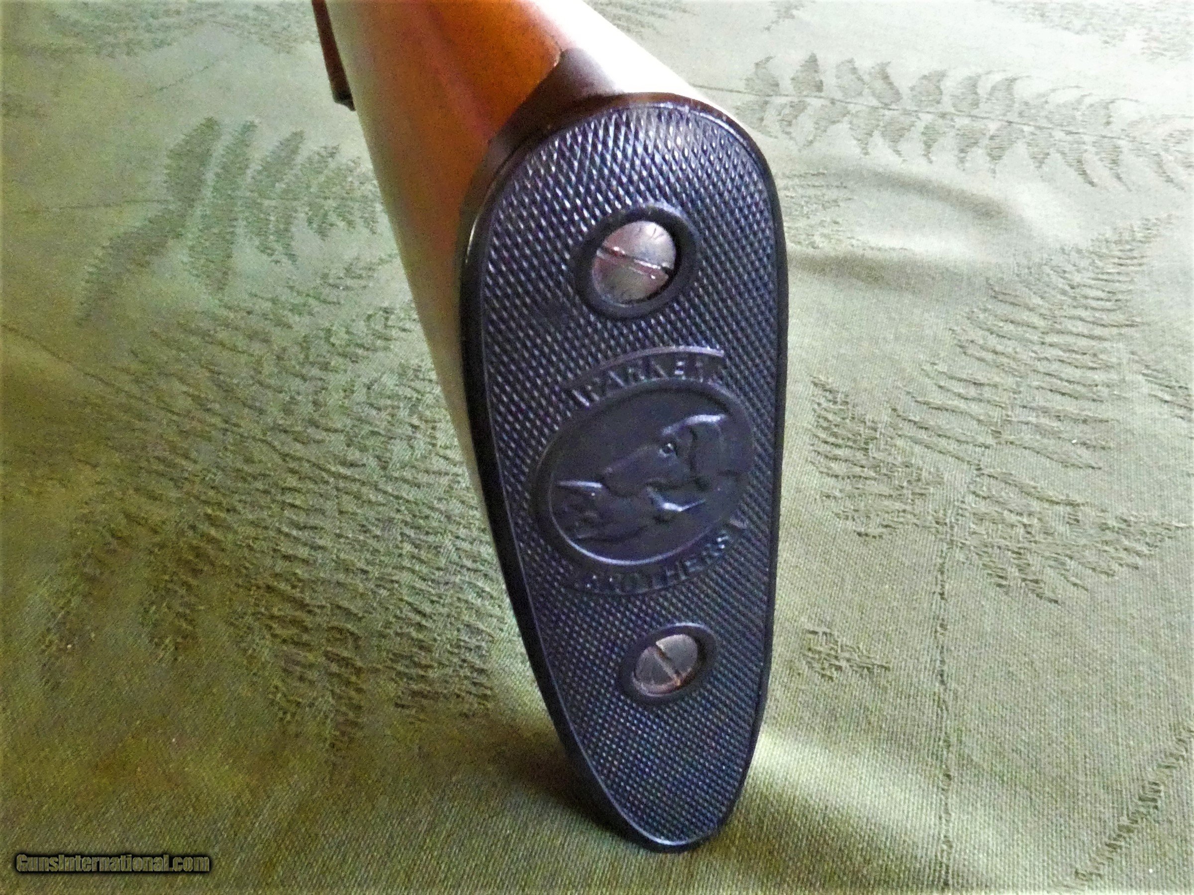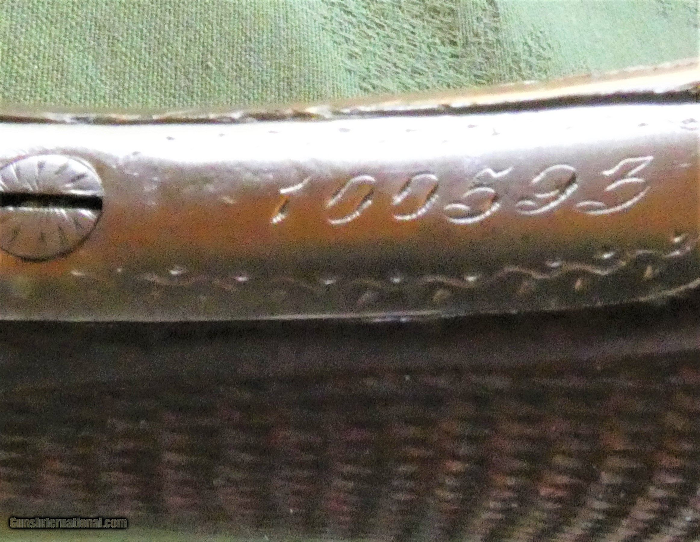 Description: SOLD Guns by Sally-always the best for less. We are way proud to offer this fine example of the most affordable grade Parker offered with real game scene engraving. This one is another step above because it is a 16 gauge with factory 26 inch barrels. Yes, Irene, it is listed in the Parker book. The bores of the Damascus tubes are bright and clean, choked IC and full. With RST loads, she can still put meat on the table. She locks up tight, and the lever resides to the right of center. The wood of the stock is proud to the steel, and the checkering and Parker grip cap are in good shape. The LOP to the famous dog's head butt plate is 14 1/8 inches. The checkering on the forend is more worn. Made in the year of our Lord 1901, she is in fine shape for being 120 years old, and built on the dainty number 1 frame. There is a generous amount of case color left on the receiver. If you have been looking for the right Parker to collect, for investment, or for that classic hunt, then look no further. SOLD Curio/Relic: Yes |