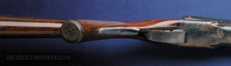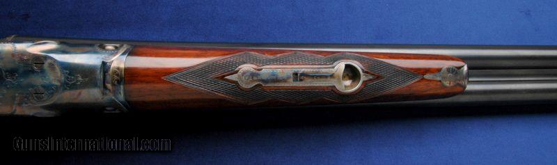 Description: Available for purchase today is an extremely nice and well restored Parker GHE 16 gauge SxS. It has 28" barrels marked PARKER SPECIAL STEEL on the vent rib after maker's address. It is possible that the barrels have been cut back to 28" on this one. Everything matches, frame, barrels and fore end. There is a "2" stamped underneath the serial number on the water table. The color case hardening is wonderful, as is the satin blue, the checkering, the finish and the stocks. The butt pad is soft and the trademark is Jostam Manuf., Peotone, IL. I feel no bulges or dents in either barrel, the gun balances beautifully. I can see no damage or anything else hidden or minimized by the restoration. $100 shipping to the lower 48 and 3% surcharge for using a CC. We recommend this item be shipped in a hard case. $20. In order to protect your investment, all long guns over $500 must be shipped in a hard case. Minimum shipping at this level is $55 and includes the hard case. Shipping cost could increase depending on value or weight of the firearm. For long guns less than $500, we still recommend the purchase of a hard case, again to protect your investment. These numbers are for shipping to the lower 48. There is also a 3% surcharge for customers using a credit card on internet sales. Thank you! SOLD |