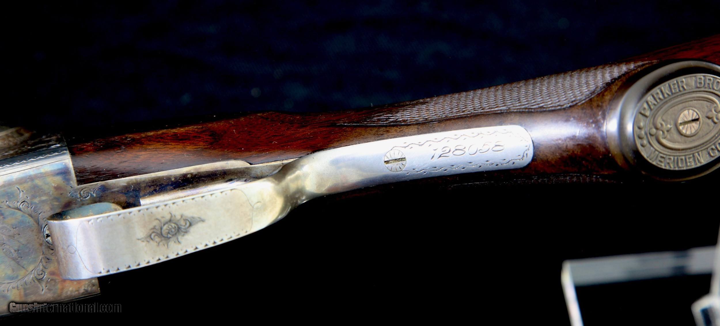 Description: Fine all original Parker GH 12ga made on a #2 frame with beautiful 30" damascus barrels. Gun with made with splinter forend, double triggers, extractors, capped pistol grip buttstock with original DHBP. Gun remains in fine all original condition with nearly 50% original case color, 95% bold original damascus pattern, and original wood finish. Bores are excellent and mechanics are crisp. This gun is priced at $1895 shipped to your FFL. Please dont hesitate to contact me with any questions at (704) 280-2382 or via PM on this site. SOLD Model: GH Serial Number: 128058 Barrel Length: 30 Chambers: 2-3/4" Condition: Excellent and original Metal Condition: Excellent Wood Condition: Excellent Bore Condition: Bright and shiny Barrel Type: Damascus Triggers: Double Triggers Stock Comb: 1-3/4 Stock Heel: 2-1/2 Fore End: Splinter Butt Pad: Original DHBP LOP: 14-1/4 Weight: 7lbs 8oz Choke Left: .734 with .020 choke Choke Right: .734 with .005 choke Minimum Wall Thickness Left: .027 Minimum Wall Thickness Right: .026 |