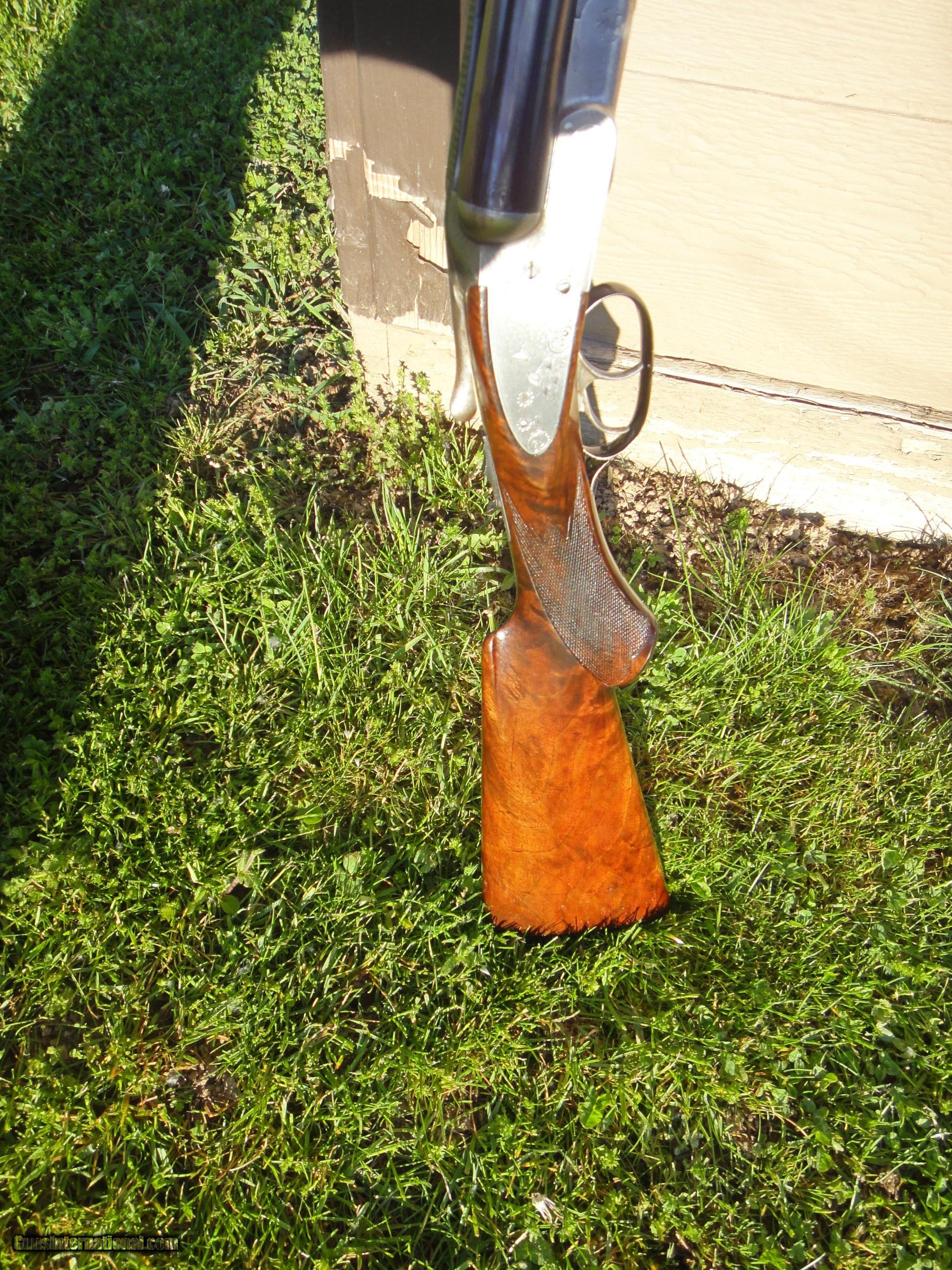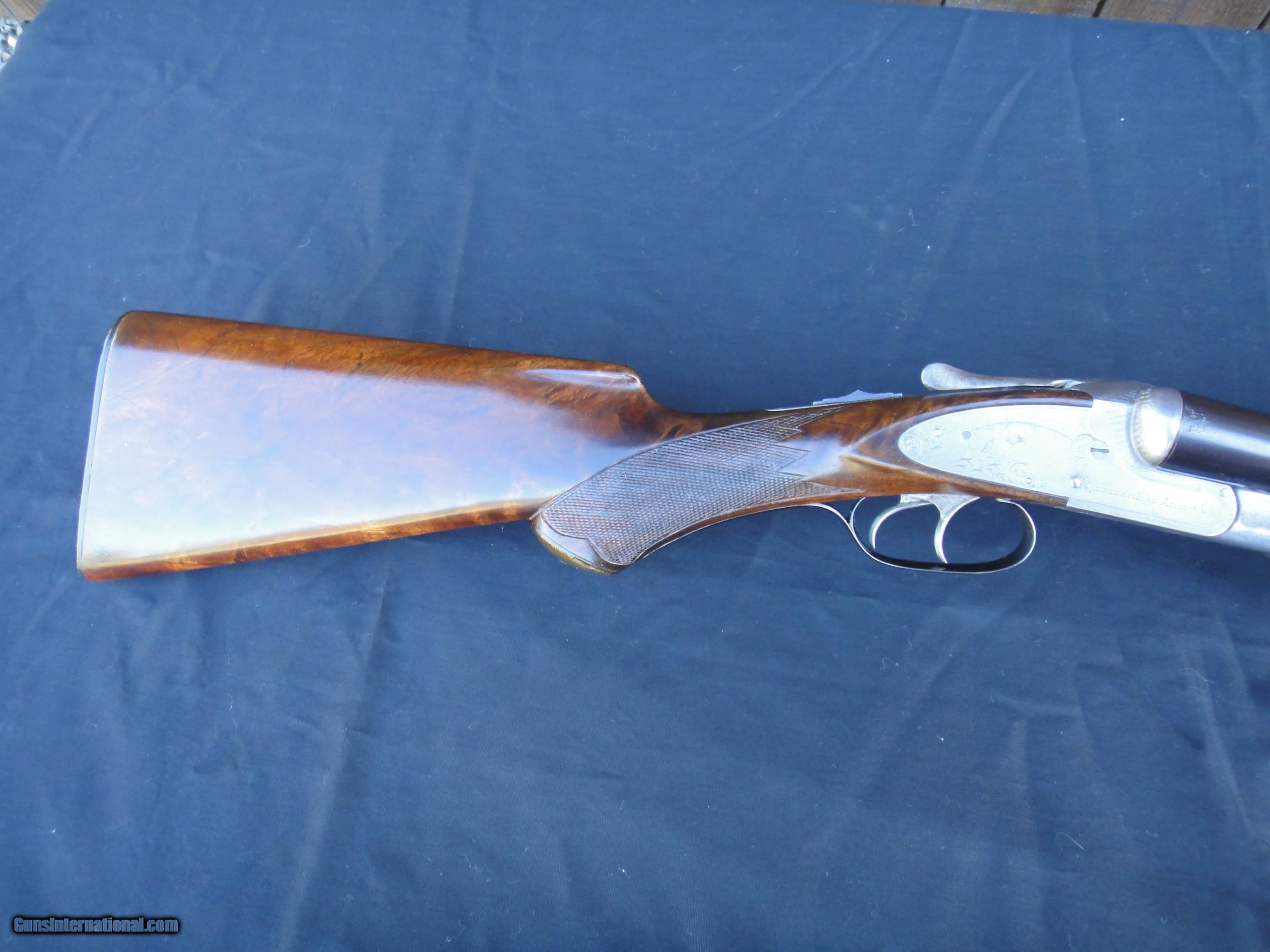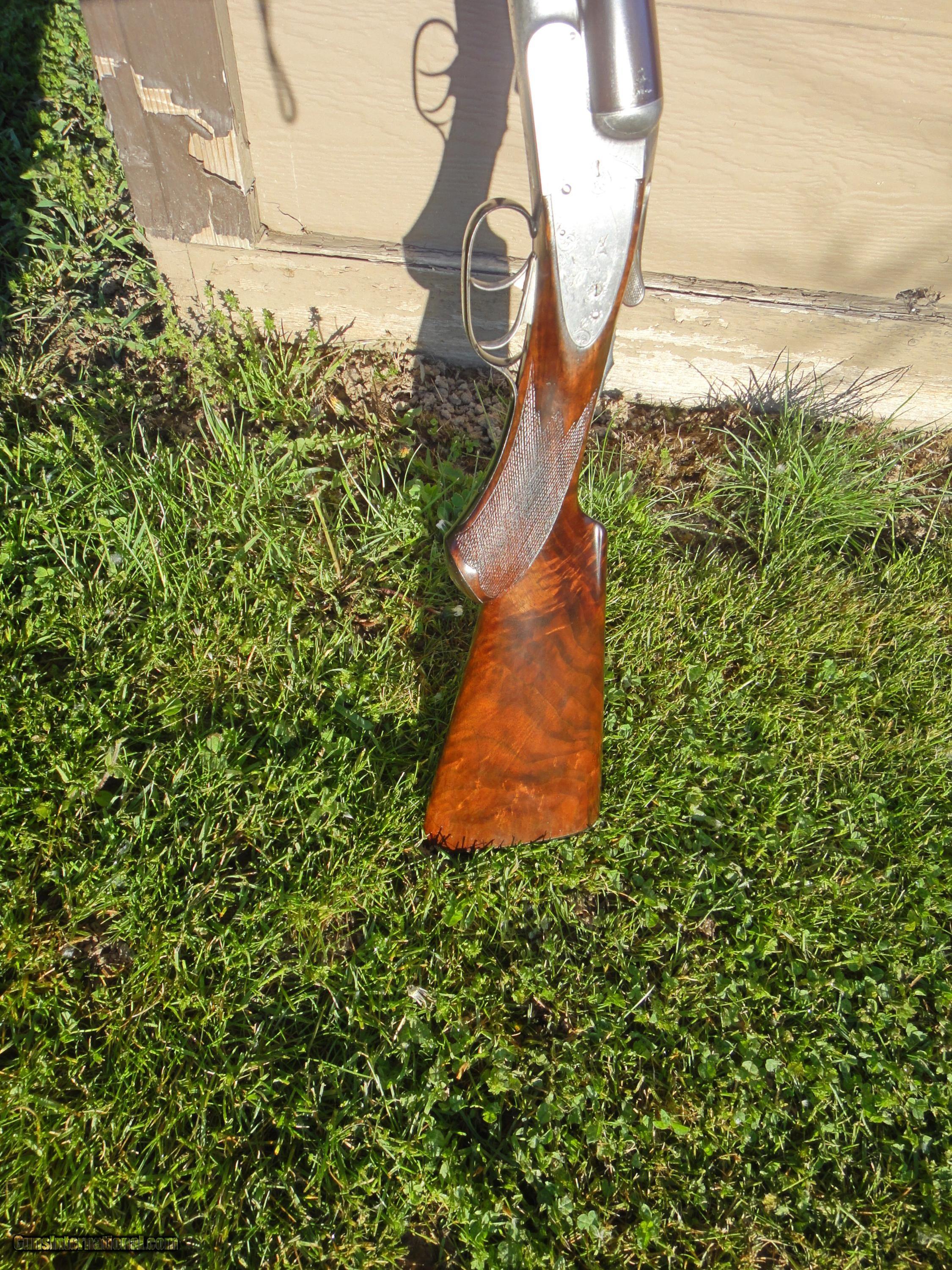 Description: Meriden Arms Co, grade 55, 12 gauge with Krupp fluid steel 30" barrels, original 14" LOP, 1 3/8" DAC, double triggers and extractors. 2 3/4" chambers make this gun safe to shoot with moden target and field loads. Tight action, good checkering and hand rubbed French polish stocks. Freshly rust blued barrels choked IM/IM. Bores show shine and overall rate very good. 7 lbs, 7 ozs. The Meriden is the Rodney Dangerfield of fine American doubles. It just doesn't get the collector respect it deserves. This is a true sidelock action, similar to the LC Smith, but better designed in many respects. This gun has no cracks in the stock anywhere. All exterior screw heads are engraved. The forestock tip shows a hint of schnable. The buttstock mates with the frame elegantly, especially at the bottom where two slight ridges meld seamlessly into the sculpted frame. The grip cap appears to be original and horn. The buttplate is intact but shows its age. This gun was literally built down the street from the Parker Bros factory, and Parker engravers clearly engraved this Meriden, as the birds on the frame are unmistakably Parker style. Frame and forend iron show beautiful, even and original patina, which show-cases the fine engraving. This gun is at least the equal of the Parker G grade. The figure in the buttstock is breathtaking, as shown in the photos taken in natural light, some shaded and some direct. Sooner or later the collector world will discover these higher grade Meridens and the prices will skyrocket. For now though, they represent a great buy for the quality. 3 day non-shooting, non-disassembly inspection period runs from receipt by your FFL. Buyer contributes $50 toward price of insured USPS ground shipping. Feel free to ask any questions. SOLD Curio/Relic: Yes |