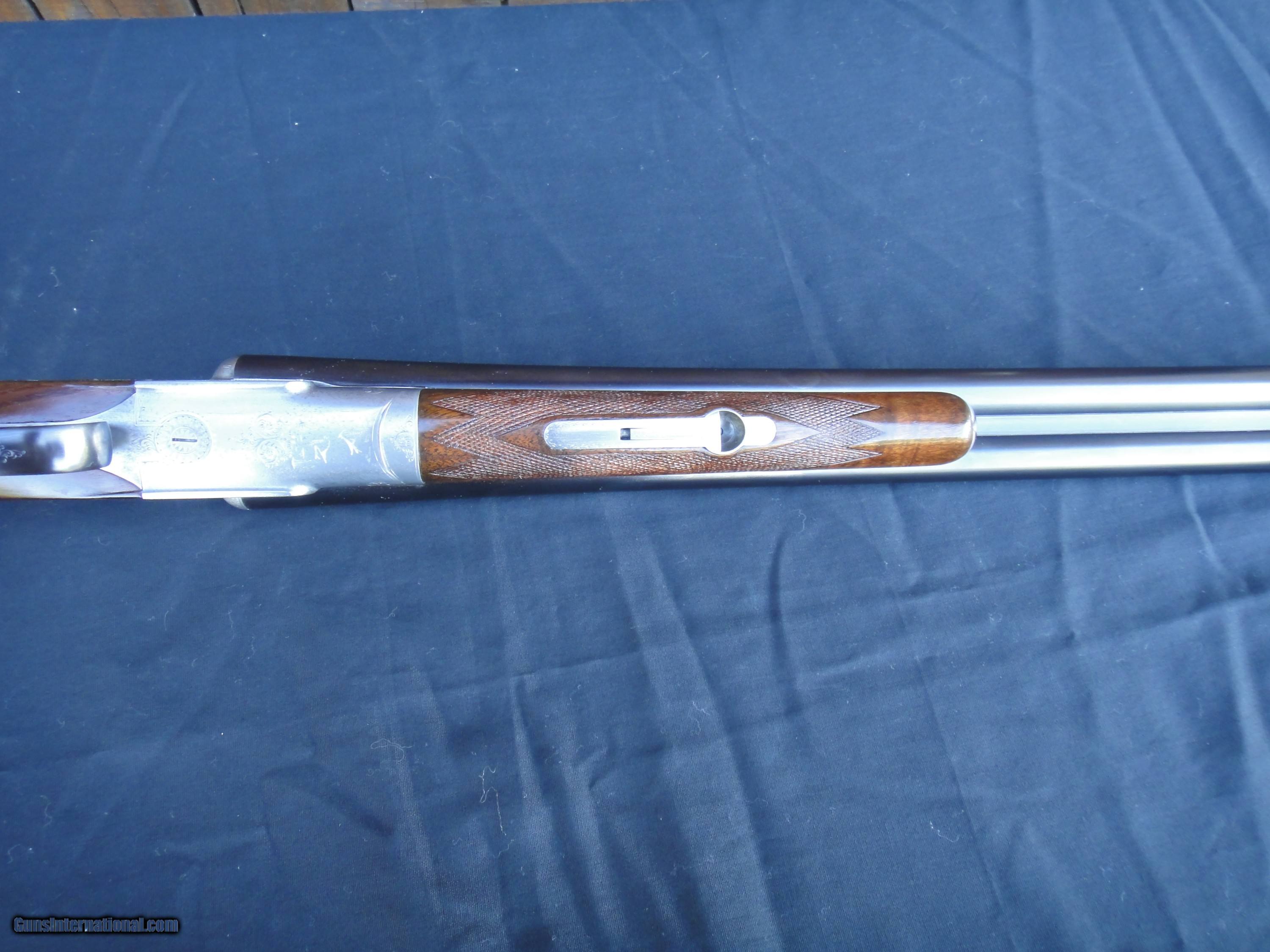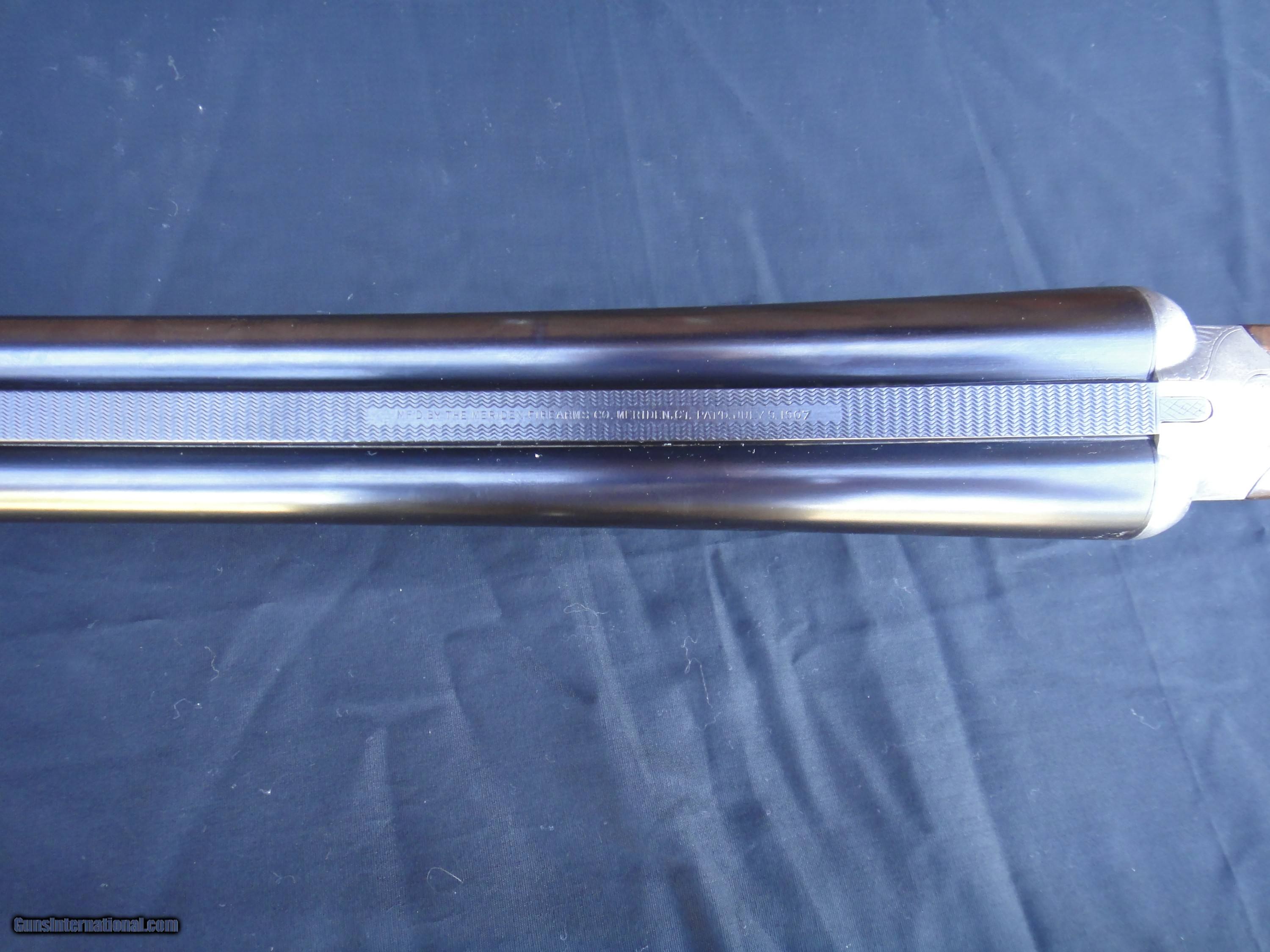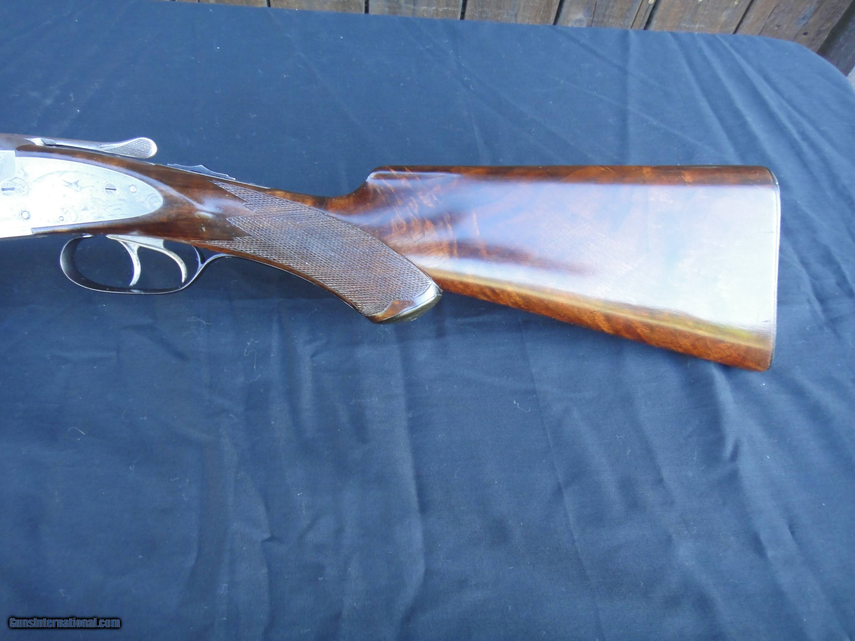 Description: Meriden Arms Co, grade 55, 12 gauge with Krupp fluid steel 30" barrels, original 14" LOP, 1 3/8" DAC, double triggers and extractors. 2 3/4" chambers make this gun safe to shoot with moden target and field loads. Tight action, good checkering and hand rubbed French polish stocks. Freshly rust blued barrels choked IM/IM. Bores show shine and overall rate very good. 7 lbs, 7 ozs. The Meriden is the Rodney Dangerfield of fine American doubles. It just doesn't get the collector respect it deserves. This is a true sidelock action, similar to the LC Smith, but better designed in many respects. This gun has no cracks in the stock anywhere. All exterior screw heads are engraved. The forestock tip shows a hint of schnable. The buttstock mates with the frame elegantly, especially at the bottom where two slight ridges meld seamlessly into the sculpted frame. The grip cap appears to be original and horn. The buttplate is intact but shows its age. This gun was literally built down the street from the Parker Bros factory, and Parker engravers clearly engraved this Meriden, as the birds on the frame are unmistakably Parker style. Frame and forend iron show beautiful, even and original patina, which show-cases the fine engraving. This gun is at least the equal of the Parker G grade. The figure in the buttstock is breathtaking, as shown in the photos taken in natural light, some shaded and some direct. Sooner or later the collector world will discover these higher grade Meridens and the prices will skyrocket. For now though, they represent a great buy for the quality. 3 day non-shooting, non-disassembly inspection period runs from receipt by your FFL. Buyer contributes $50 toward price of insured USPS ground shipping. Feel free to ask any questions. SOLD Curio/Relic: Yes |