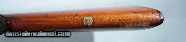 Description: ORIGINAL PARKER BROTHERS 12 GAUGE VH GRADE SHOTGUN CIRCA 1901. 28” Vulcan Steel barrels choked Modified and Full. 2 ¾” chambers. All original gun with moderate wear. Barrels with 50% blue. Frame a grey patina with faint traces of case hardening. Original factory stock and forend with wear and old coat of varnish over the original finish. 14” pull. 1 ¾”, 2 ¾” drop over original Parker logo hard rubber butt plate. Original Parker pistol grip cap. Tight and in perfect working order and very good bores. SOLD Curio/Relic: Yes |
